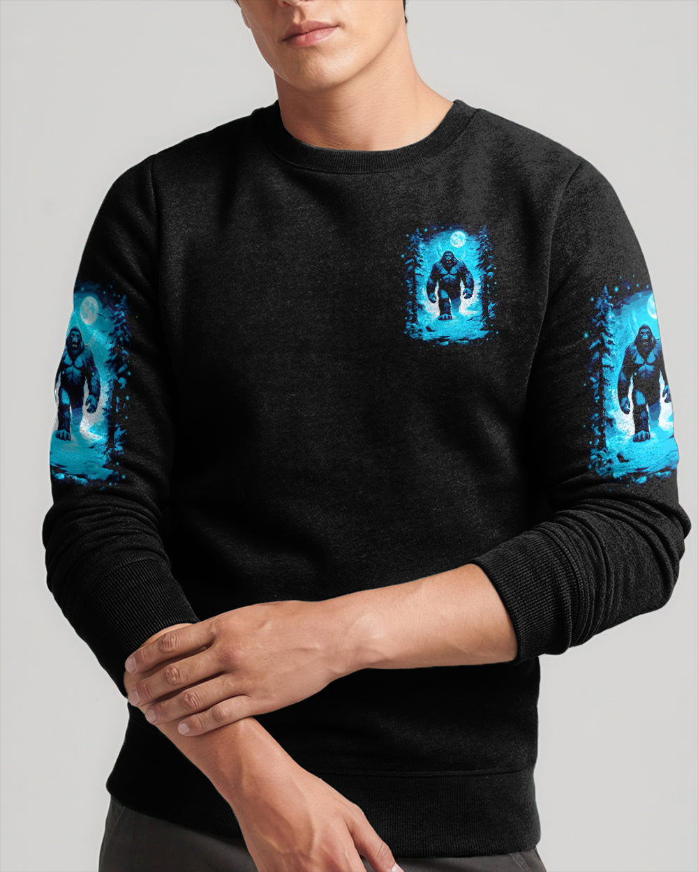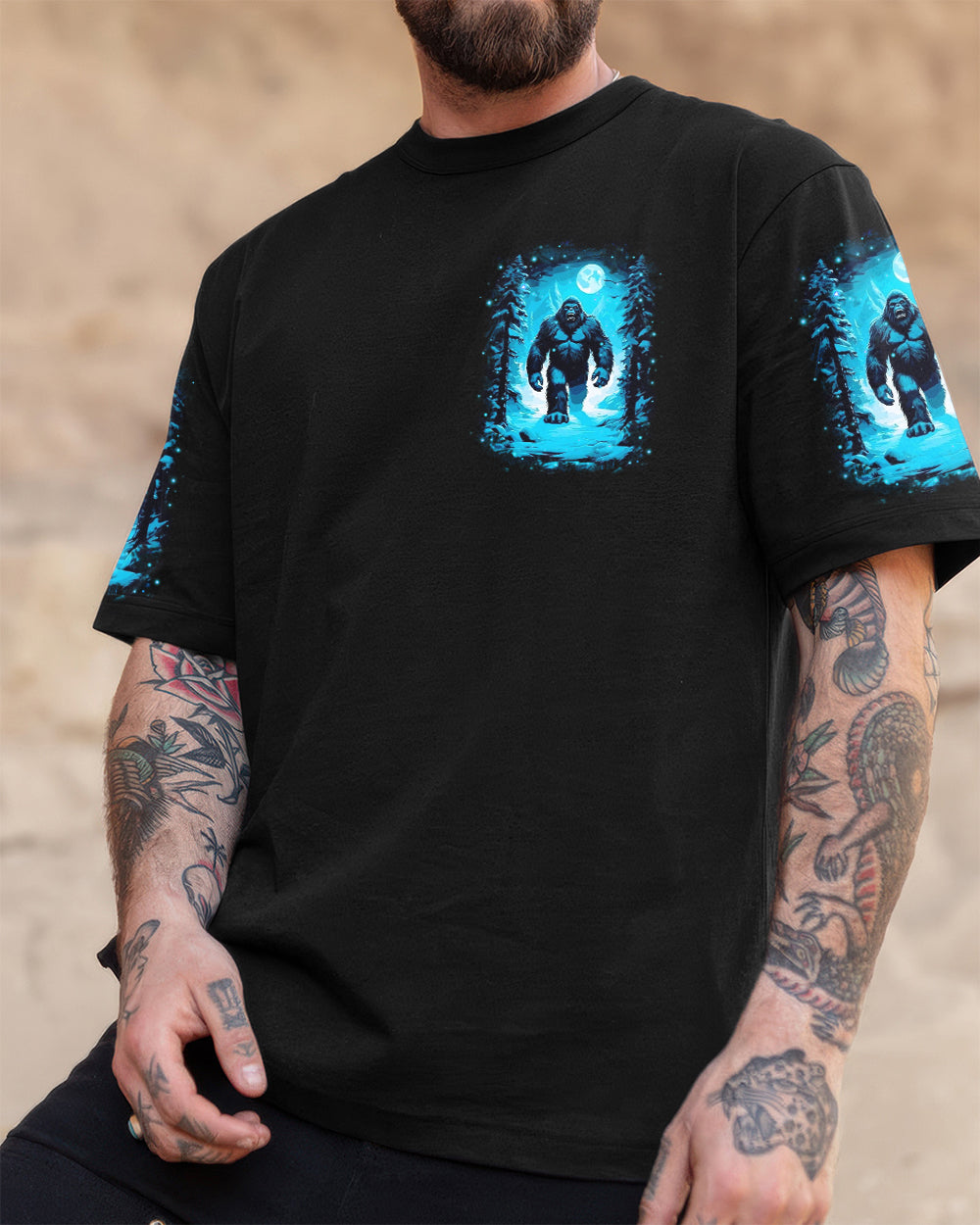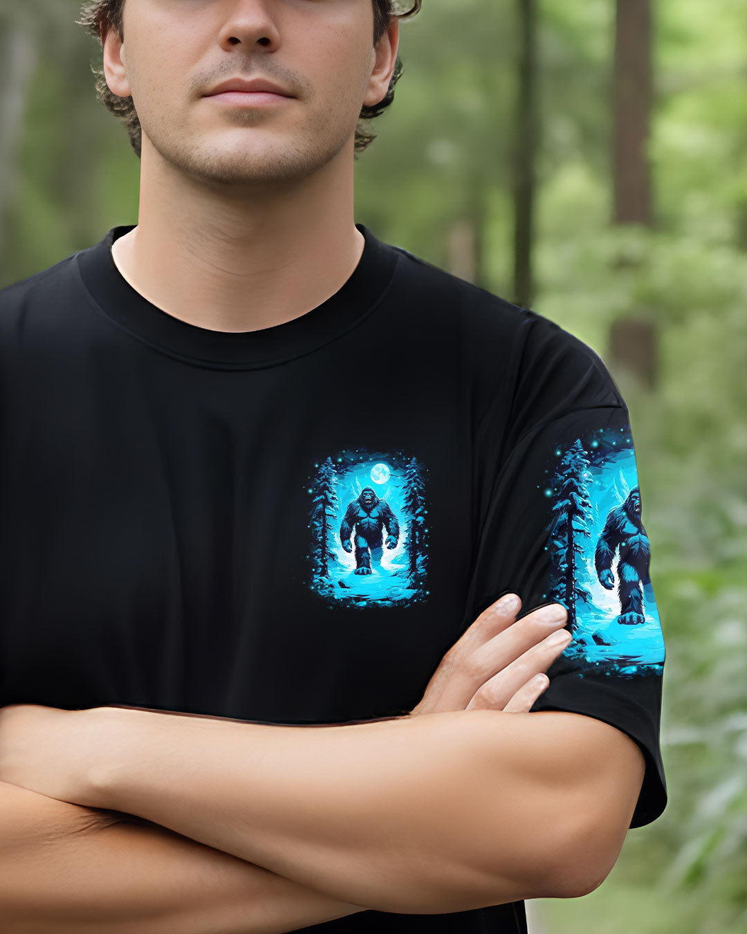 Answer the call of the wild with this evocative all-over print depicting Bigfoot advancing purposefully through a mystical mountain forest, illuminated by a radiant full moon overhead. The design captures that primal yearning to escape civilization's demands and return to untamed spaces where the soul finds genuine sanctuary. This piece resonates with solitude seekers and nature devotees who recognize the forest as their true home—a place where noise dissolves and authenticity flourishes. Perfect for those who understand that retreating to wilderness isn't avoidance but homecoming, a sacred return to freedom and peace. A powerful visual affirmation that sometimes the most important journey is the one that leads you back to where your spirit has always belonged—where mountains stand eternal and the moon guides you toward your truest self.