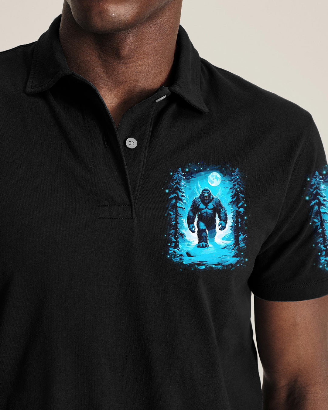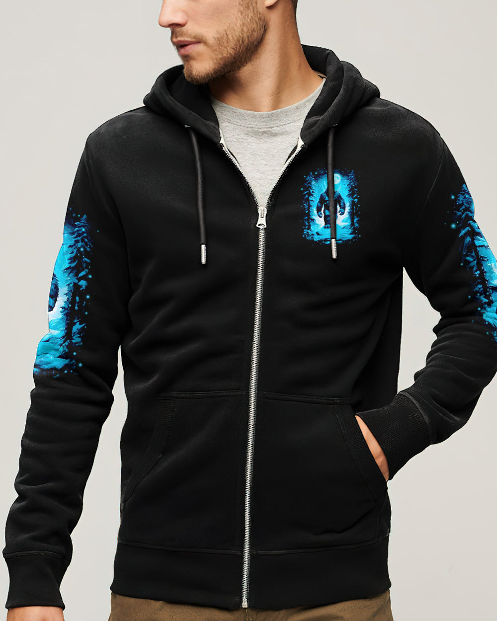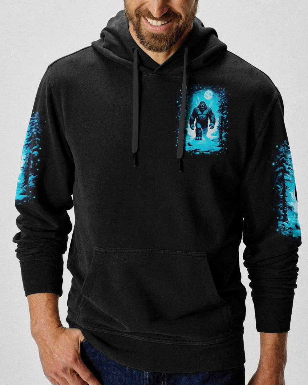 Answer the call of the wild with this evocative all-over print depicting Bigfoot advancing purposefully through a mystical mountain forest, illuminated by a radiant full moon overhead. The design captures that primal yearning to escape civilization's demands and return to untamed spaces where the soul finds genuine sanctuary. This piece resonates with solitude seekers and nature devotees who recognize the forest as their true home—a place where noise dissolves and authenticity flourishes. Perfect for those who understand that retreating to wilderness isn't avoidance but homecoming, a sacred return to freedom and peace. A powerful visual affirmation that sometimes the most important journey is the one that leads you back to where your spirit has always belonged—where mountains stand eternal and the moon guides you toward your truest self.