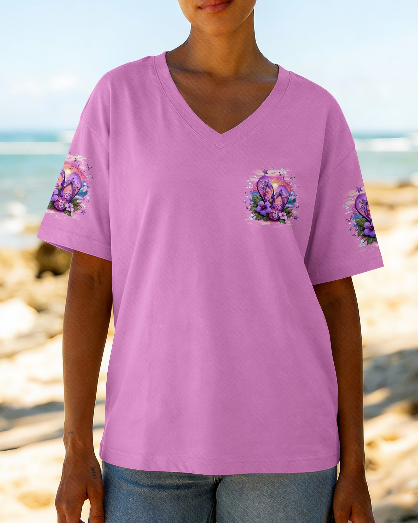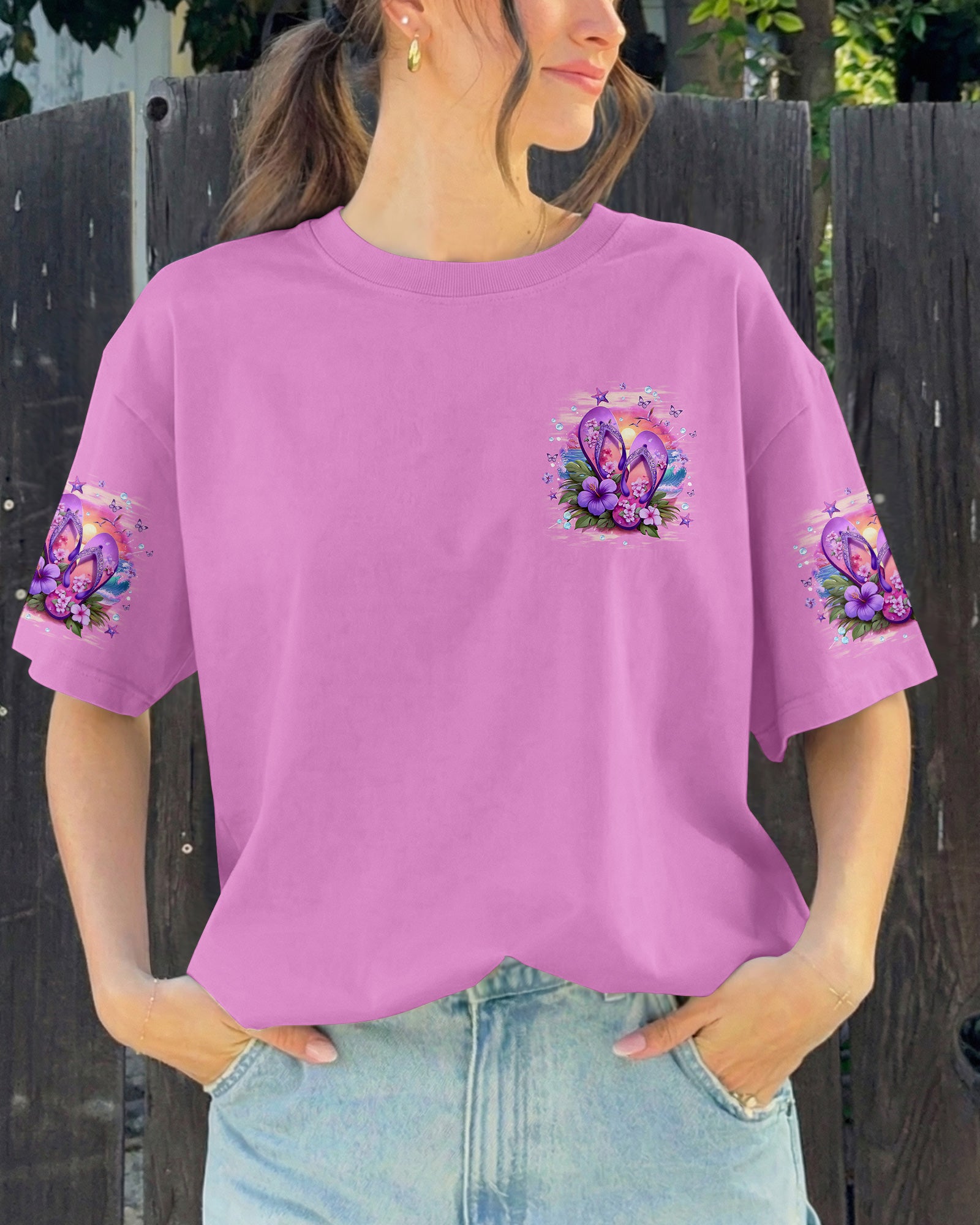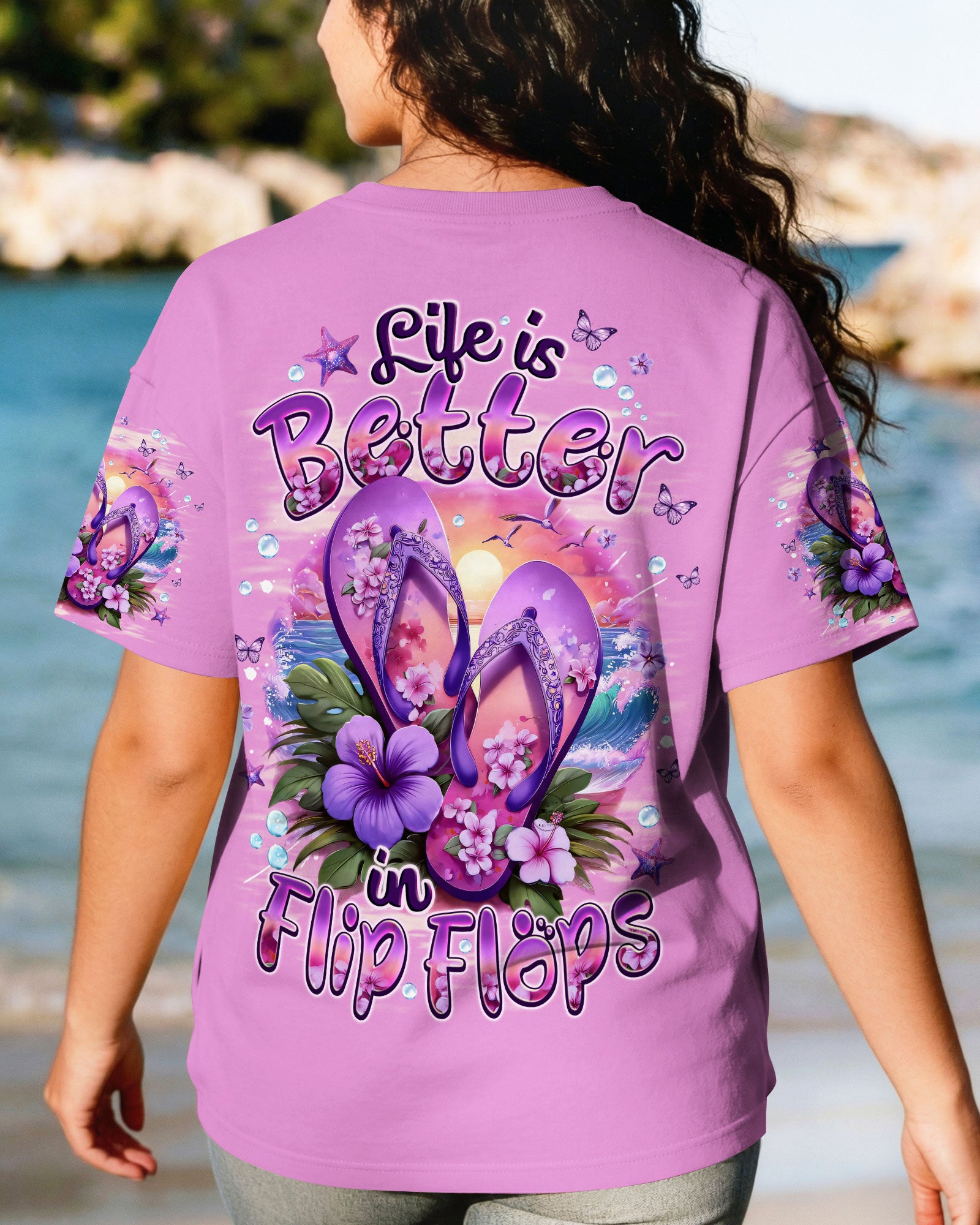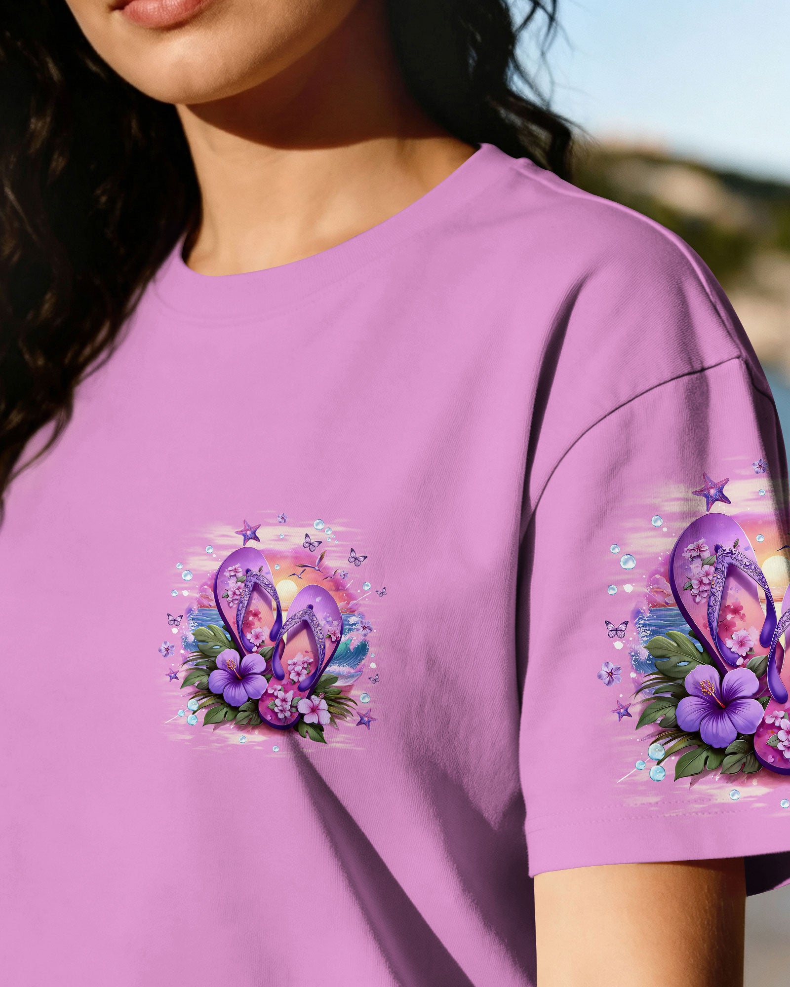 Slip into simplicity where every step feels lighter and every moment feels free. This all-over print shirt captures the essence of carefree coastal living—flip flops on sunny sand, blooming flowers, and the gentle ocean breeze that reminds you to slow down and savor life's little pleasures. Crafted from a premium cotton/polyester and spandex blend, this shirt delivers comfort and durability in equal measure. The dye-sublimation printing process creates rich, vibrant colors across every panel, with each section individually printed, cut, and sewn for a flawless graphic. High-definition details ensure the design stands out beautifully, no matter where you go. When life is easy, relaxed, and close to nature, everything just feels better. Wear this shirt as a wearable reminder to embrace simplicity and joy.