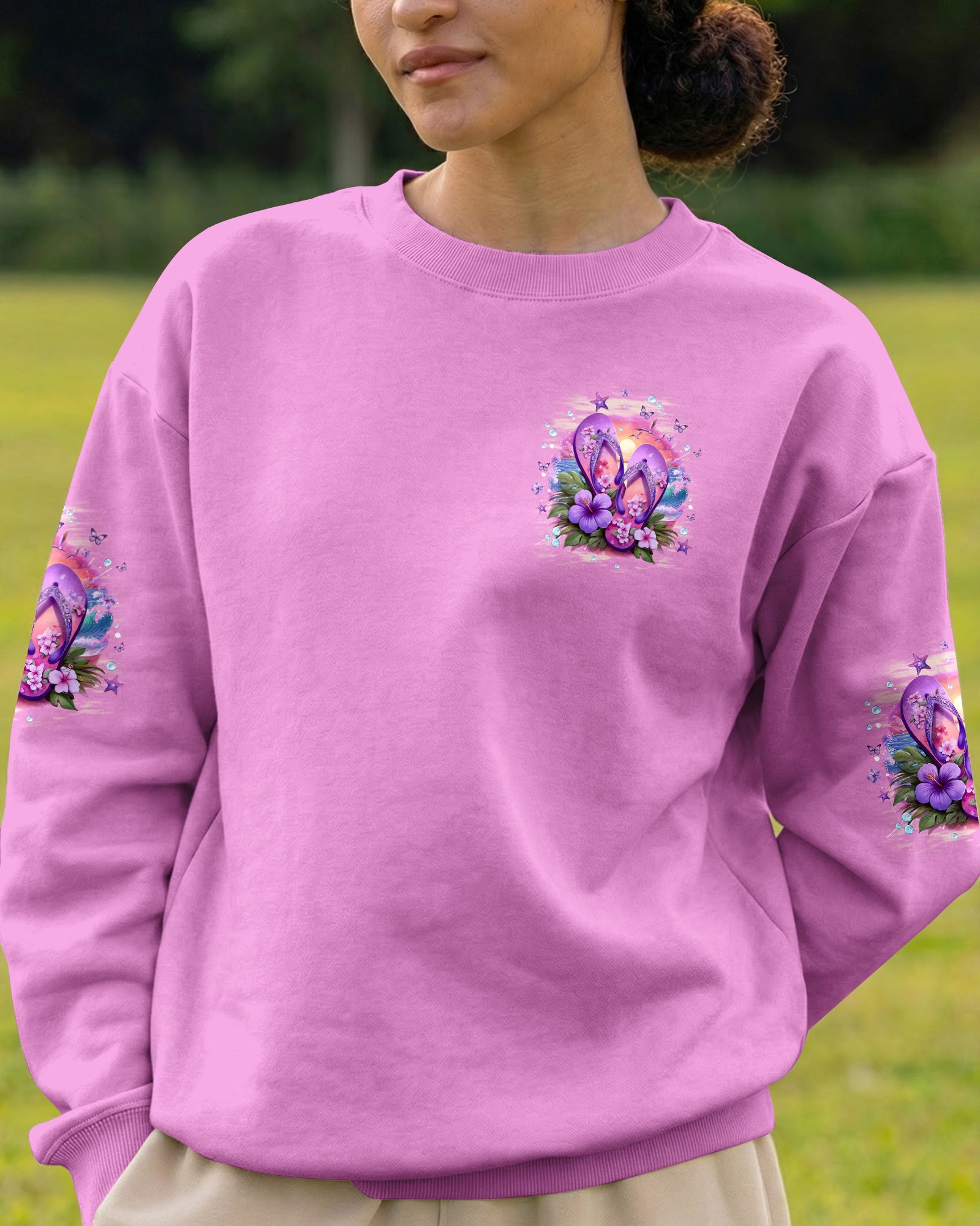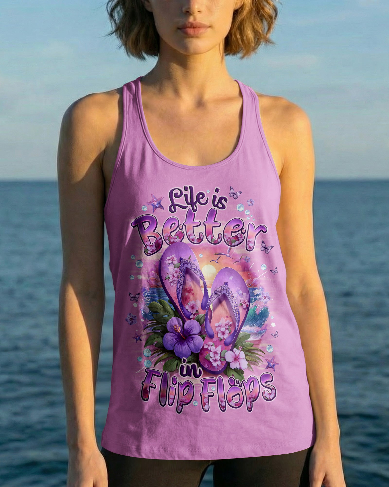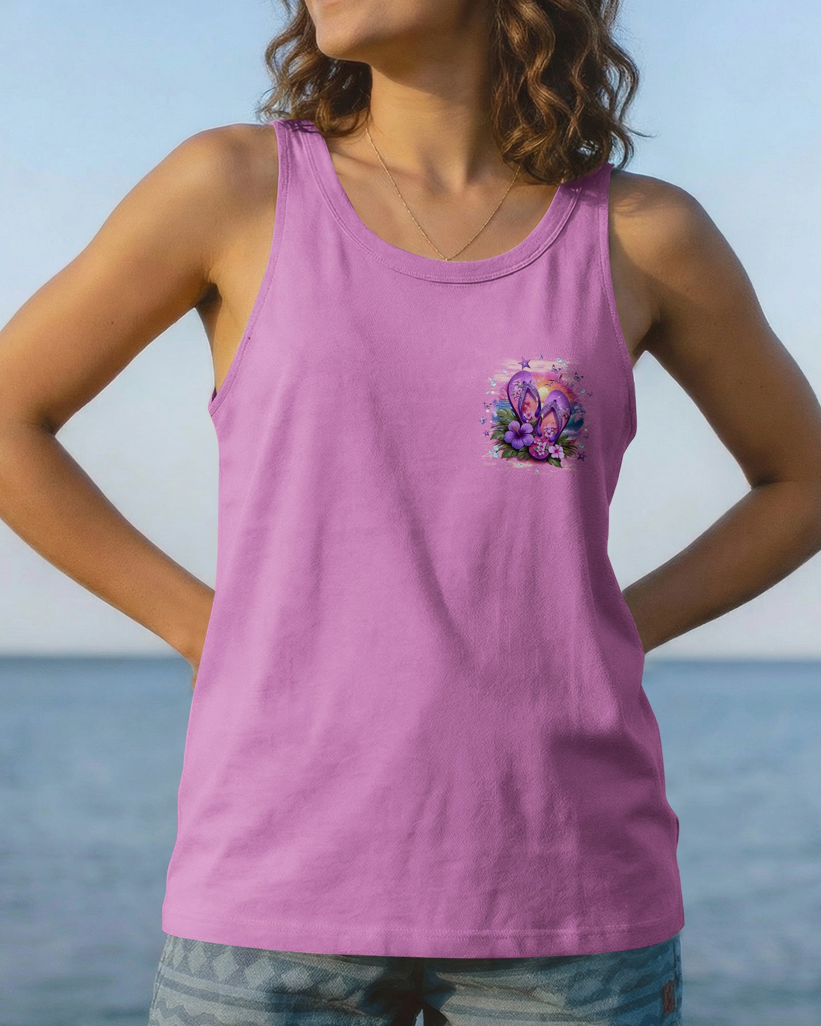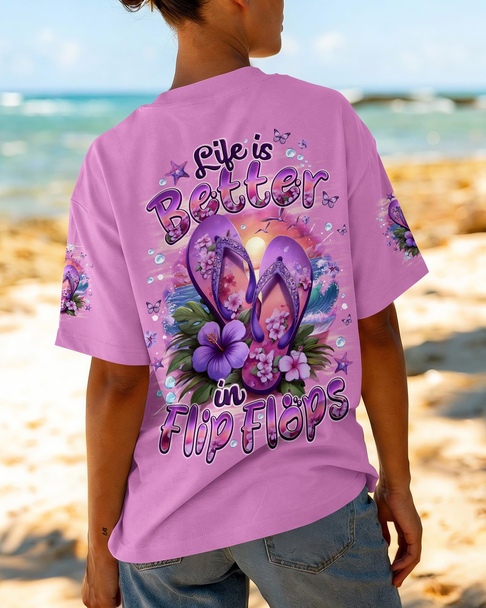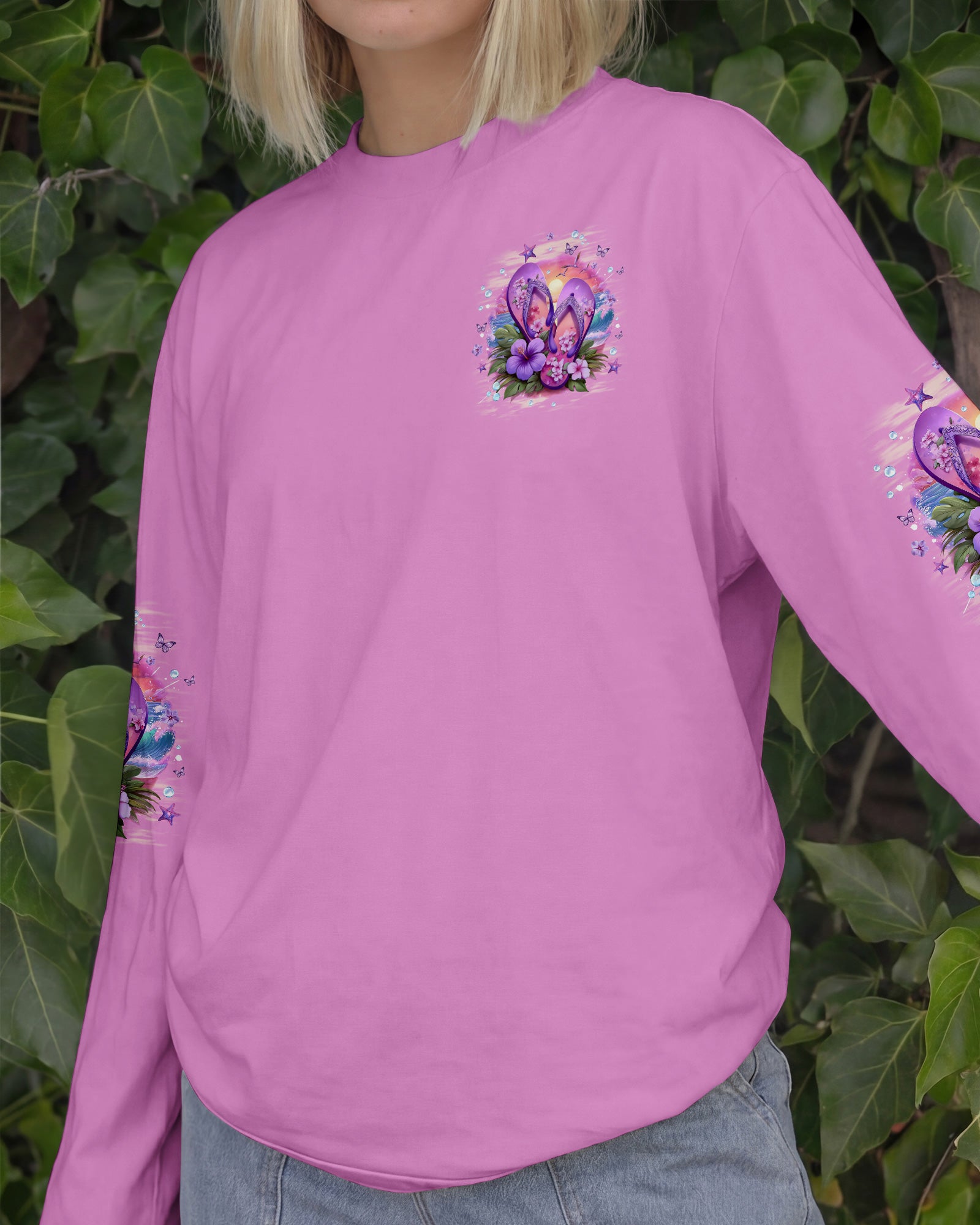 Slip into simplicity where every step feels lighter and every moment feels free. This all-over print shirt captures the essence of carefree coastal living—flip flops on sunny sand, blooming flowers, and the gentle ocean breeze that reminds you to slow down and savor life's little pleasures. Crafted from a premium cotton/polyester and spandex blend, this shirt delivers comfort and durability in equal measure. The dye-sublimation printing process creates rich, vibrant colors across every panel, with each section individually printed, cut, and sewn for a flawless graphic. High-definition details ensure the design stands out beautifully, no matter where you go. When life is easy, relaxed, and close to nature, everything just feels better. Wear this shirt as a wearable reminder to embrace simplicity and joy.