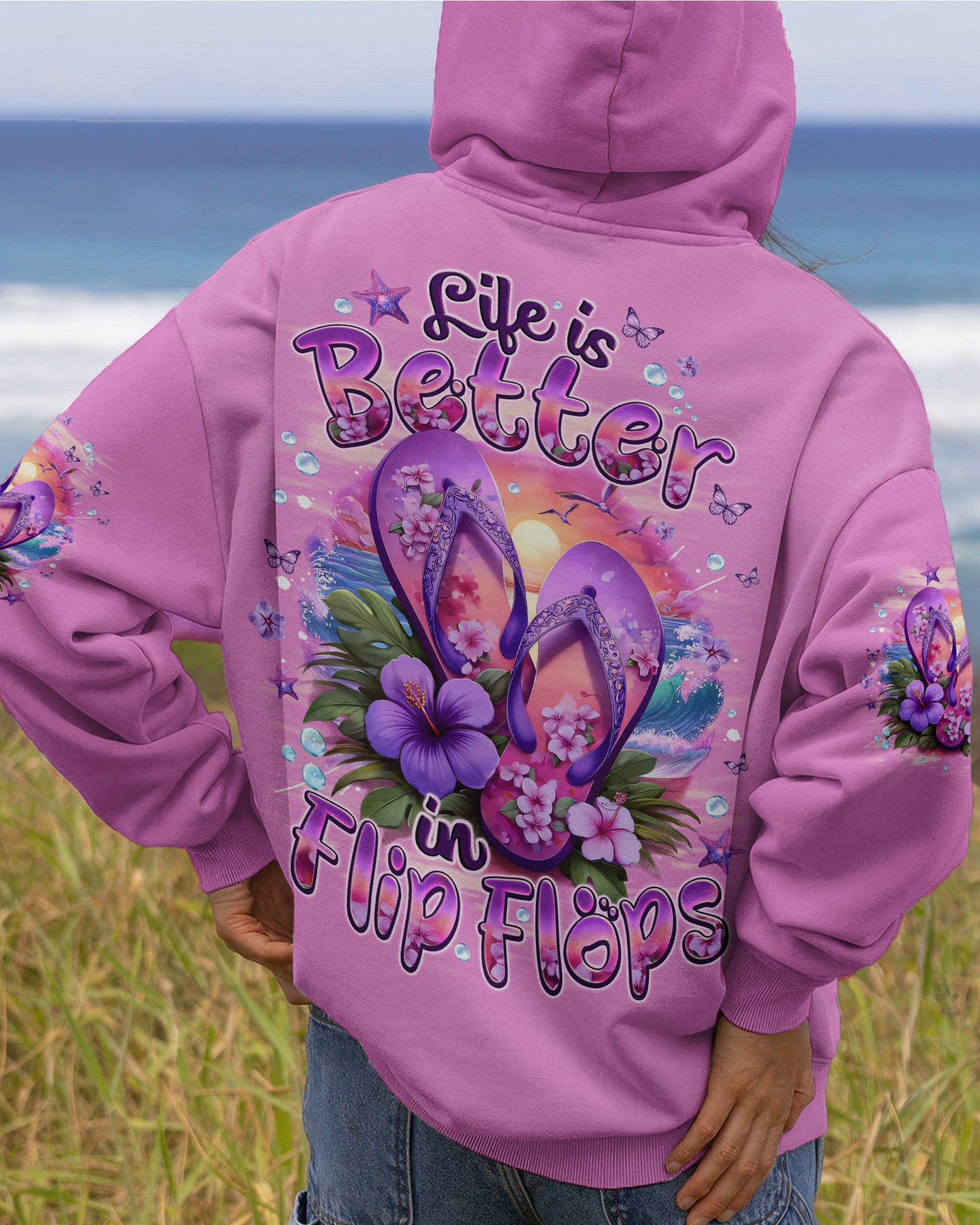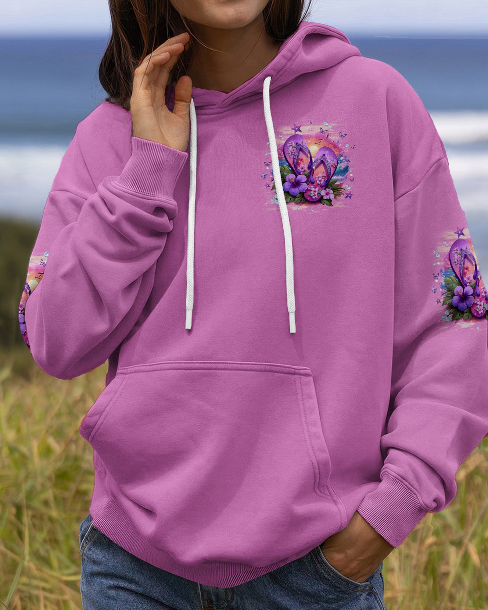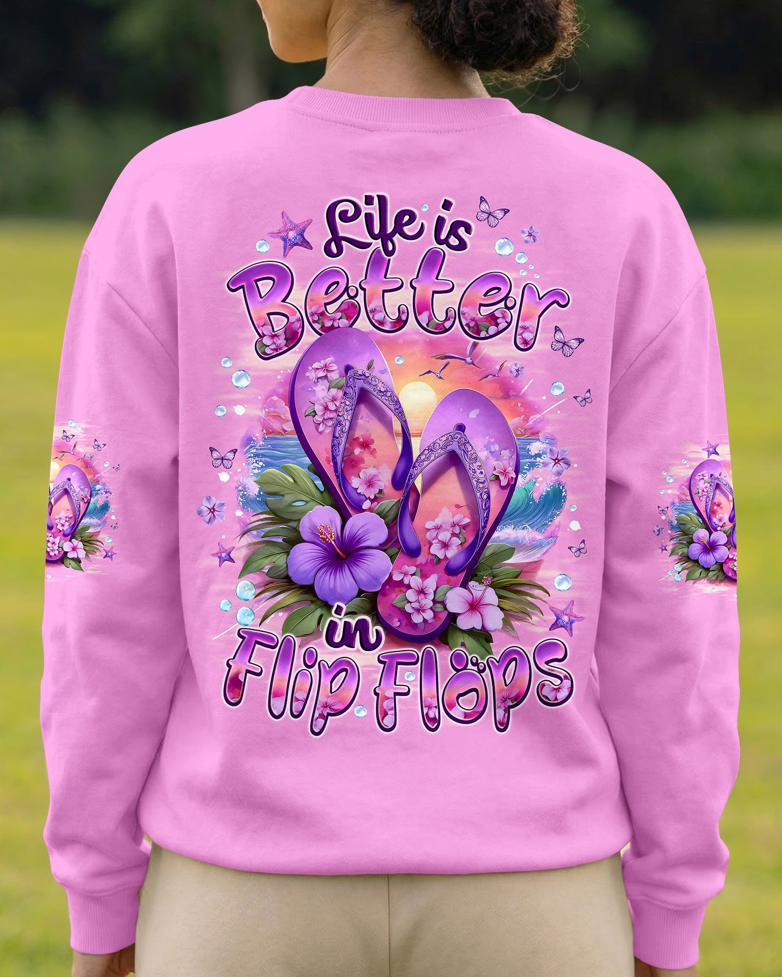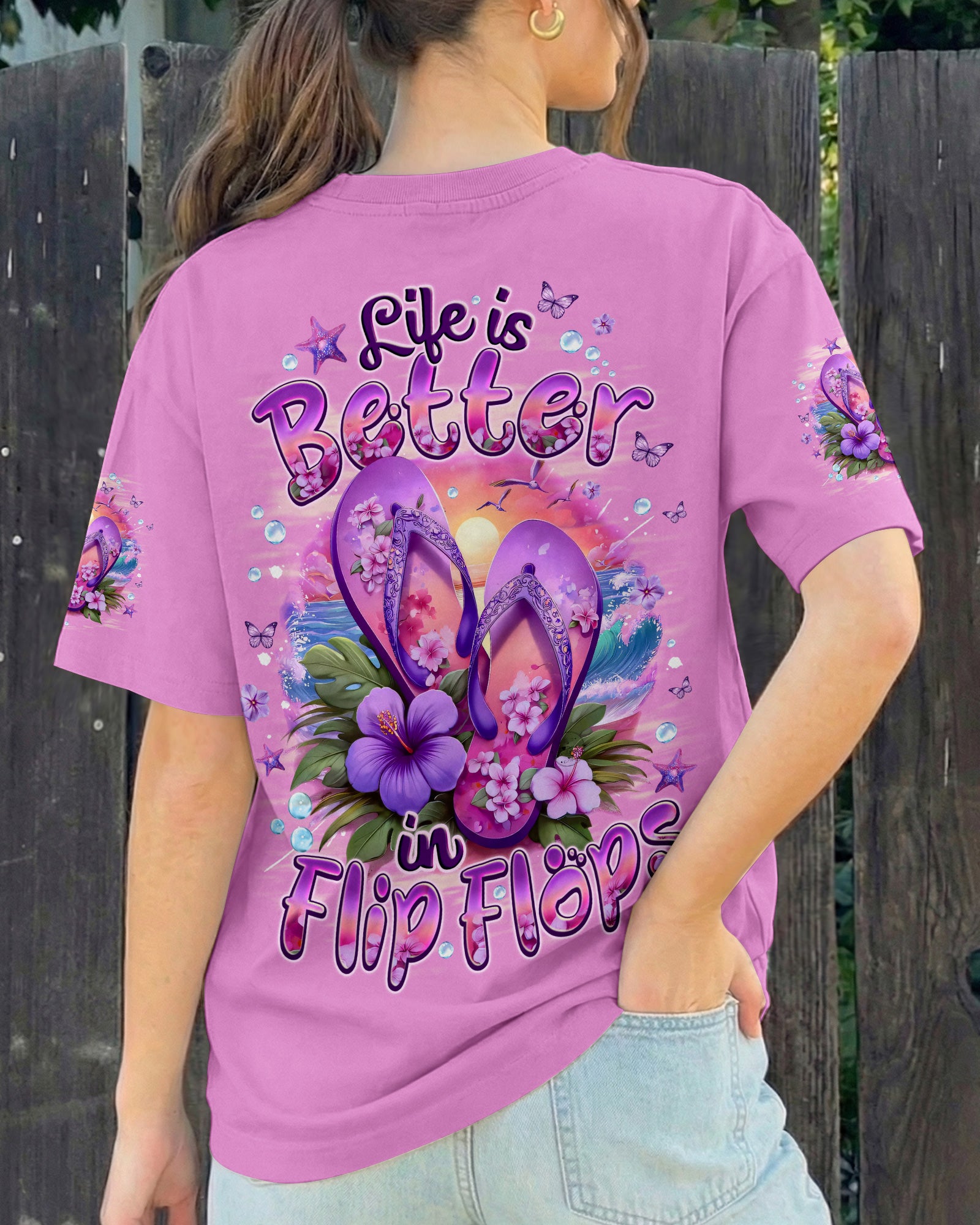 Slip into simplicity where every step feels lighter and every moment feels free. This all-over print shirt captures the essence of carefree coastal living—flip flops on sunny sand, blooming flowers, and the gentle ocean breeze that reminds you to slow down and savor life's little pleasures. Crafted from a premium cotton/polyester and spandex blend, this shirt delivers comfort and durability in equal measure. The dye-sublimation printing process creates rich, vibrant colors across every panel, with each section individually printed, cut, and sewn for a flawless graphic. High-definition details ensure the design stands out beautifully, no matter where you go. When life is easy, relaxed, and close to nature, everything just feels better. Wear this shirt as a wearable reminder to embrace simplicity and joy.