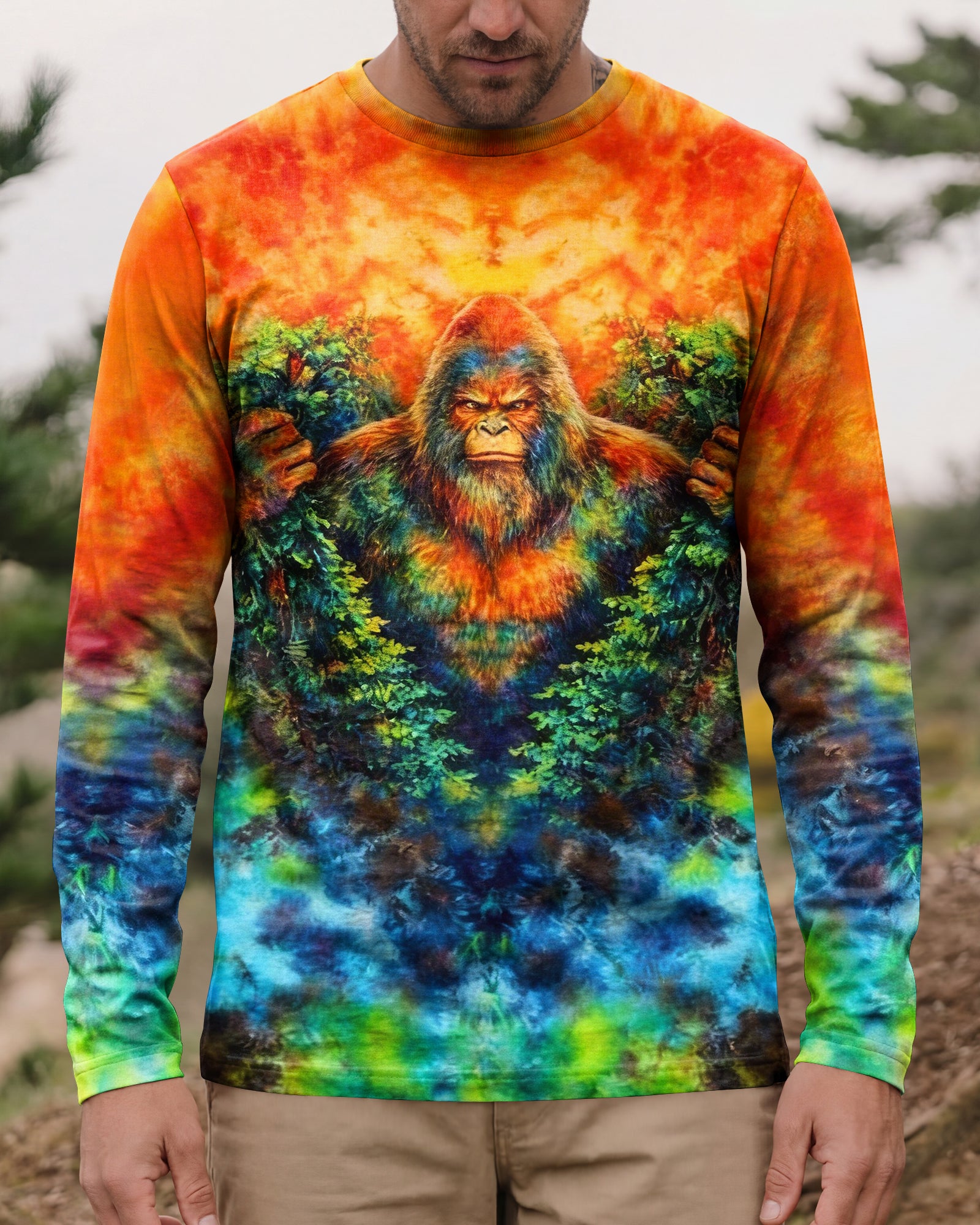 This explosive design captures a powerful Bigfoot breaking through the forest, surrounded by bold, vibrant patterns that burst with untamed energy. The dynamic colors and artistic textures create a mysterious, wild atmosphere—where myth meets adventure. The message celebrates fearless exploration and embracing your inner legend, reminding you that the wild isn’t just a place… it’s a mindset.