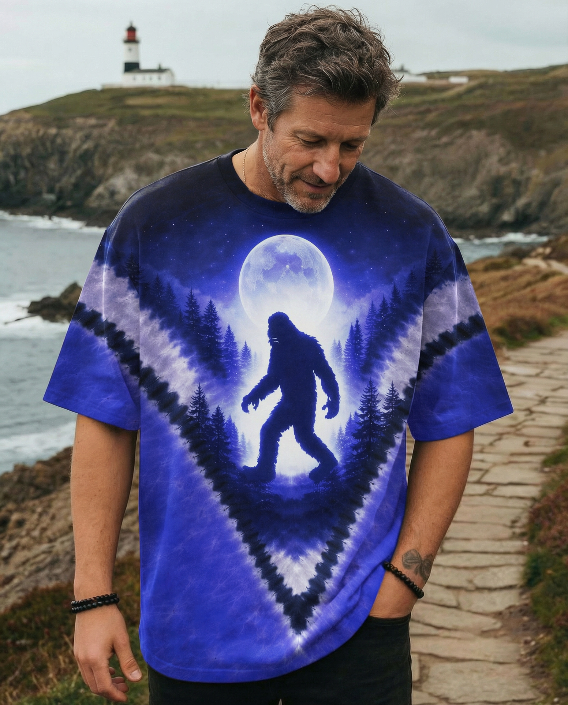 Moonlit shadows and swirling energy capture a legendary wanderer moving through the forest with raw power and mystery. This all-over print design celebrates Bigfoot's untamed spirit and the quiet strength found where instinct rules and legends take root. The composition evokes solitude and a profound connection to nature's wild unknown, resonating with those who feel most alive off the beaten path. Ideal for adventurers who embrace the forest's primal energy and honor the deep call of the wilderness.