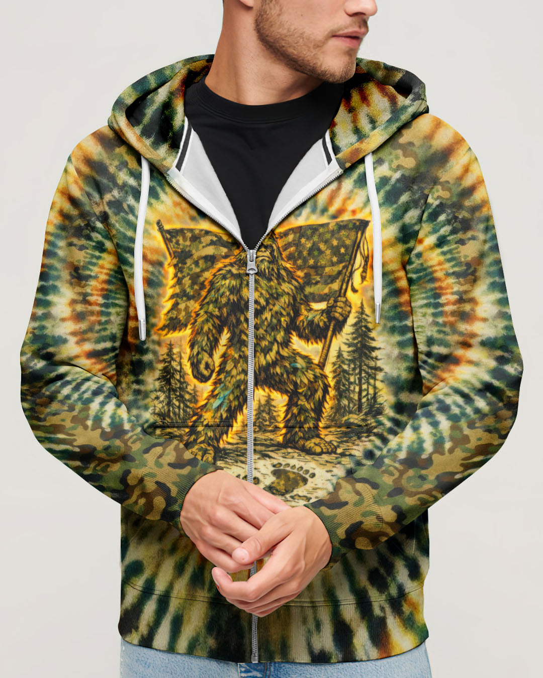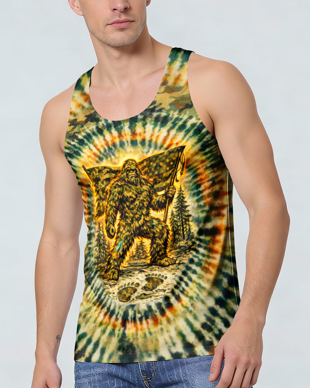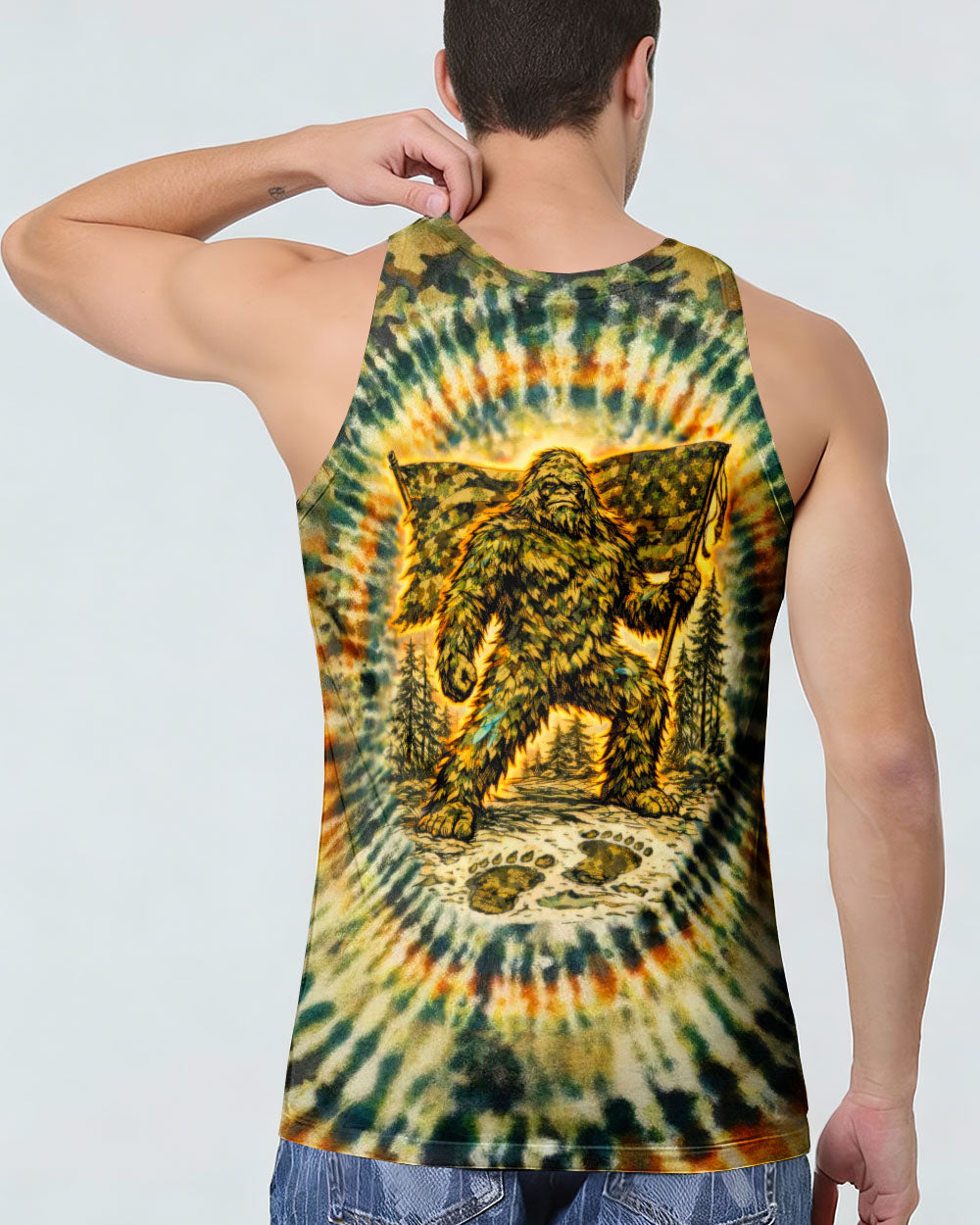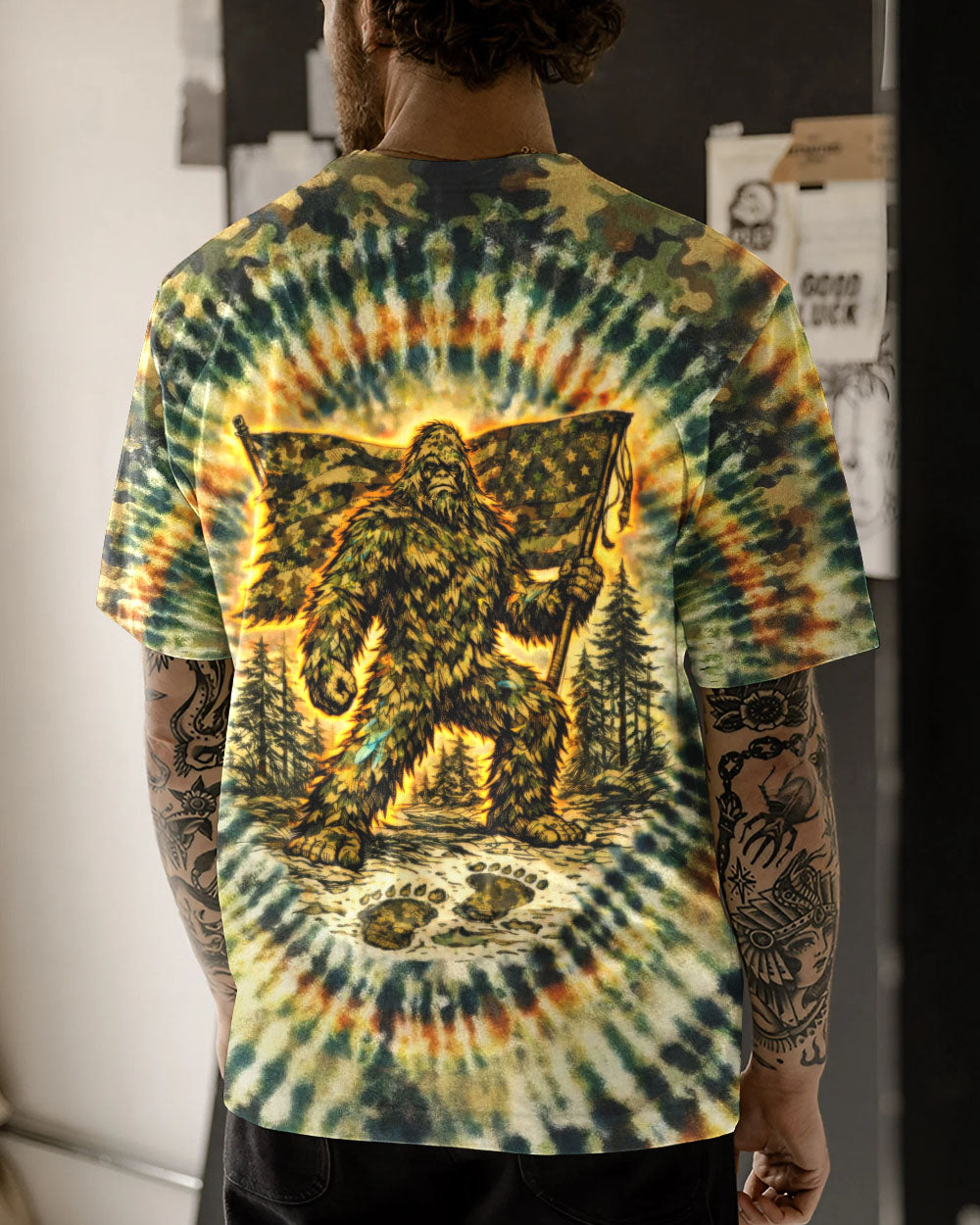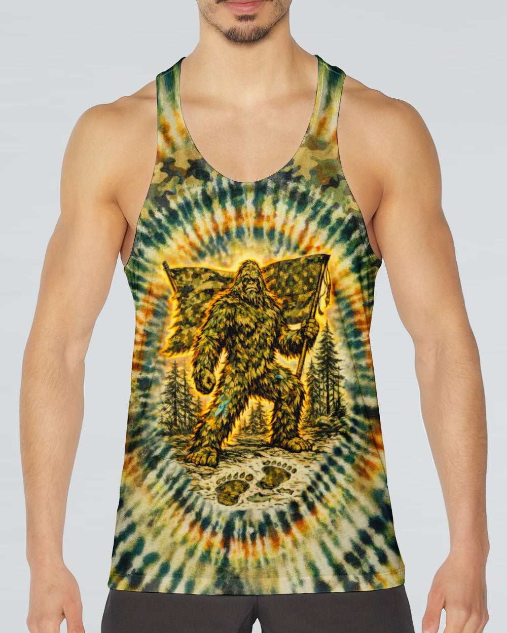 A legendary figure strides through the wild with bold patriotism, blending mystery and American pride in one striking design. Created for adventurous spirits, it celebrates freedom, independence, and a love for the untamed outdoors. The camouflage background adds a rugged edge, perfect for those who embrace both wilderness and country. The quote represents fearless individuality—standing tall, living free, and honoring what you believe in. Our all-over print shirts feature expertly crafted 3D dye-sublimation printing that brings vibrant, intricate designs to life. Each panel is individually printed, cut, and sewn for flawless graphics with no imperfections. Made from a premium cotton/polyester and spandex blend, these shirts deliver comfort, durability, and high-definition color that stands out wherever you go. Wear it like a work of art.