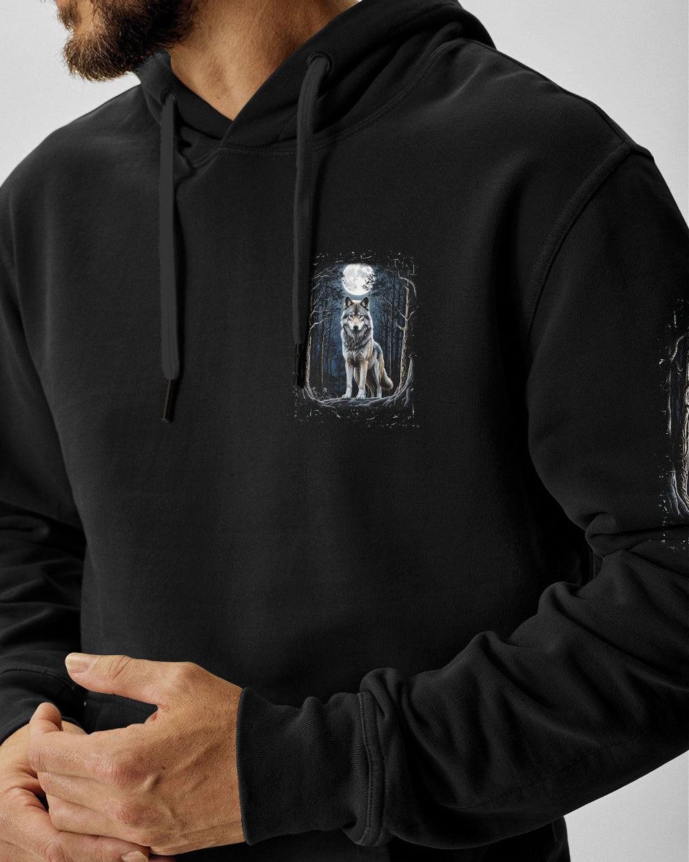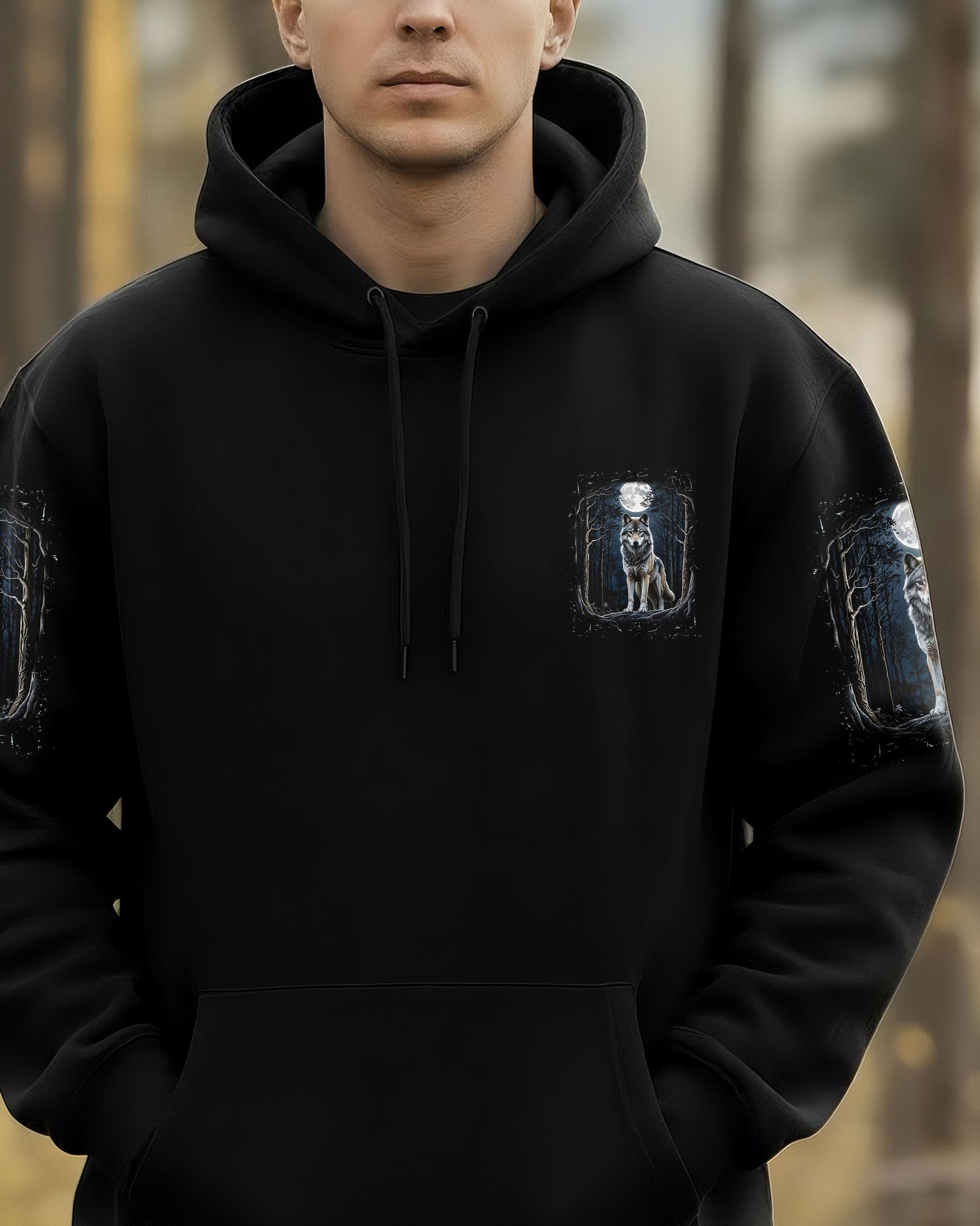Embrace the raw power of solitude with this evocative all-over print showcasing a solitary wolf standing sentinel in an enchanted forest beneath a luminous full moon. The design masterfully blends shadow and moonlight, creating an atmosphere where darkness transforms from something feared into a source of profound strength and clarity. This piece resonates with those who discover their truest selves in wilderness and stillness—where the night forest becomes a sanctuary for the soul. A striking tribute to the transformative energy found in solitude, wild spaces, and the quiet wisdom that emerges when we embrace our inner darkness as an ally rather than an adversary.