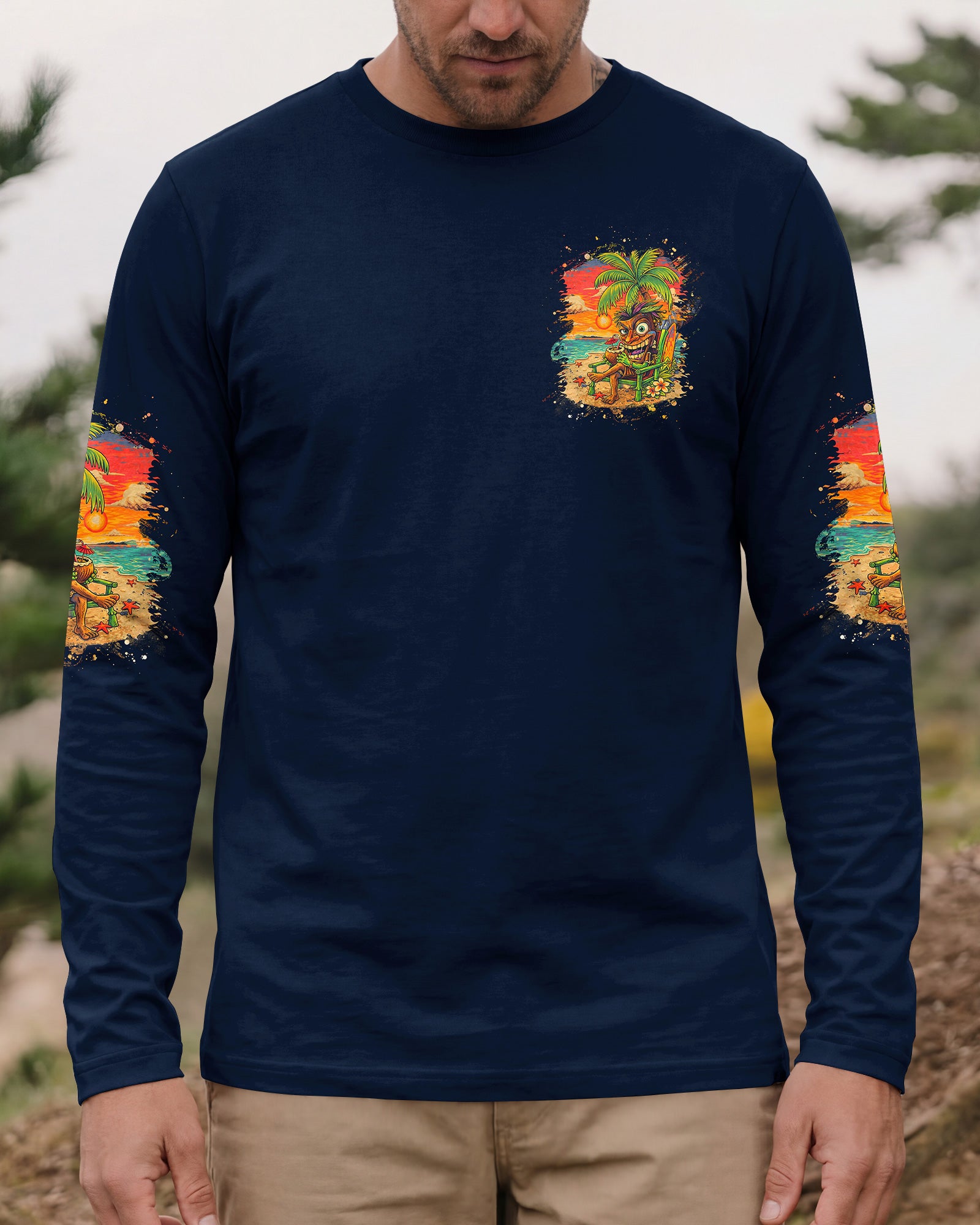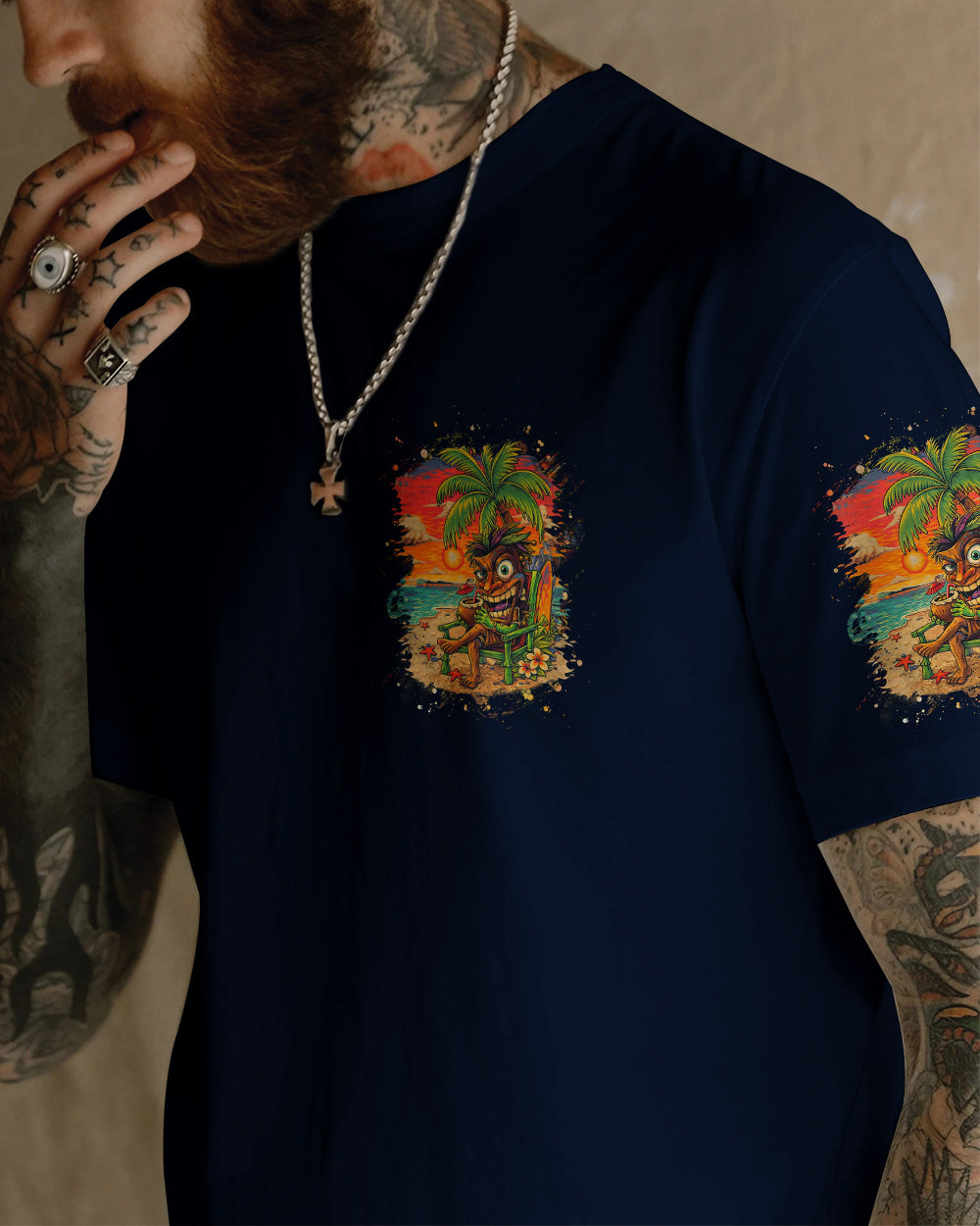 Island rhythm comes alive with this cheerful Tiki character relaxing by the beach in pure tropical bliss. The playful design captures a carefree mindset where stress fades and every moment feels like a vacation. Bright summer vibes and laid-back energy reflect freedom, fun, and living life at your own pace. Our all-over print shirts feature expertly crafted 3D dye-sublimation printing that brings vibrant color and intricate detail to every inch of the fabric. Each panel is individually printed, cut, and sewn for a flawless graphic with no imperfections. The high-definition printing ensures you'll stand out wherever you go. Crafted from a premium cotton/polyester and spandex blend, these shirts deliver comfort and durability in equal measure. The delicate combination of colors and patterns creates a wearable work of art that captures that sunny Tiki spirit. Grab yours now and bring that carefree island energy wherever you go.