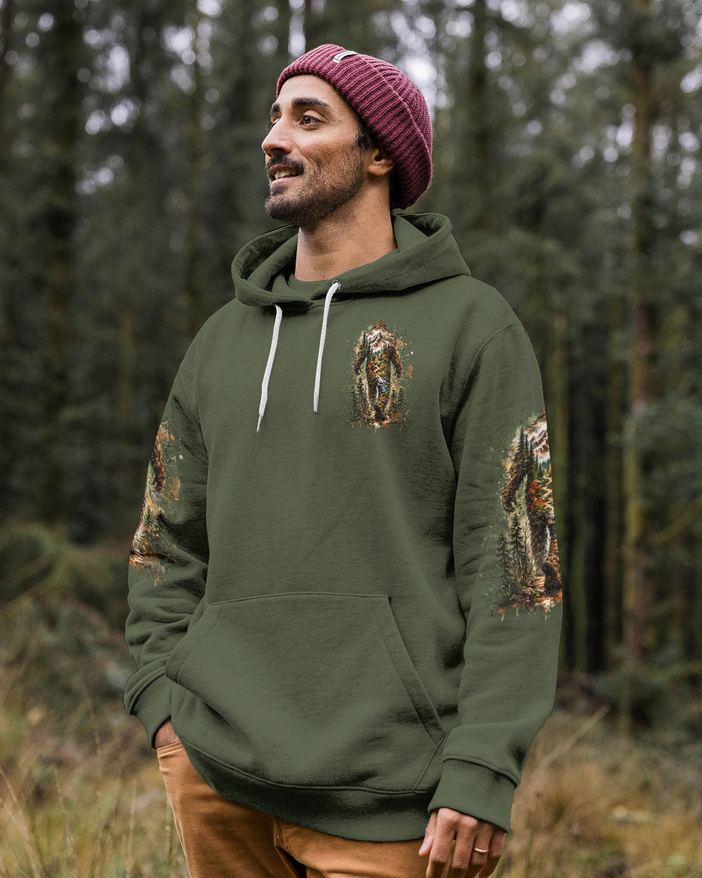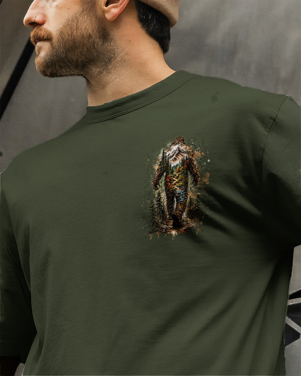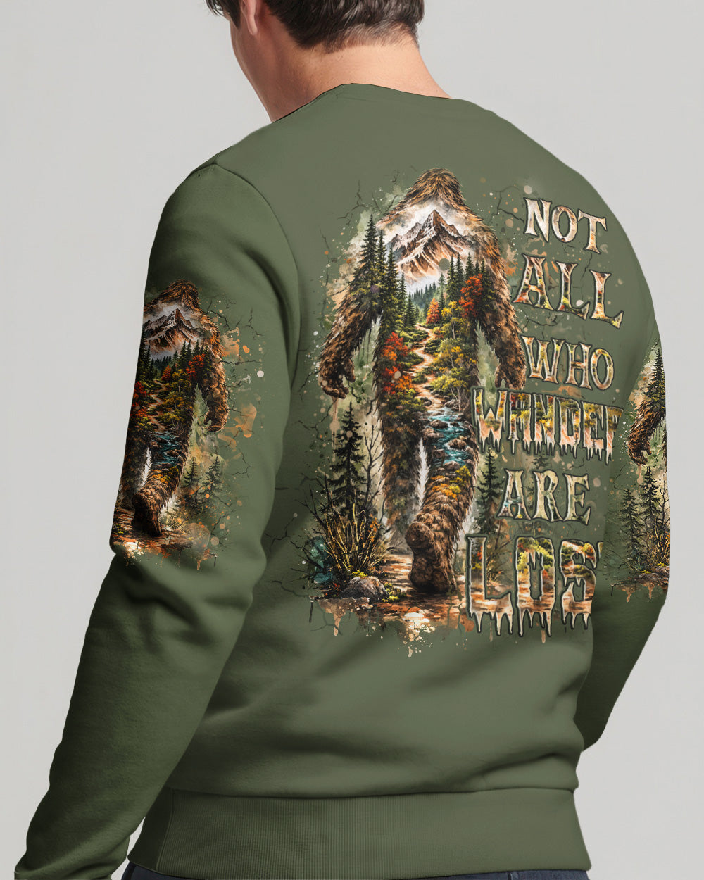 Mysterious forest vibes come alive with a wandering Bigfoot silhouette exploring the wild unknown. The adventurous design celebrates freedom, curiosity, and the joy of carving your own path through nature. Every step reflects a spirit that seeks experiences over directions and finds purpose in the journey itself. This all-over print shirt features bold, untamed style with dye-sublimation printing that delivers rich, vibrant colors across every panel. Crafted from a premium cotton/polyester and spandex blend, it's comfortable enough for everyday wear yet durable enough to withstand adventure. Each panel is individually printed, cut, and sewn for a flawless graphic with no imperfections, ensuring high-definition detail that stands out wherever you go. Embrace the call of the wild with a shirt that's as much a work of art as it is a statement of your wandering spirit.