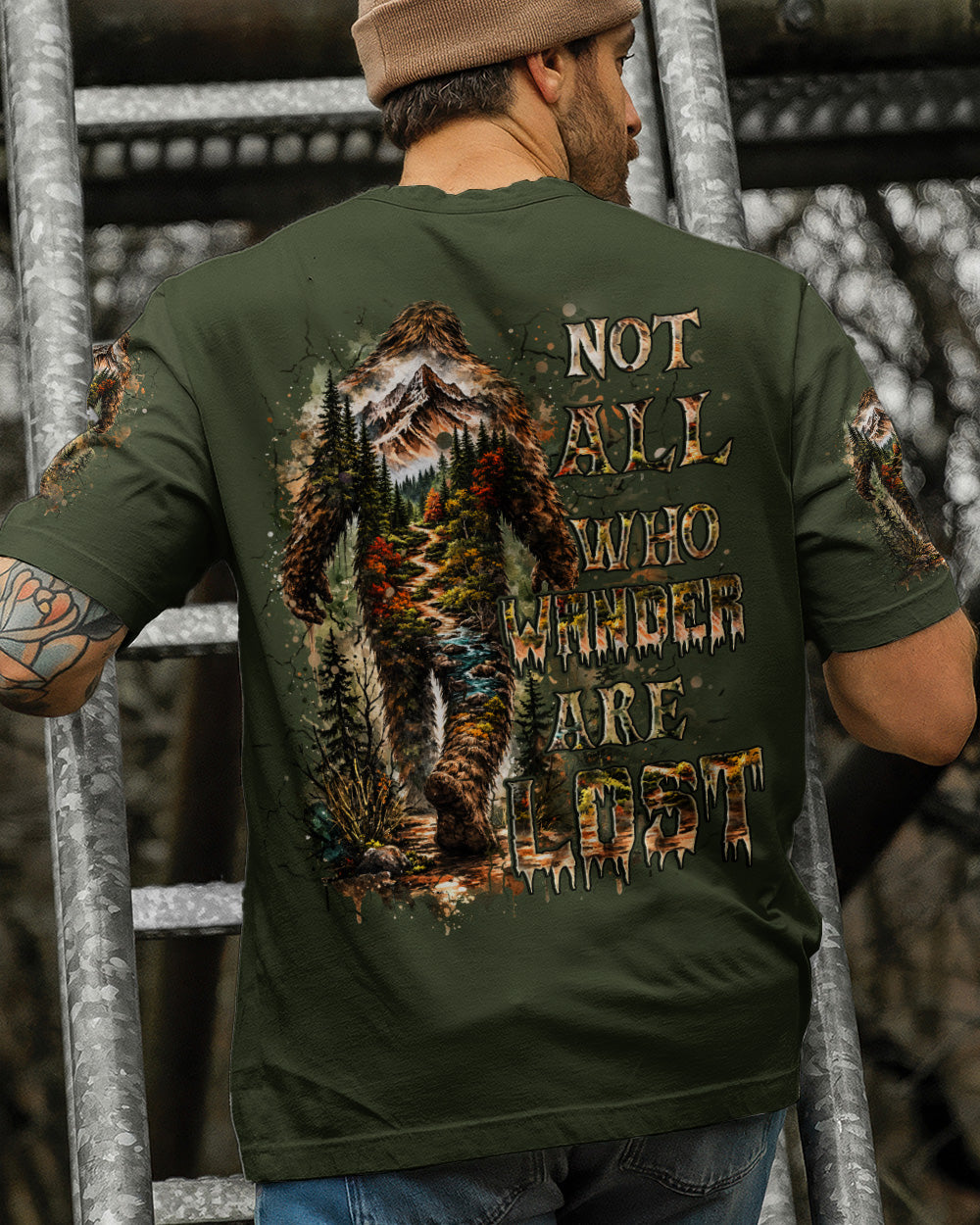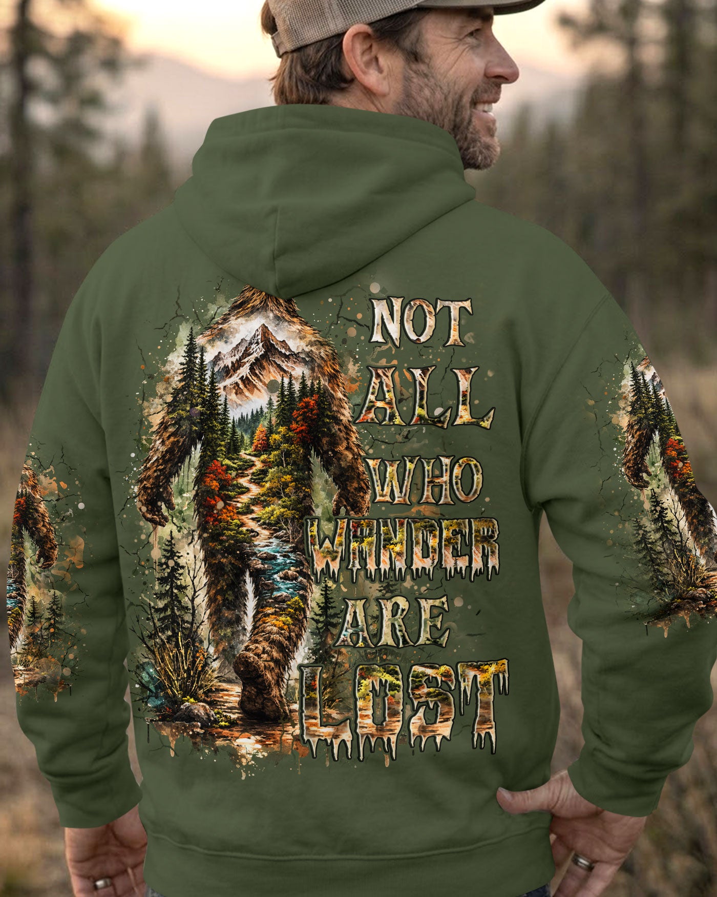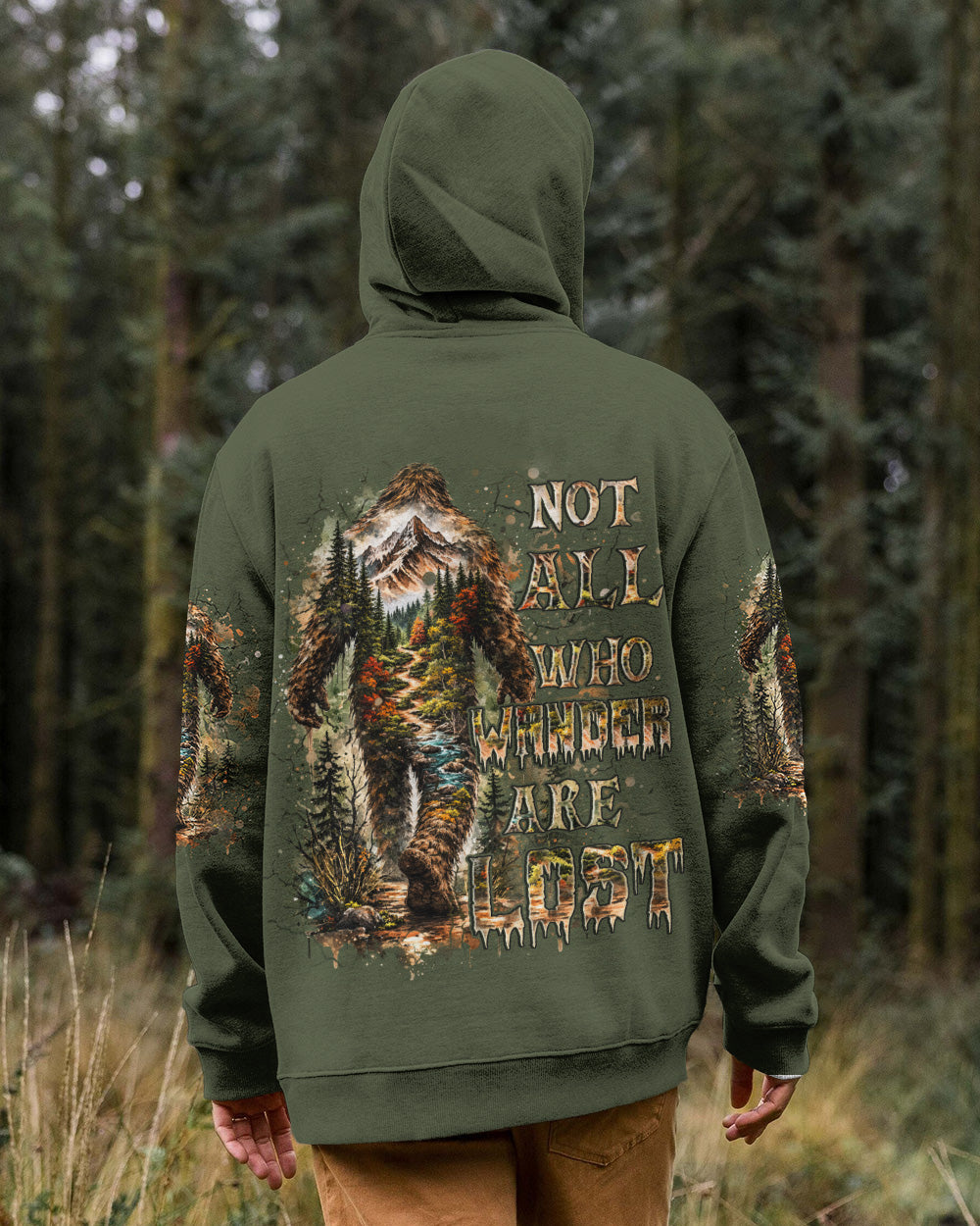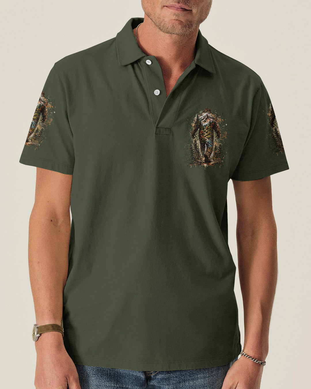 Mysterious forest vibes come alive with a wandering Bigfoot silhouette exploring the wild unknown. The adventurous design celebrates freedom, curiosity, and the joy of carving your own path through nature. Every step reflects a spirit that seeks experiences over directions and finds purpose in the journey itself. This all-over print shirt features bold, untamed style with dye-sublimation printing that delivers rich, vibrant colors across every panel. Crafted from a premium cotton/polyester and spandex blend, it's comfortable enough for everyday wear yet durable enough to withstand adventure. Each panel is individually printed, cut, and sewn for a flawless graphic with no imperfections, ensuring high-definition detail that stands out wherever you go. Embrace the call of the wild with a shirt that's as much a work of art as it is a statement of your wandering spirit.