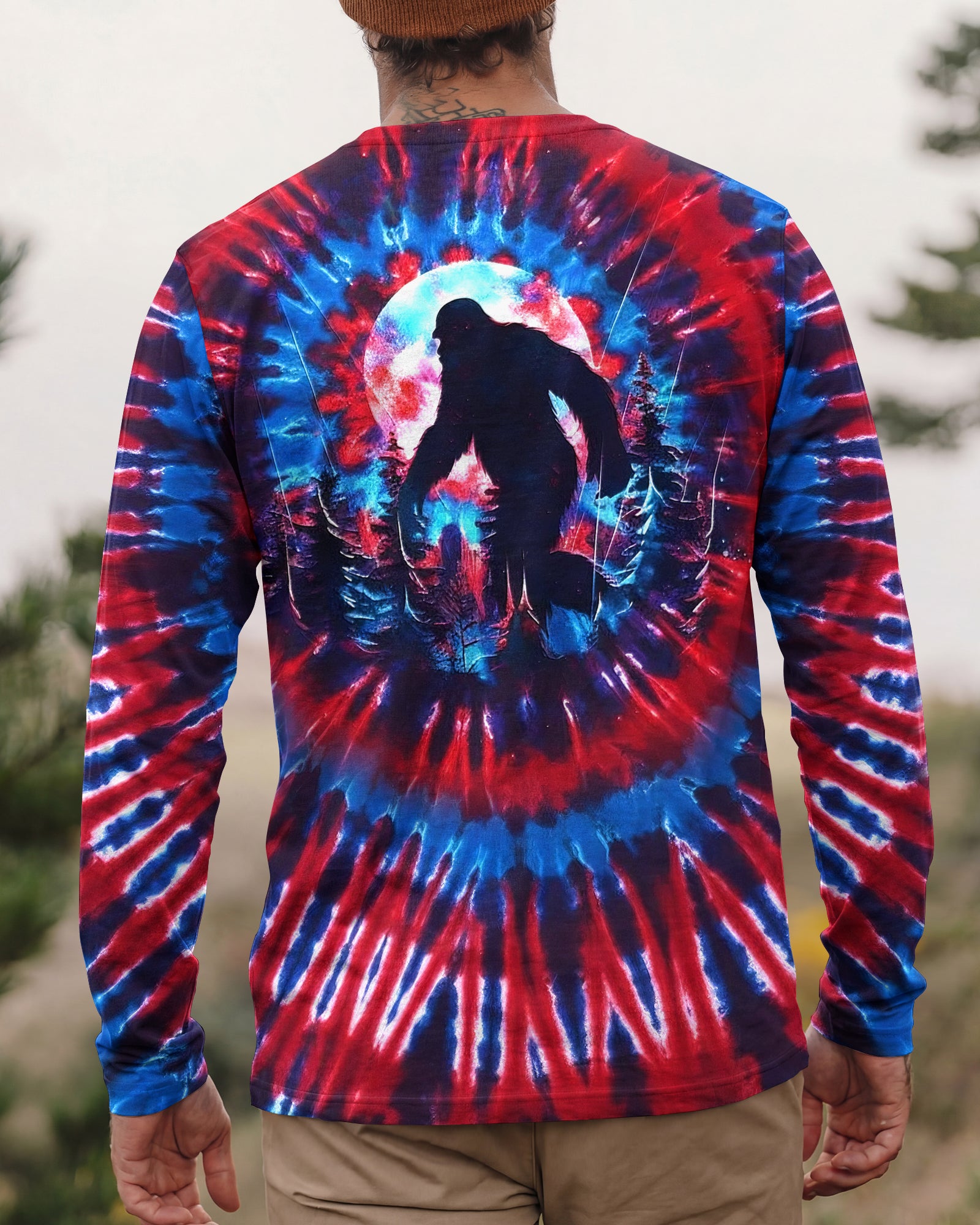 Embrace the call of the wild with this striking all-over print that captures Bigfoot's enigmatic presence. A haunting silhouette moves through dense forest under a luminous moon, framed by a bold red-blue swirl that pulses with untamed energy. This design speaks to adventurers and independent thinkers—those drawn to mystery, exploration, and the freedom of forging their own path. More than wearable art, it's a statement piece for the curious soul who celebrates the unknown and refuses to be confined by convention. Perfect for anyone who feels the pull of nature's mysteries and lives authentically on their own terms.