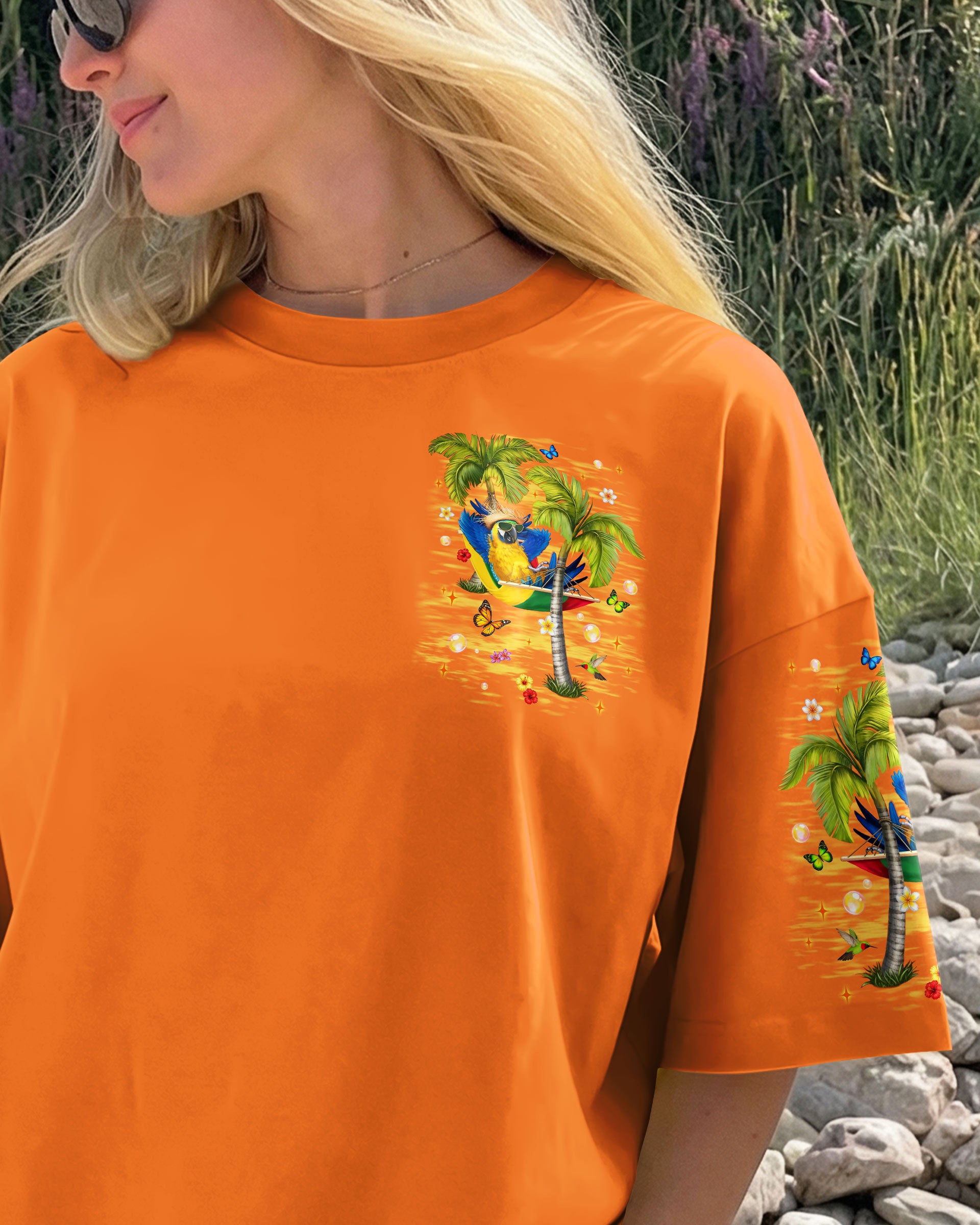 Escape to island time with this laid-back all-over print parrot shirt that celebrates the art of slowing down. Featuring a relaxed parrot swaying in a hammock on a vibrant tropical island, this design captures the carefree mindset of coastal living—choosing peace over pressure and embracing an easy rhythm free from stress and schedules. Crafted from a premium cotton/polyester and spandex blend, each shirt features expertly applied dye-sublimation printing with individually printed and sewn panels for flawless, high-definition graphics. The delicate color combinations and intricate patterns create a wearable work of art that stands out wherever you go. Perfect for beach dreamers and vacation lovers who carry calm, coastal energy in their everyday style.