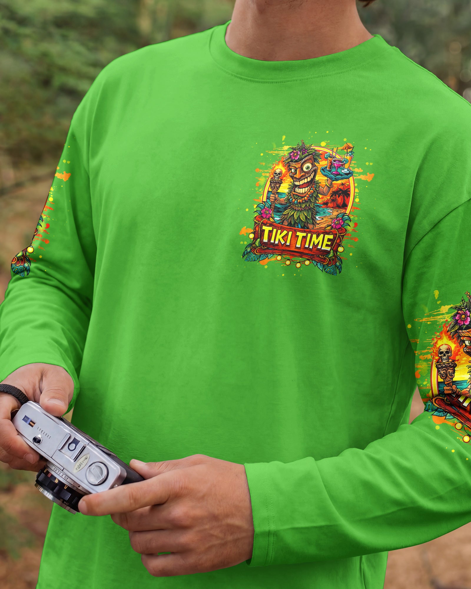 Escape to island time with this vibrant all-over print shirt featuring a cheerful Tiki mascot surrounded by bright summer colors. Crafted from a premium cotton/polyester and spandex blend, this shirt delivers comfort and durability with every wear. The dye-sublimation printing technique ensures stunning color depth and detail across the entire garment, with each panel individually printed, cut, and sewn for a flawless finish. Perfect for those who embrace a laid-back lifestyle and want to carry that carefree paradise spirit wherever they go. Ideal for beach days, casual outings, or anyone celebrating the joy of slowing down and soaking up the good vibes.