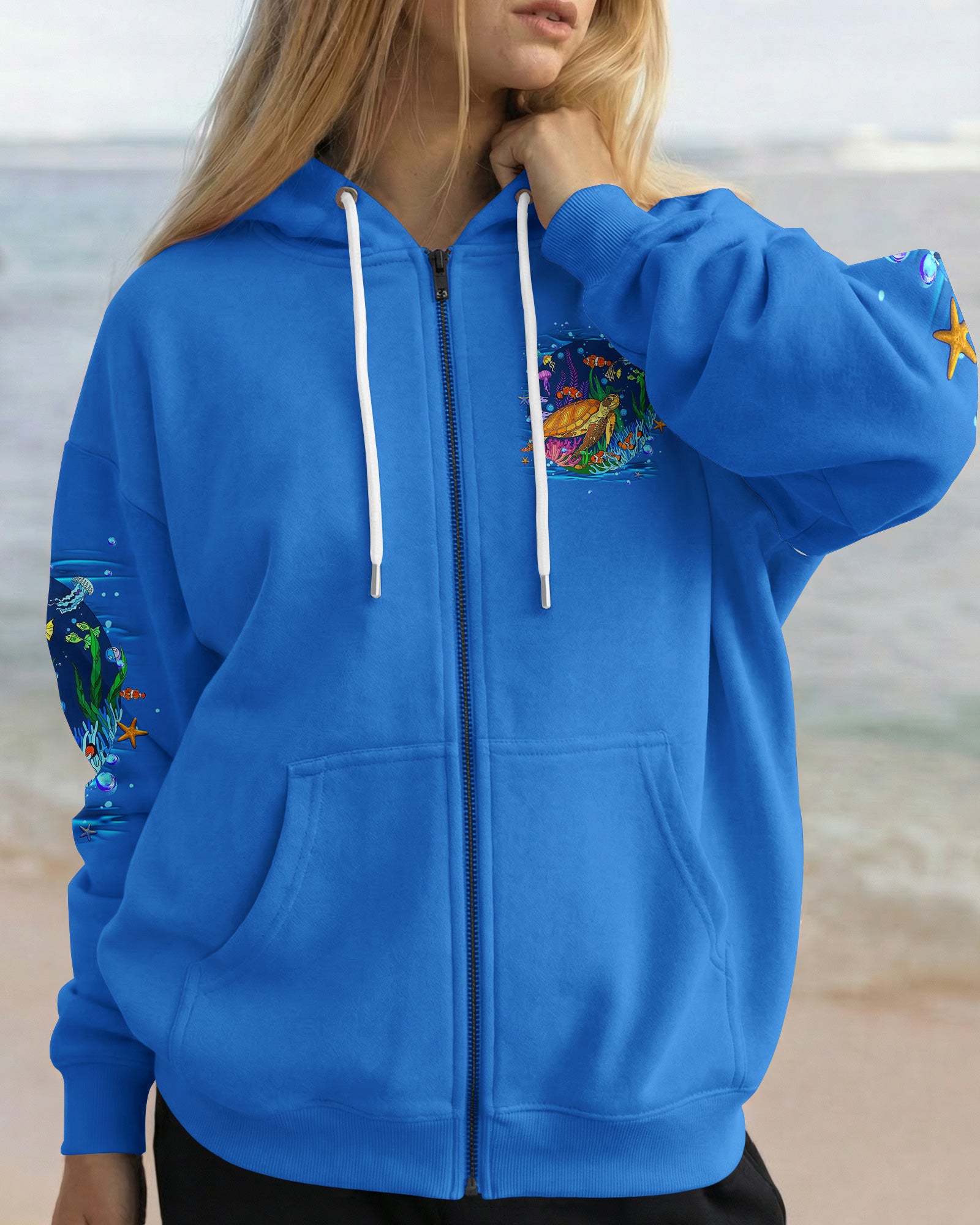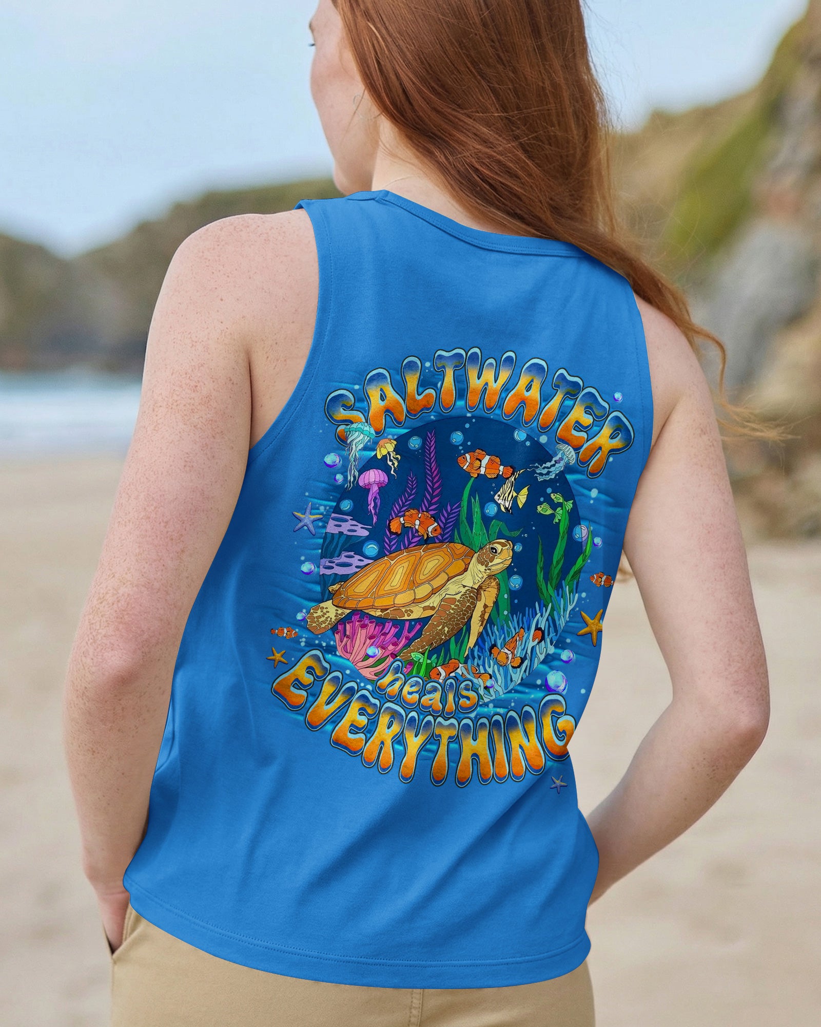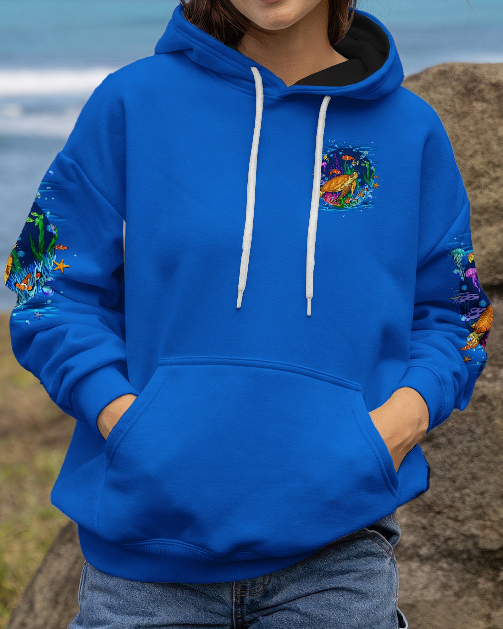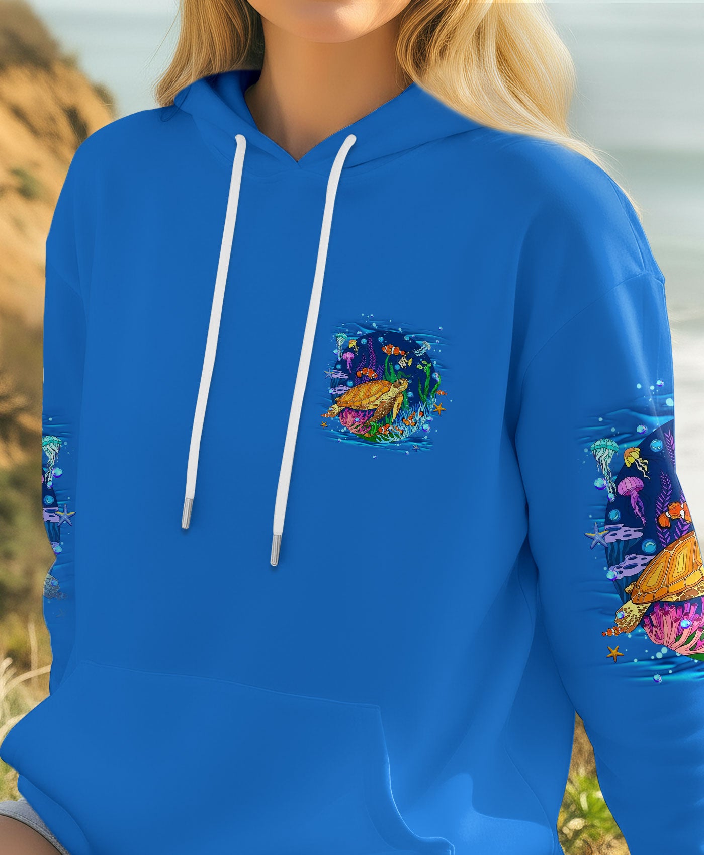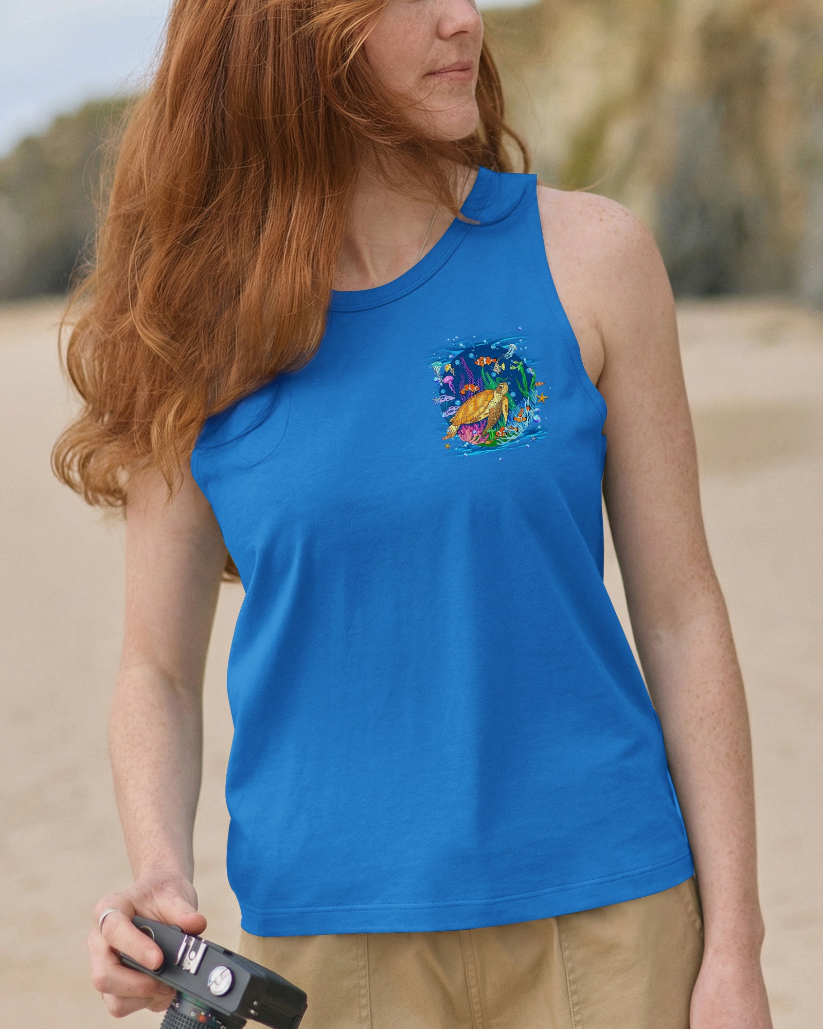 Immerse yourself in the serene beauty of the ocean with this all-over print turtle design. Featuring gentle waves and vibrant marine colors, this shirt captures the calming essence of the sea and the quiet strength of nature's most graceful creatures. The design celebrates the healing power of saltwater and the restorative energy of ocean moments. Crafted from a premium cotton/polyester and spandex blend, each panel is individually printed, cut, and sewn using advanced dye-sublimation techniques for flawless, high-definition graphics. The result is a wearable work of art with intricate color combinations and sharp details that stand out from every angle. Perfect for ocean lovers seeking comfort, durability, and meaningful style that reflects their connection to the sea.