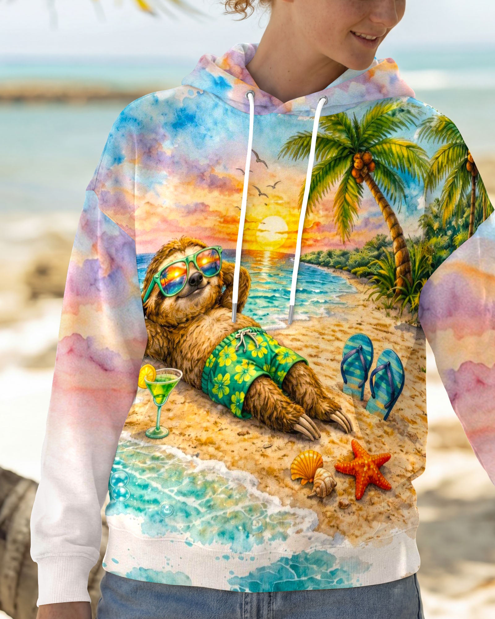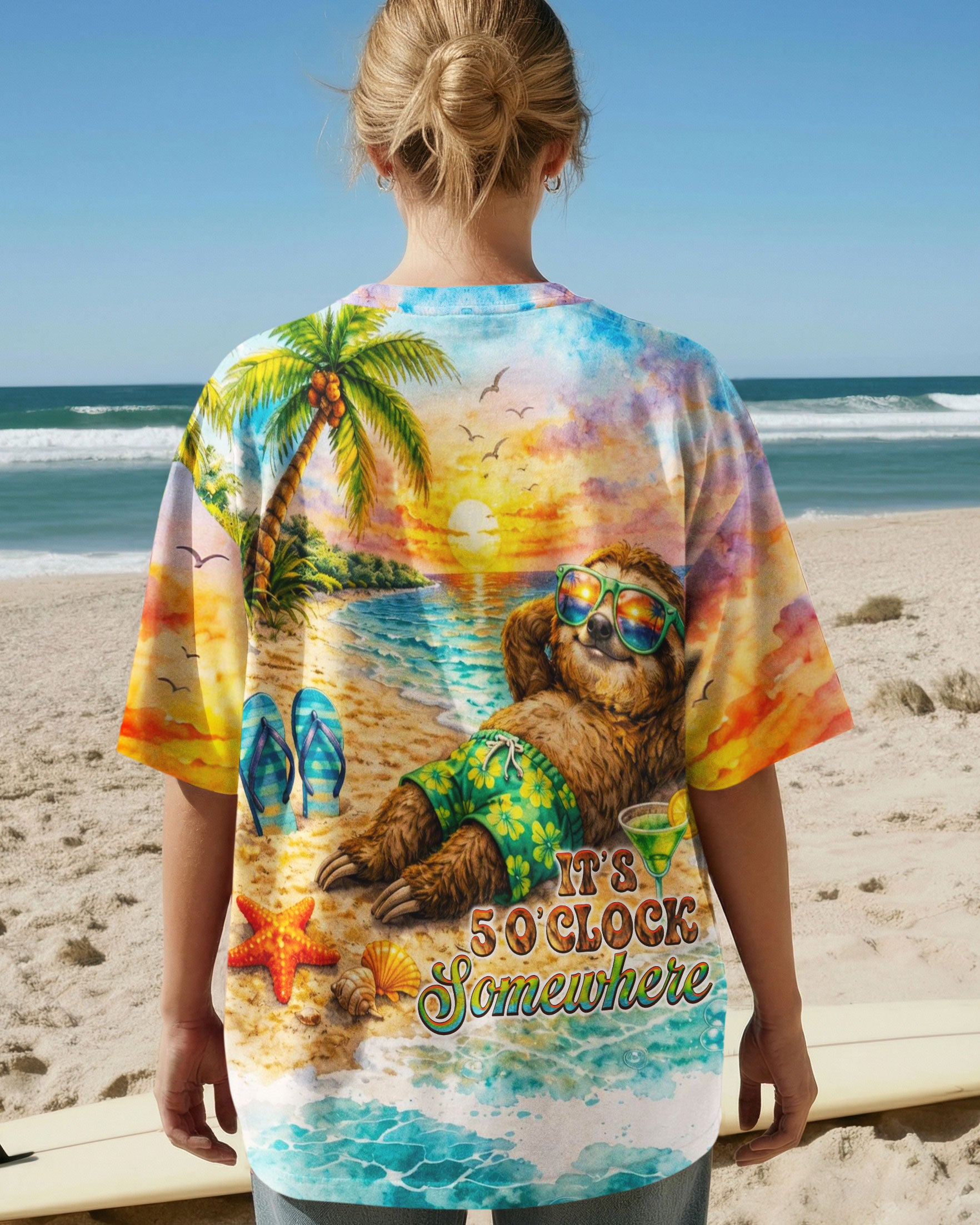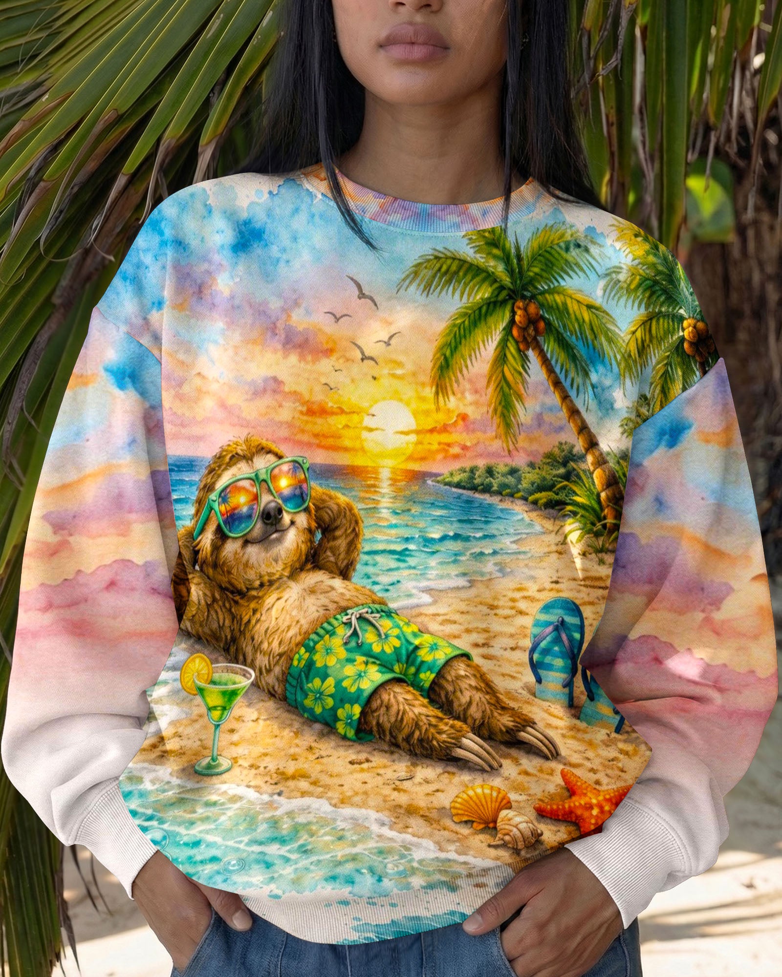Kick back and embrace the good life with this laid-back sloth design that captures pure beach vibes. Perfect for ocean lovers and anyone ready to slow down, laugh more, and let worries drift away. This cheerful all-over print celebrates relaxation, living in the moment, and finding joy in life's simple pleasures. Crafted from a premium cotton/polyester and spandex blend, this shirt delivers comfort and durability. Each panel is individually printed, cut, and sewn using advanced 3D dye-sublimation printing for vibrant, high-definition color that stays sharp wash after wash. The result is a wearable work of art with flawless graphics and perfectly finished edges that stand out wherever you go.