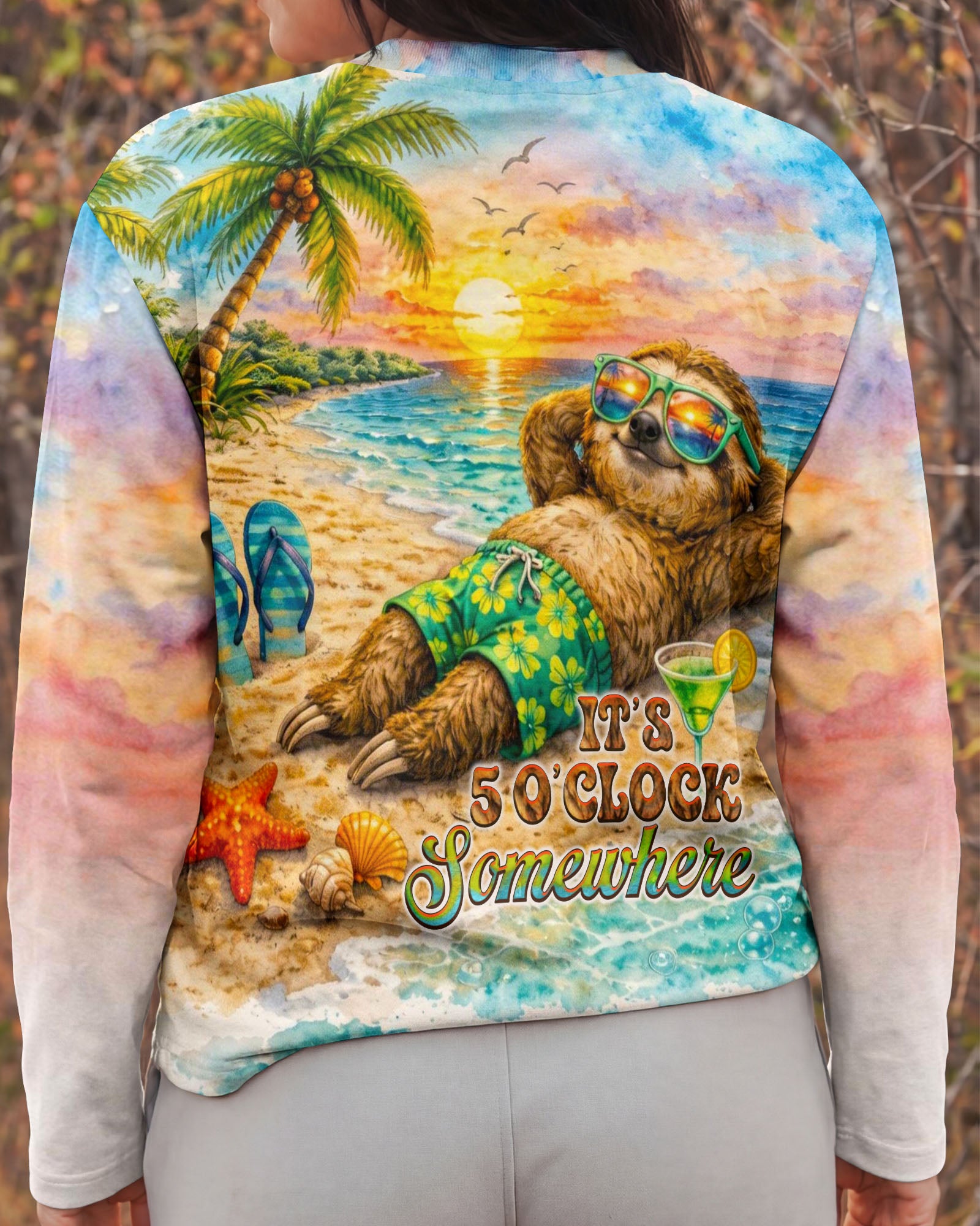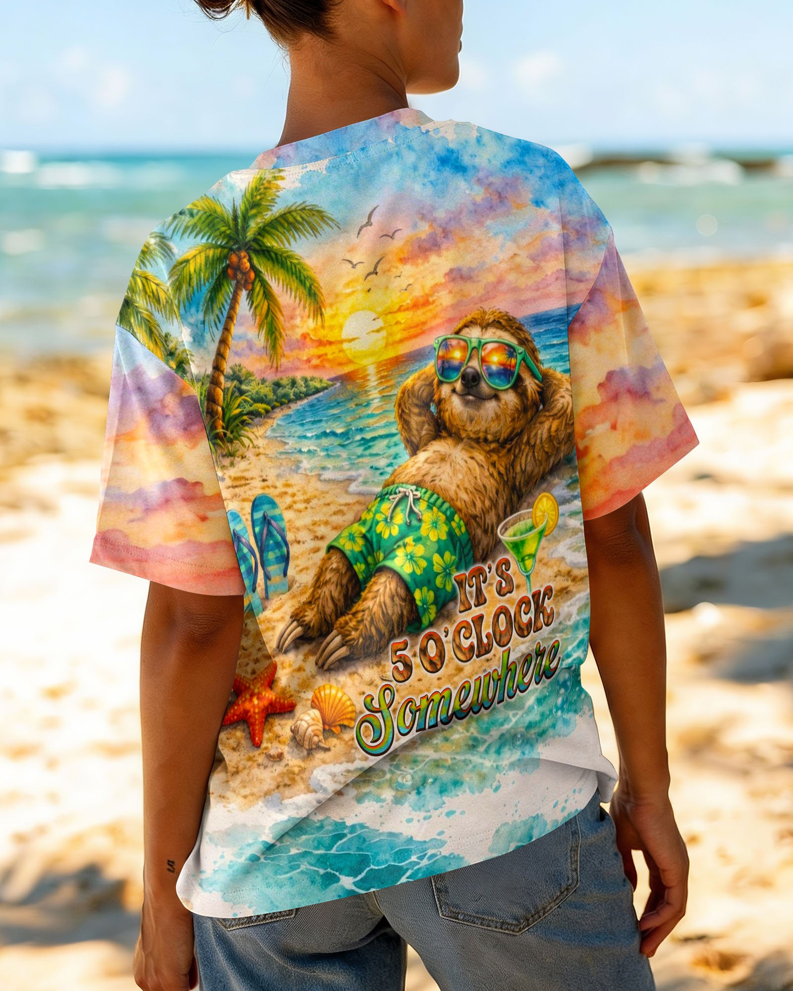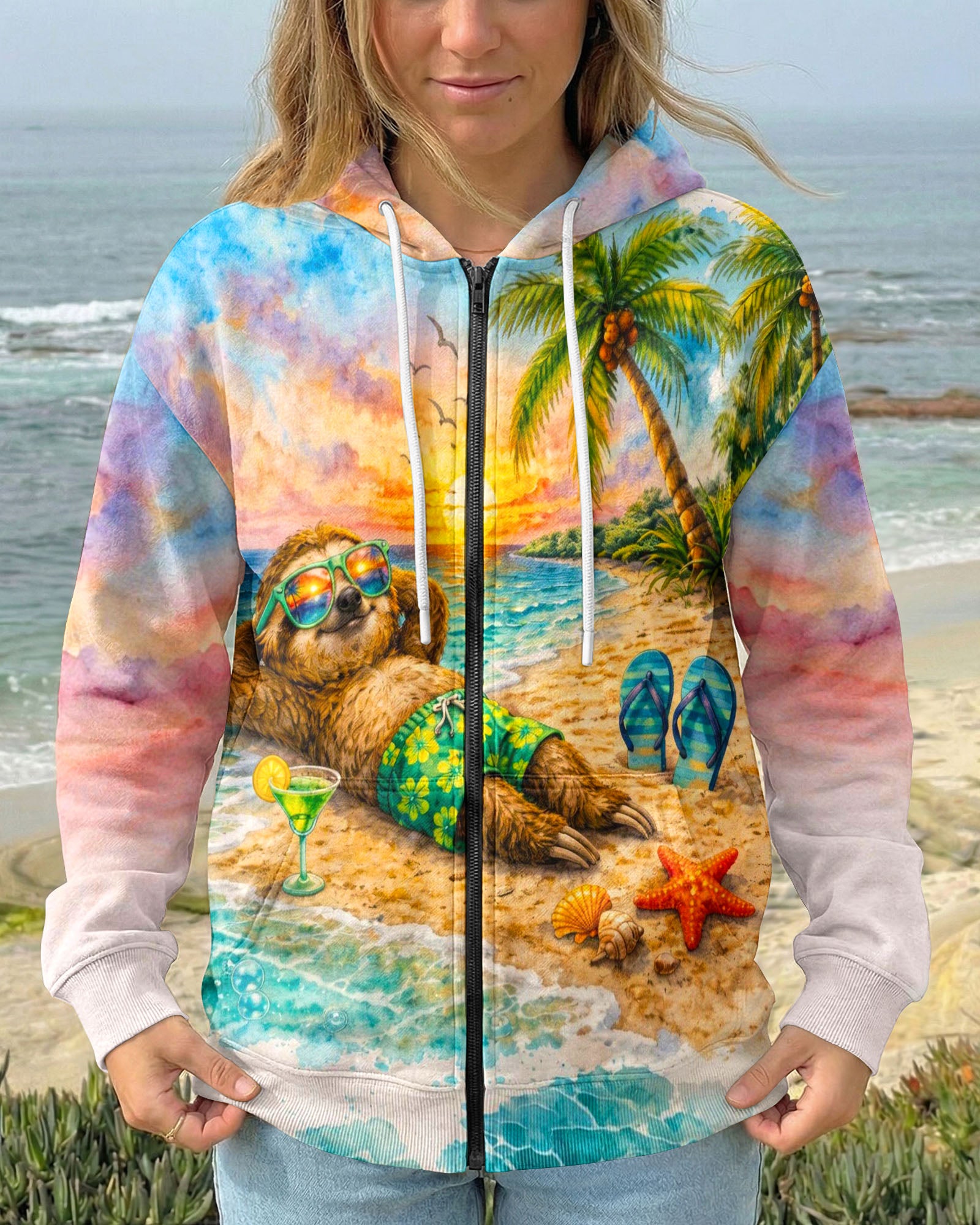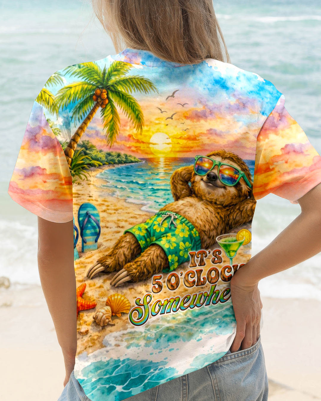 Kick back and embrace the good life with this laid-back sloth design that captures pure beach vibes. Perfect for ocean lovers and anyone ready to slow down, laugh more, and let worries drift away. This cheerful all-over print celebrates relaxation, living in the moment, and finding joy in life's simple pleasures. Crafted from a premium cotton/polyester and spandex blend, this shirt delivers comfort and durability. Each panel is individually printed, cut, and sewn using advanced 3D dye-sublimation printing for vibrant, high-definition color that stays sharp wash after wash. The result is a wearable work of art with flawless graphics and perfectly finished edges that stand out wherever you go.