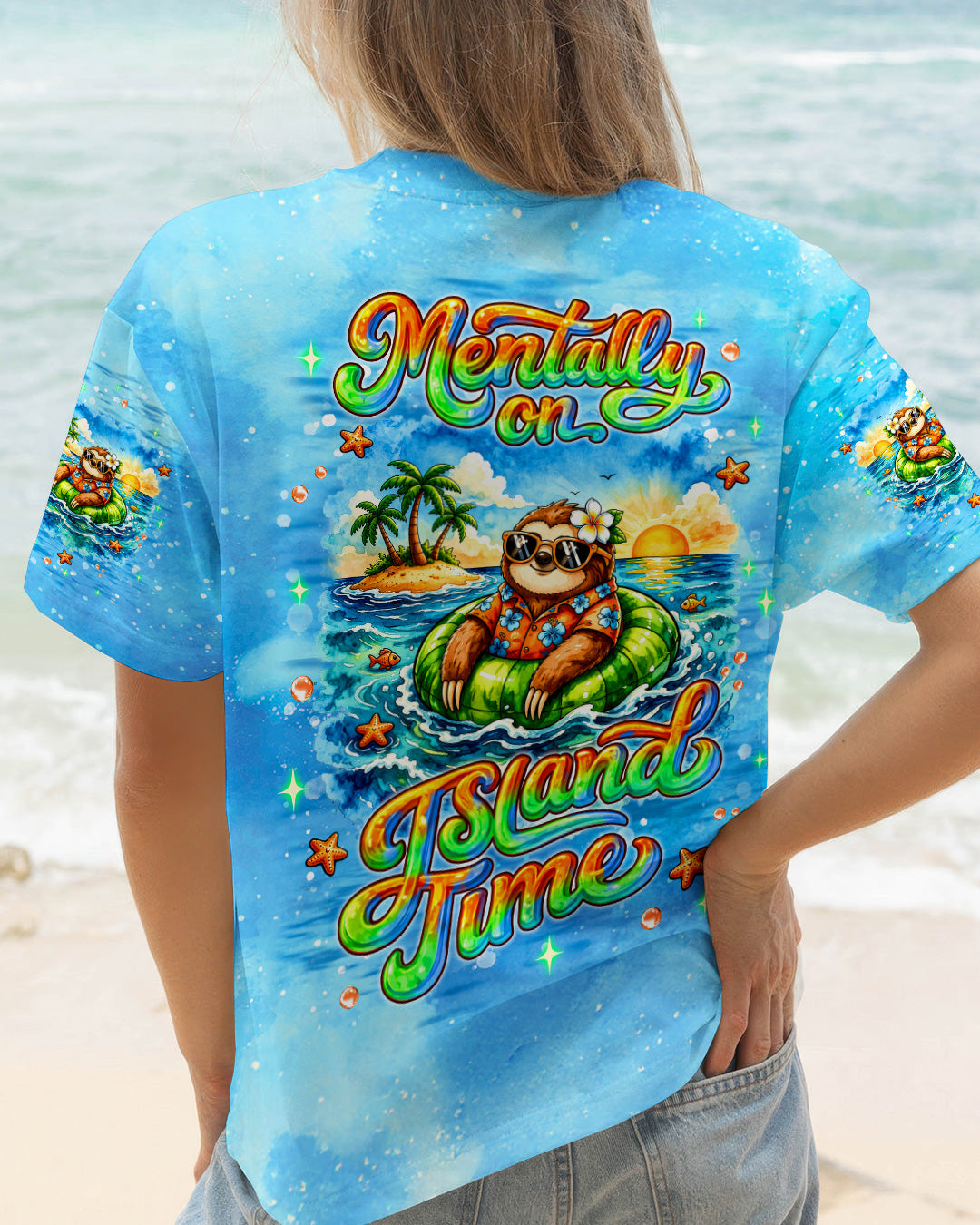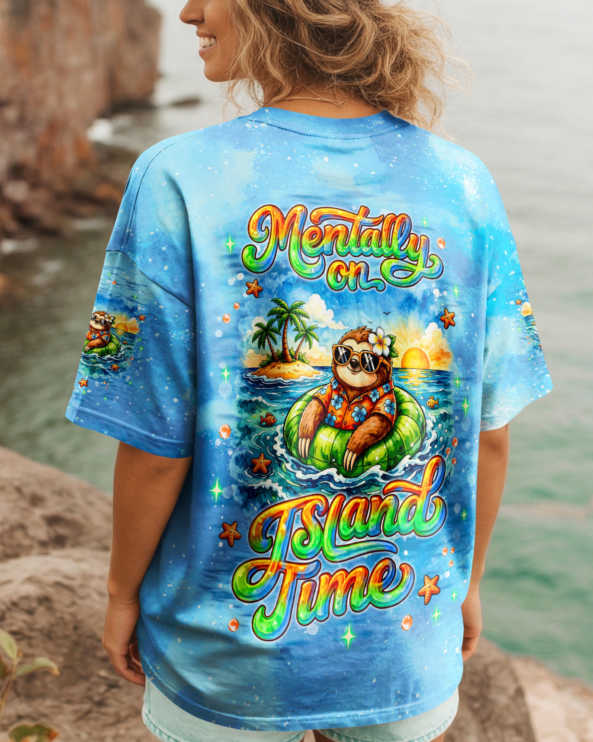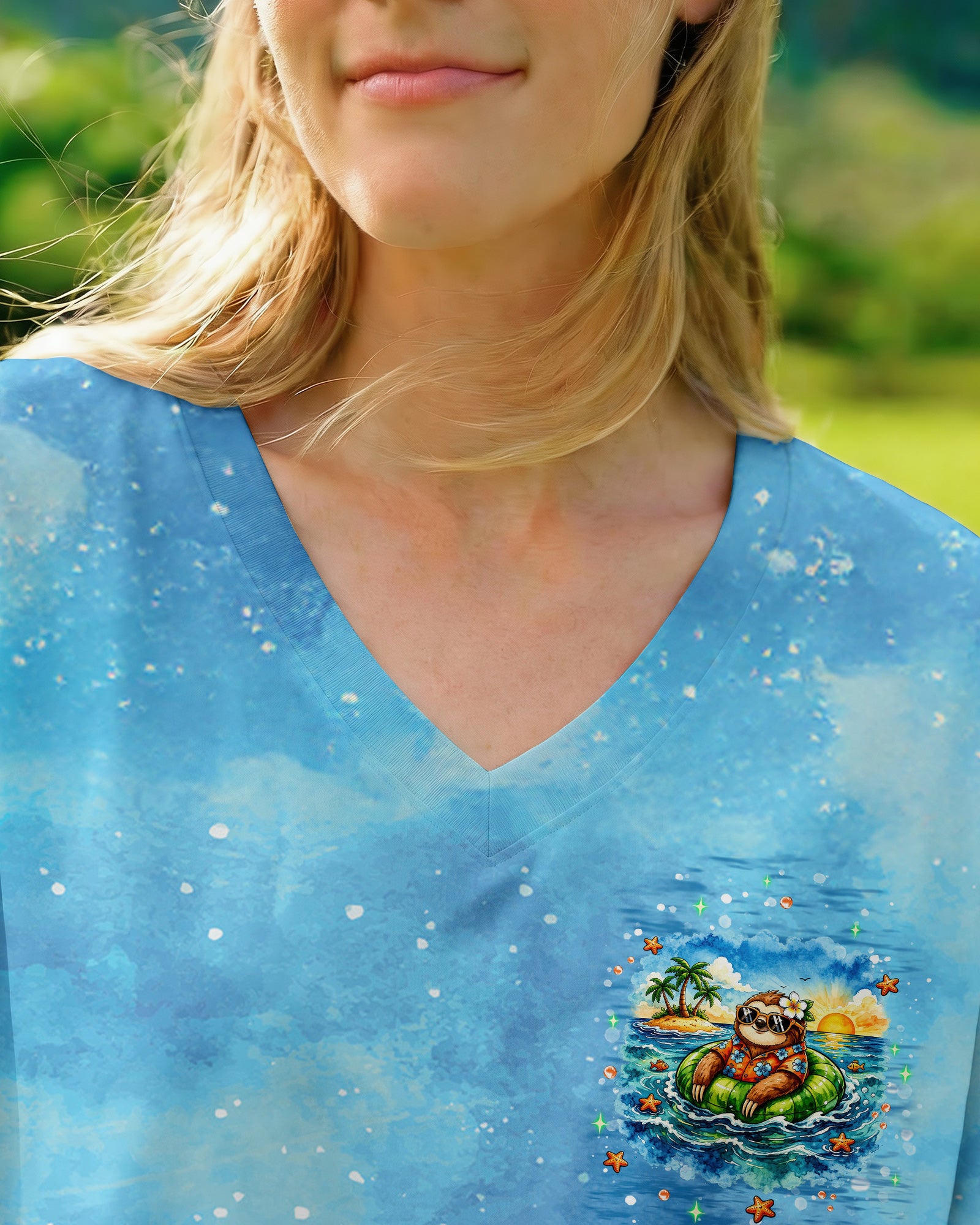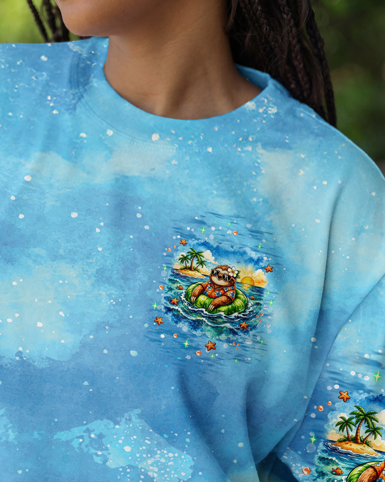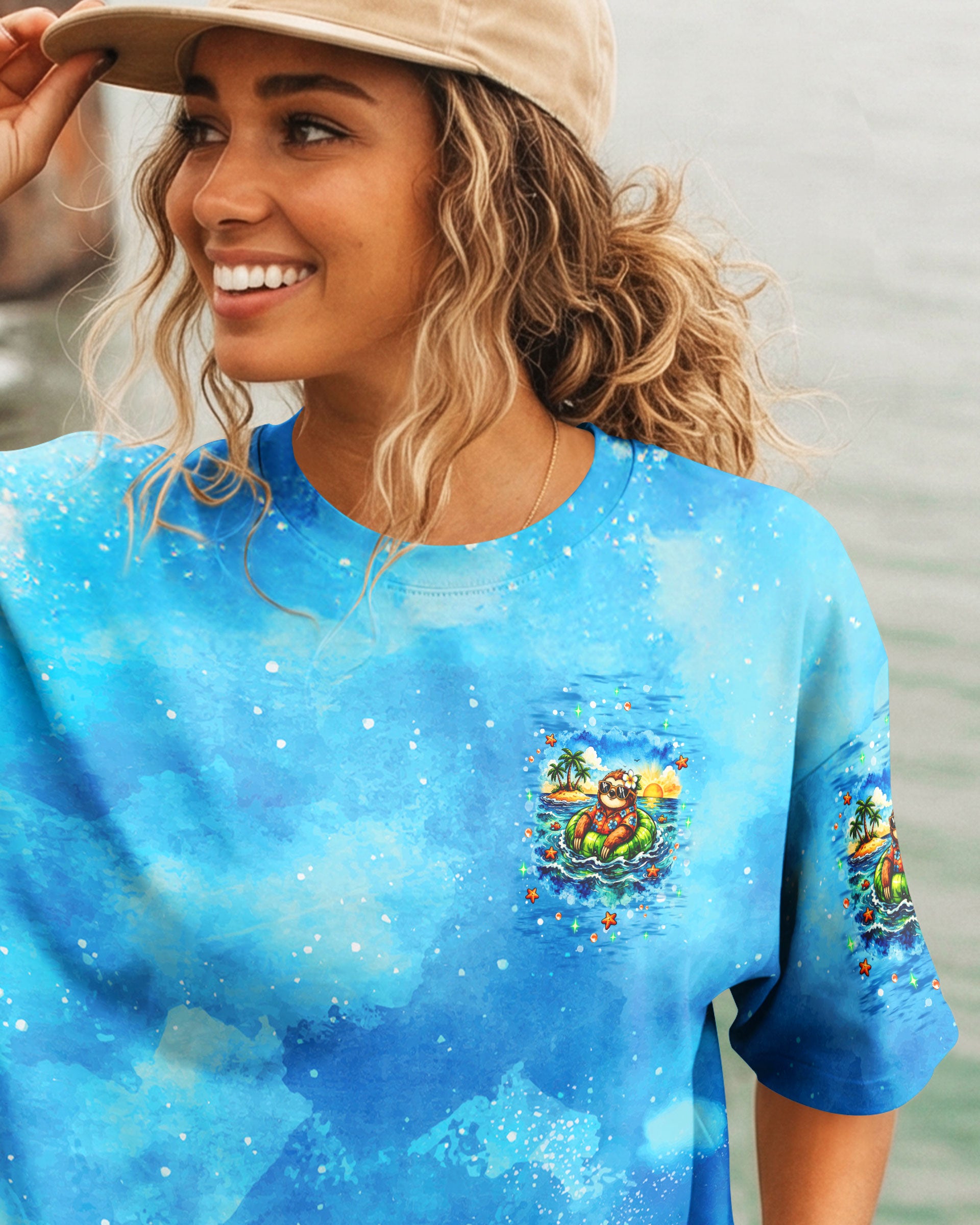 Floating into pure relaxation, a chill sloth drifts on the sea with carefree, sunny vibes. Ocean lovers will connect with the feeling of mentally escaping to a place where stress fades and peace takes over. The meaning reflects a mindset of slowing down, letting go, and choosing calm no matter where you are. A fun and uplifting design that invites you to unwind—bring it home and stay in vacation mode every day. This all-over print shirt features vibrant 3D dye-sublimation printing that brings the design to life with rich, detailed color across every panel. Crafted from a premium cotton/polyester and spandex blend, it delivers comfort and durability for everyday wear. Each panel is individually printed, cut, and sewn for a flawless graphic with sharp, high-definition results. Perfect for those who want to carry island vibes wherever they go.
