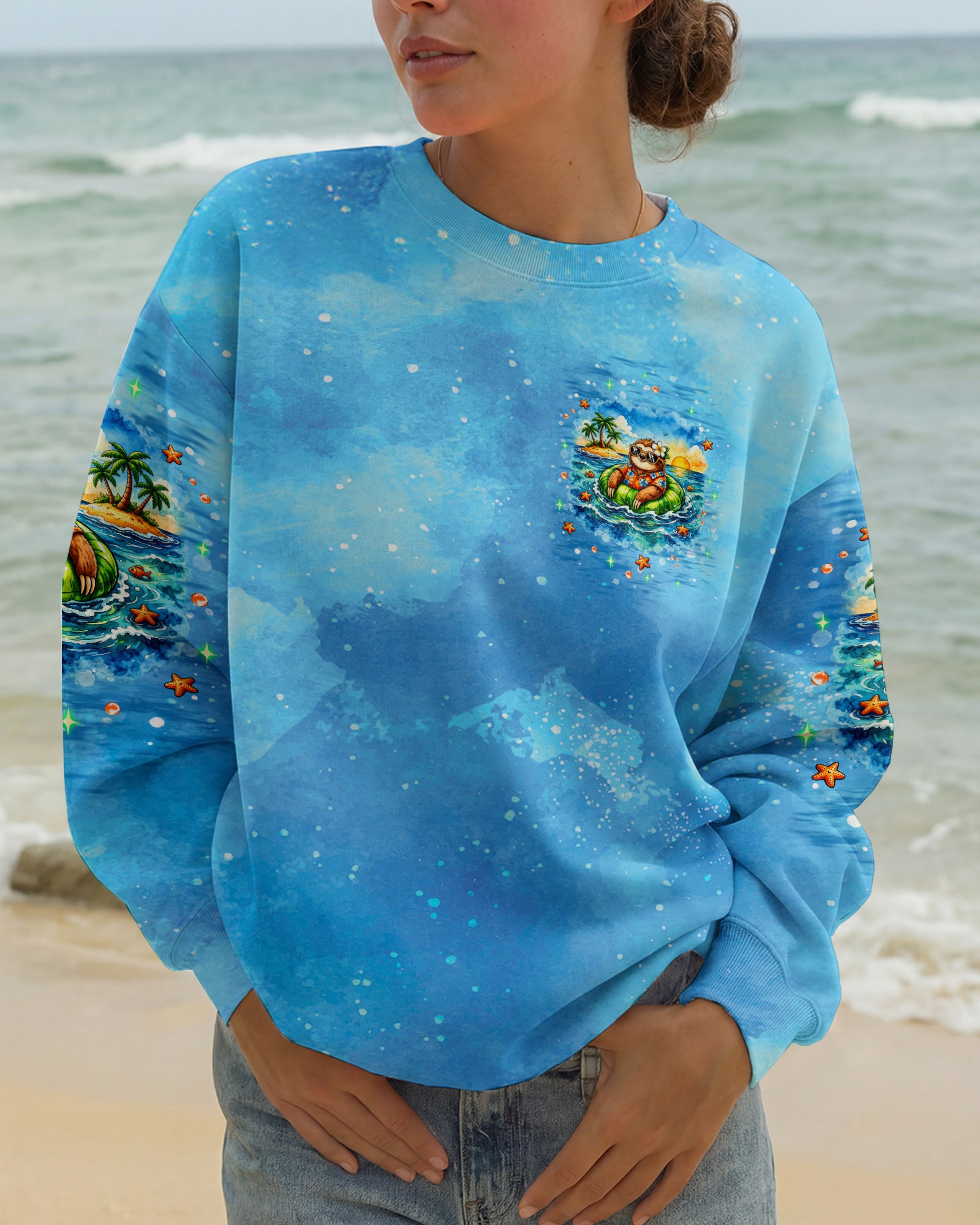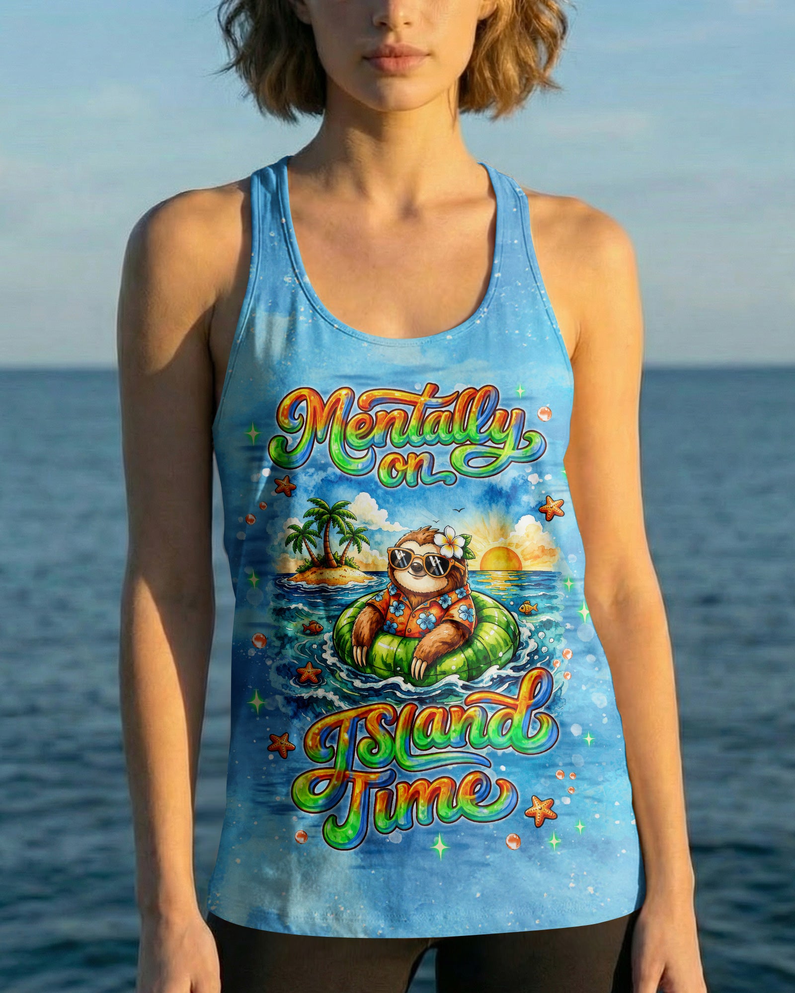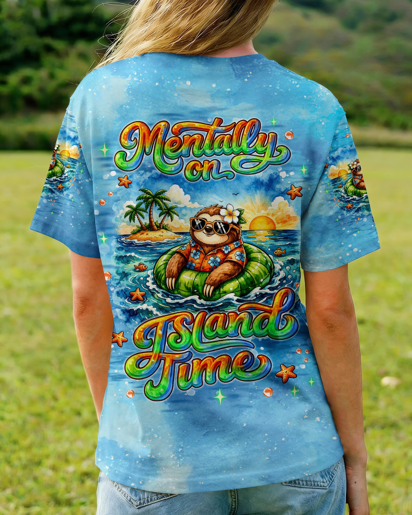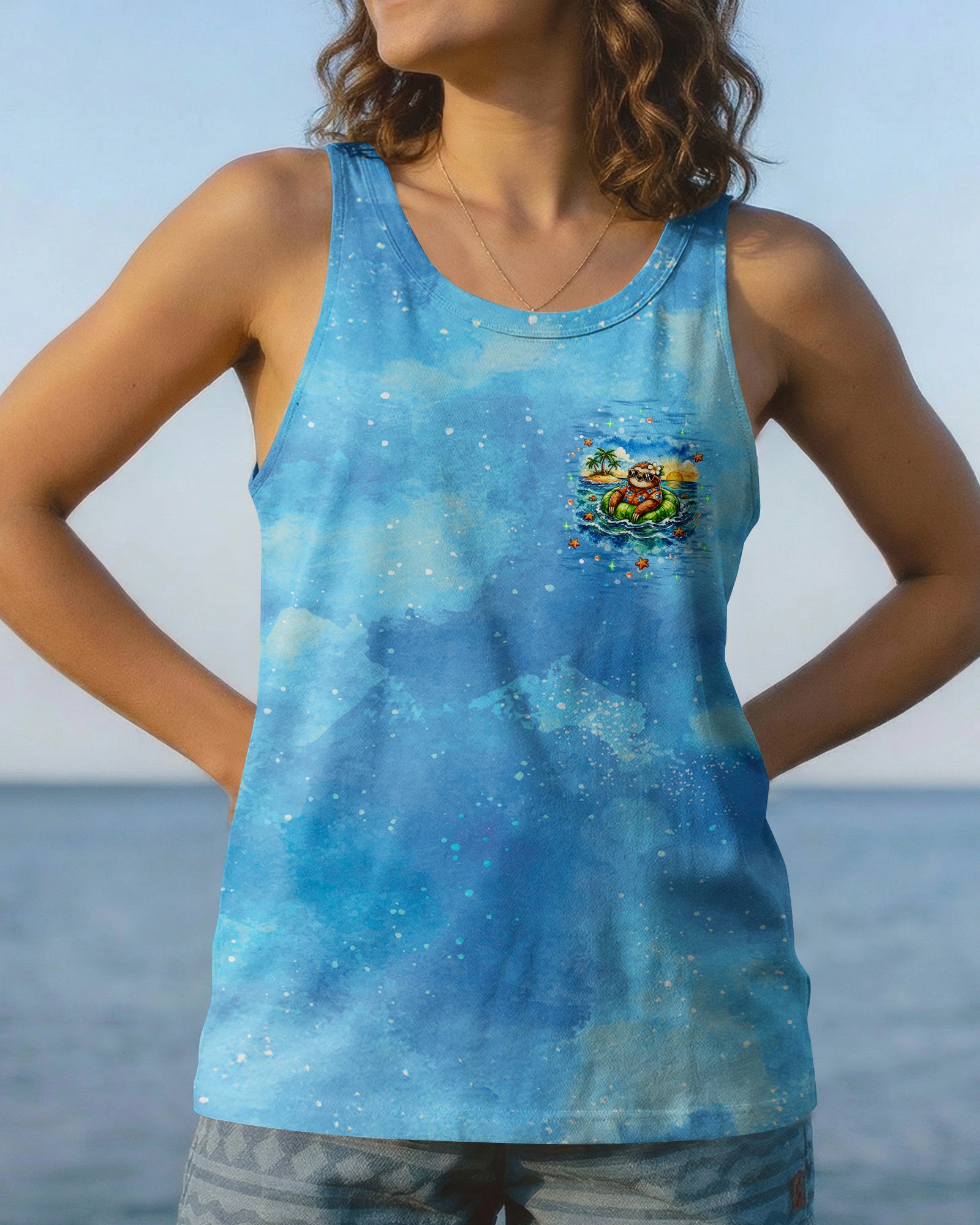 Floating into pure relaxation, a chill sloth drifts on the sea with carefree, sunny vibes. Ocean lovers will connect with the feeling of mentally escaping to a place where stress fades and peace takes over. The meaning reflects a mindset of slowing down, letting go, and choosing calm no matter where you are. A fun and uplifting design that invites you to unwind—bring it home and stay in vacation mode every day. This all-over print shirt features vibrant 3D dye-sublimation printing that brings the design to life with rich, detailed color across every panel. Crafted from a premium cotton/polyester and spandex blend, it delivers comfort and durability for everyday wear. Each panel is individually printed, cut, and sewn for a flawless graphic with sharp, high-definition results. Perfect for those who want to carry island vibes wherever they go.