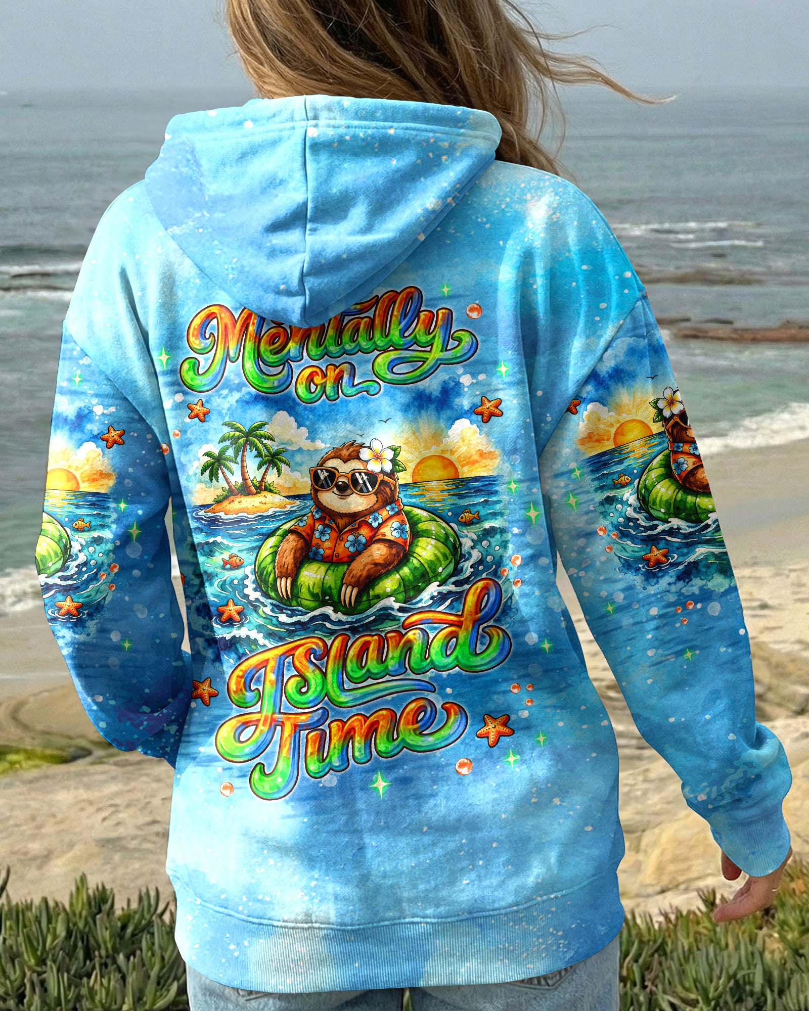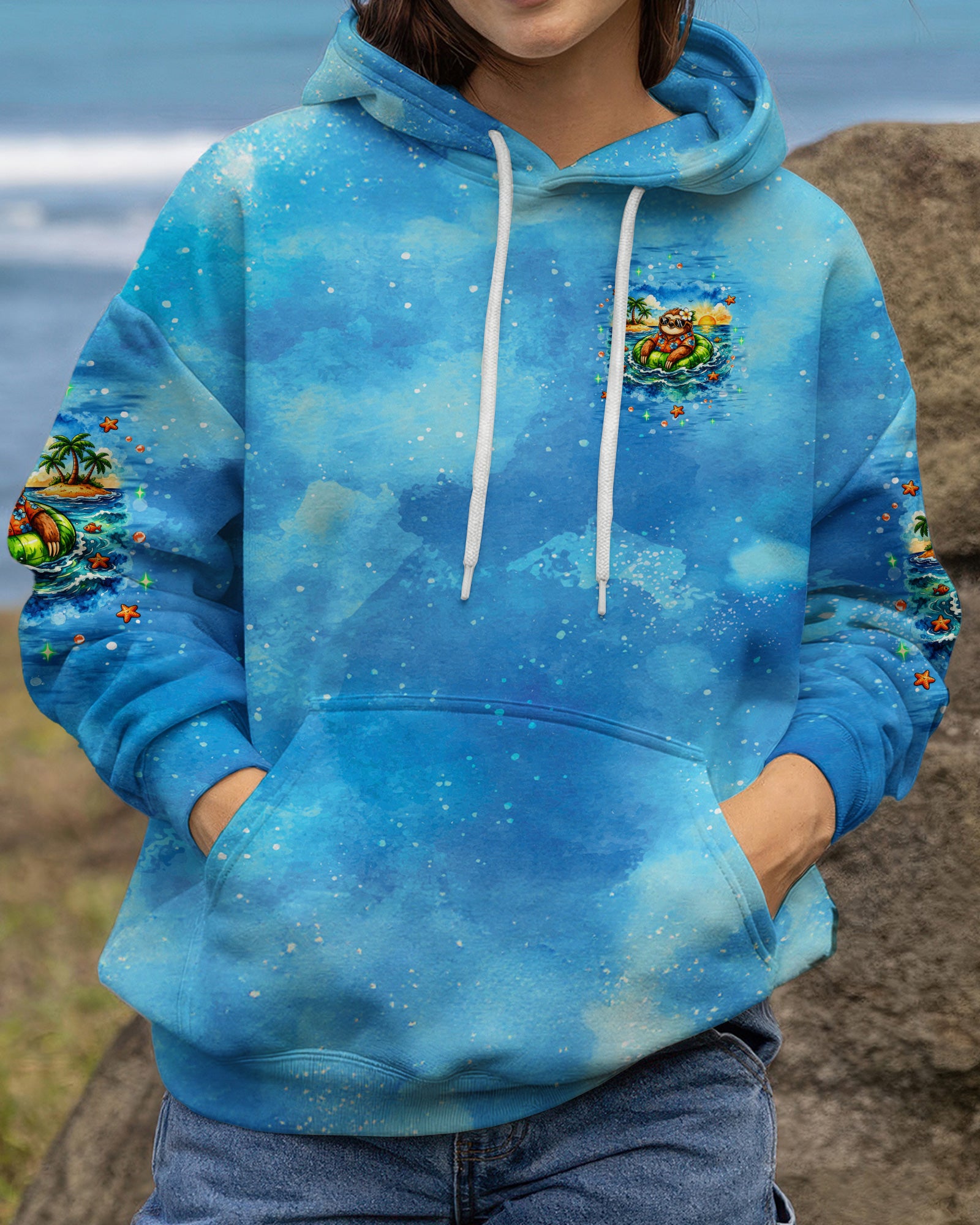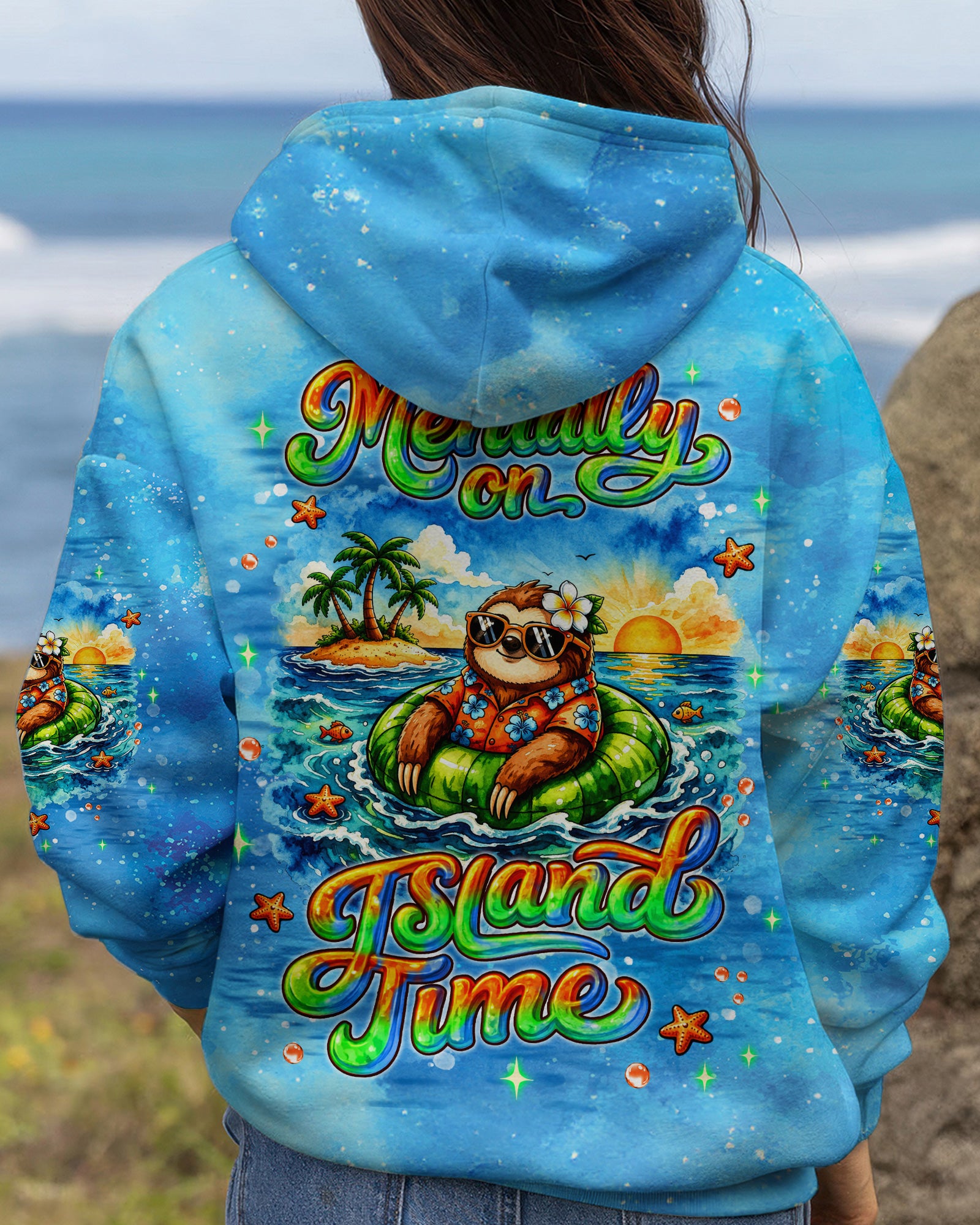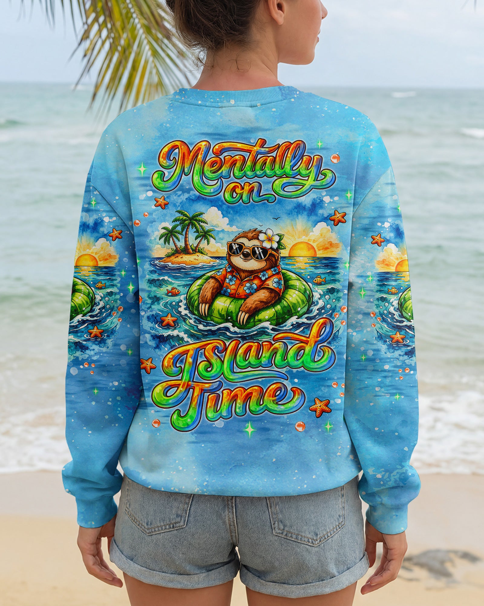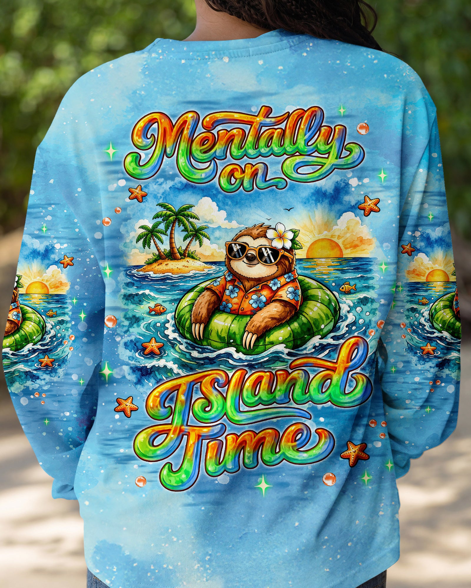 Floating into pure relaxation, a chill sloth drifts on the sea with carefree, sunny vibes. Ocean lovers will connect with the feeling of mentally escaping to a place where stress fades and peace takes over. The meaning reflects a mindset of slowing down, letting go, and choosing calm no matter where you are. A fun and uplifting design that invites you to unwind—bring it home and stay in vacation mode every day. This all-over print shirt features vibrant 3D dye-sublimation printing that brings the design to life with rich, detailed color across every panel. Crafted from a premium cotton/polyester and spandex blend, it delivers comfort and durability for everyday wear. Each panel is individually printed, cut, and sewn for a flawless graphic with sharp, high-definition results. Perfect for those who want to carry island vibes wherever they go.