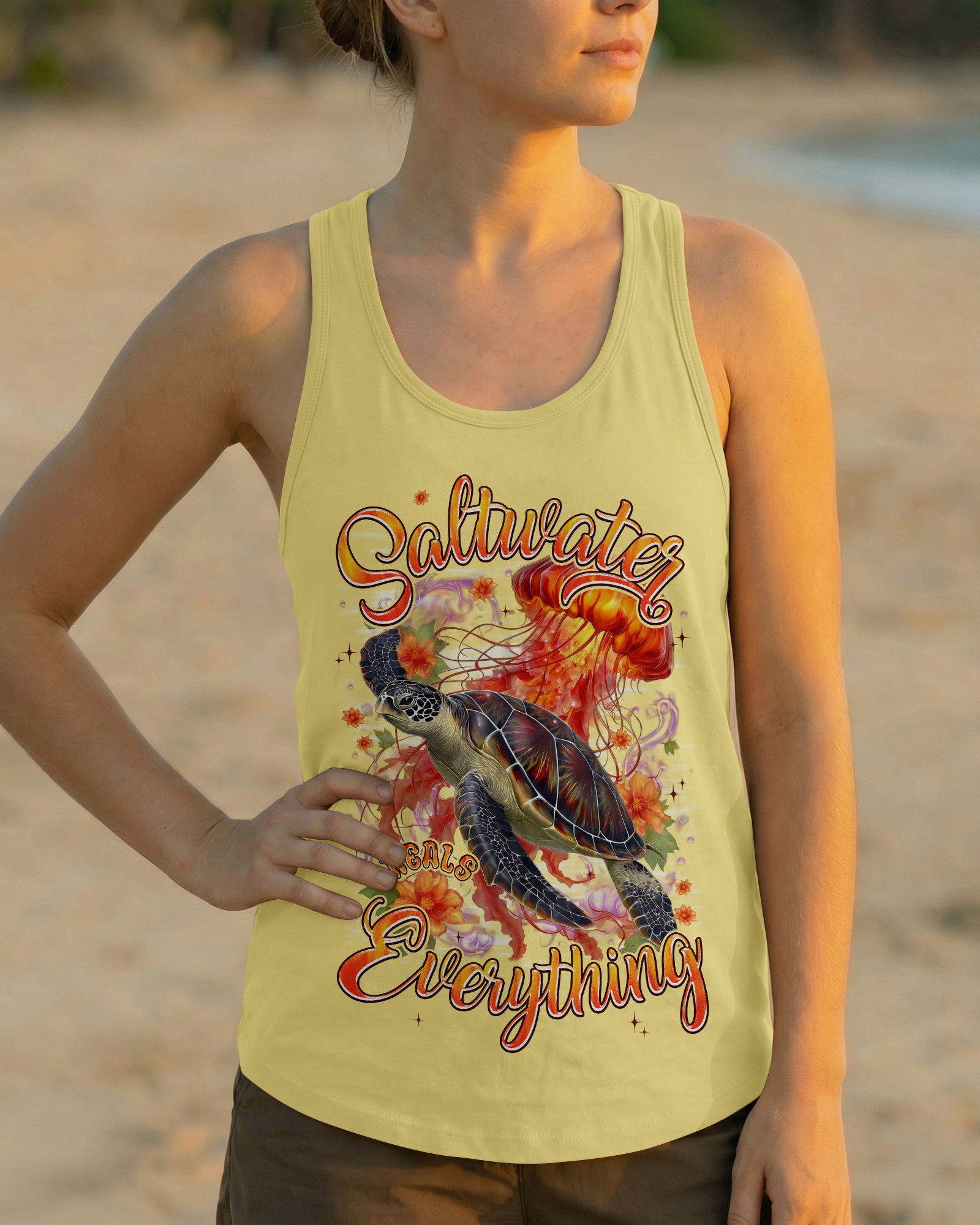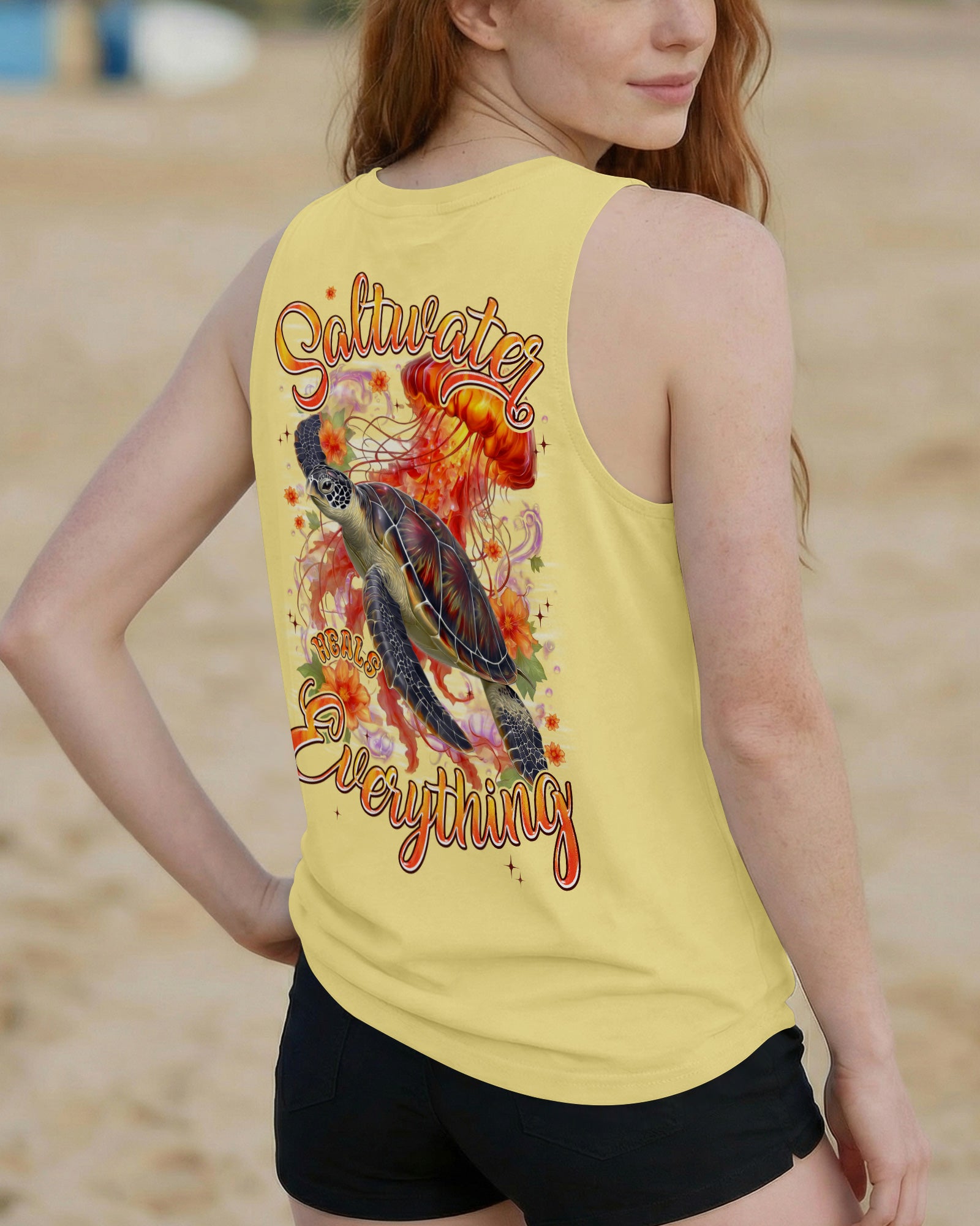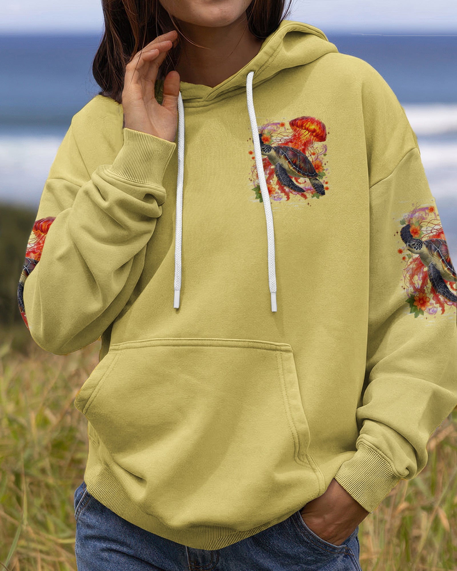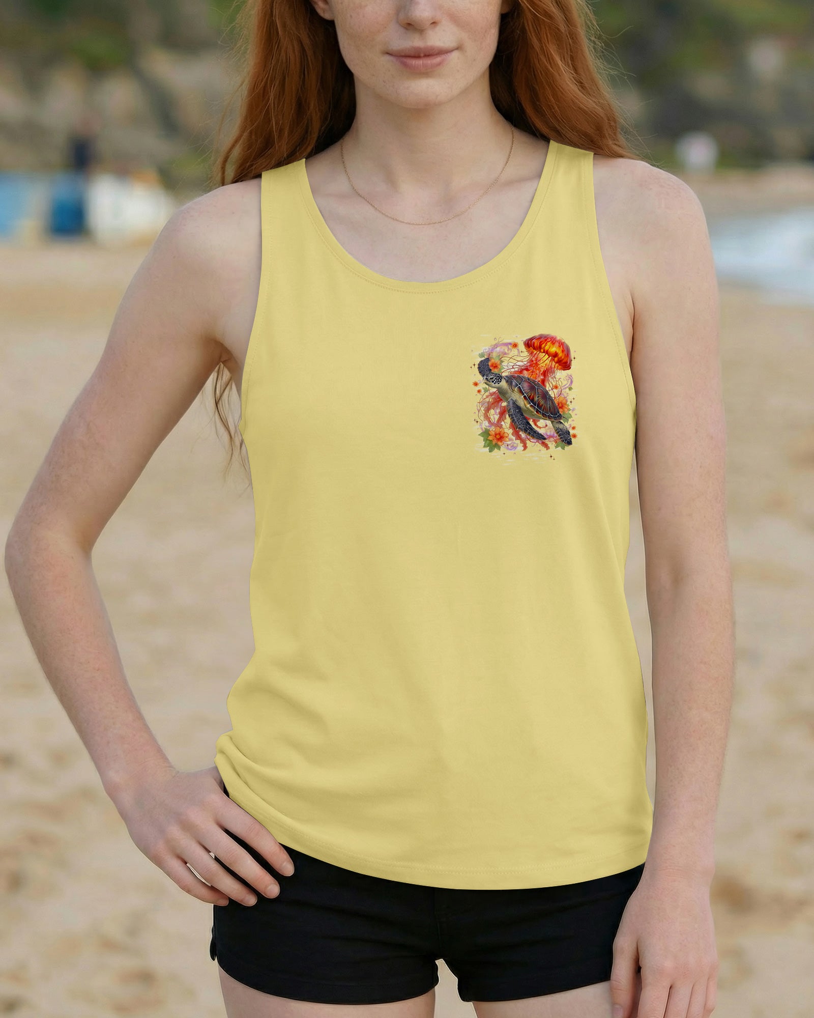 Drift into serenity with this all-over print shirt, where a gentle sea turtle and glowing jellyfish dance gracefully among blooming flowers. Each design element carries meaning—the turtle symbolizes steady healing, the jellyfish embodies softness and flow, while saltwater becomes a soothing force washing away worries. Flowers whisper hope and renewal, reminding us that life blooms even in the deepest waters. Crafted from a premium cotton/polyester and spandex blend, this shirt combines comfort with durability. Advanced dye-sublimation printing delivers vibrant, high-definition color across every panel, with each piece individually printed, cut, and sewn for flawless results. The intricate design showcases delicate color combinations and perfect edges—a wearable work of art that turns heads wherever you go. In this tranquil ocean world, healing feels natural, gentle, and complete. 🌊🐢🪼