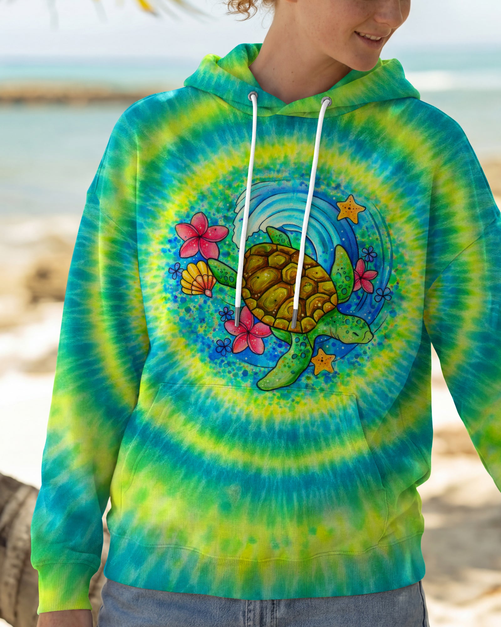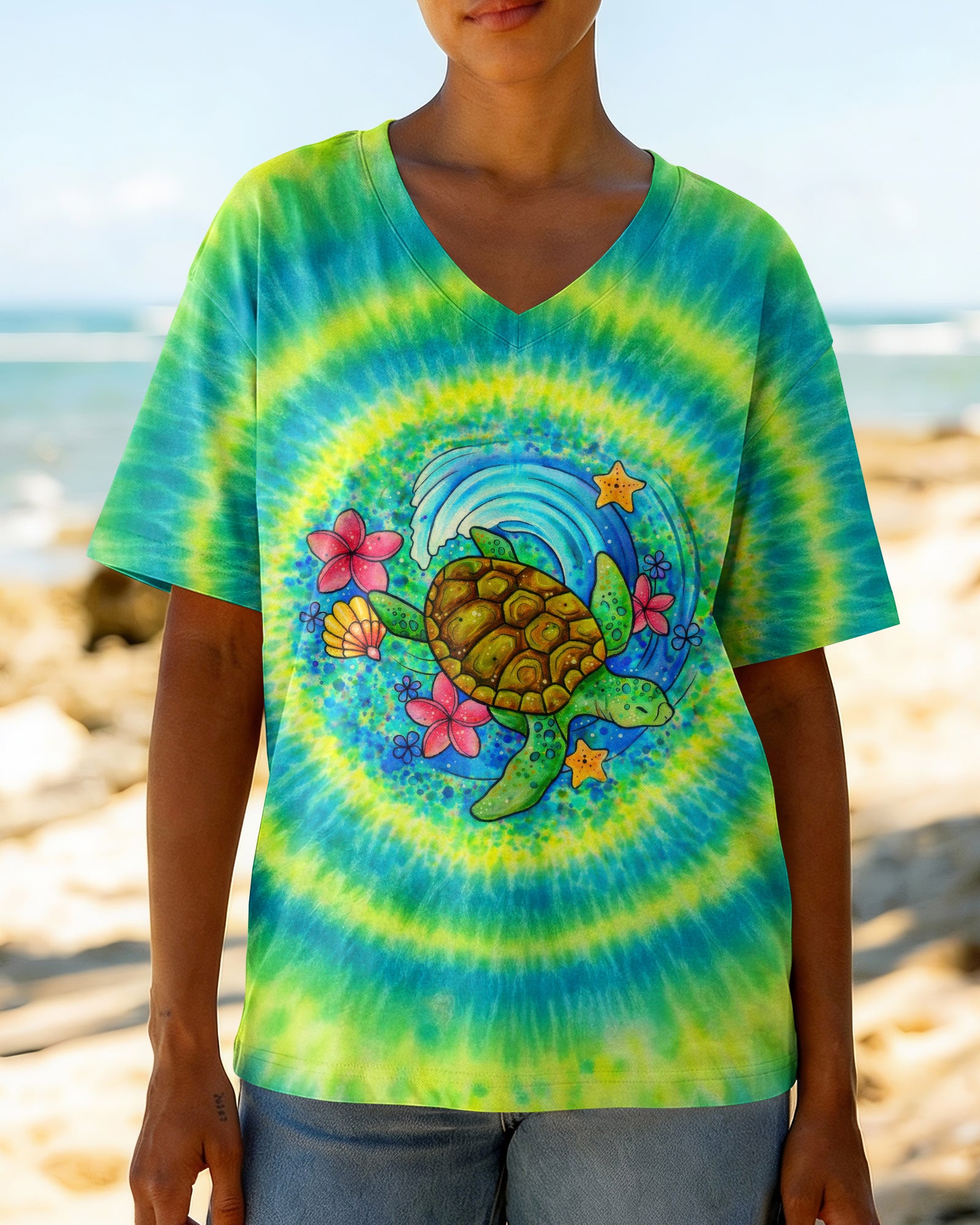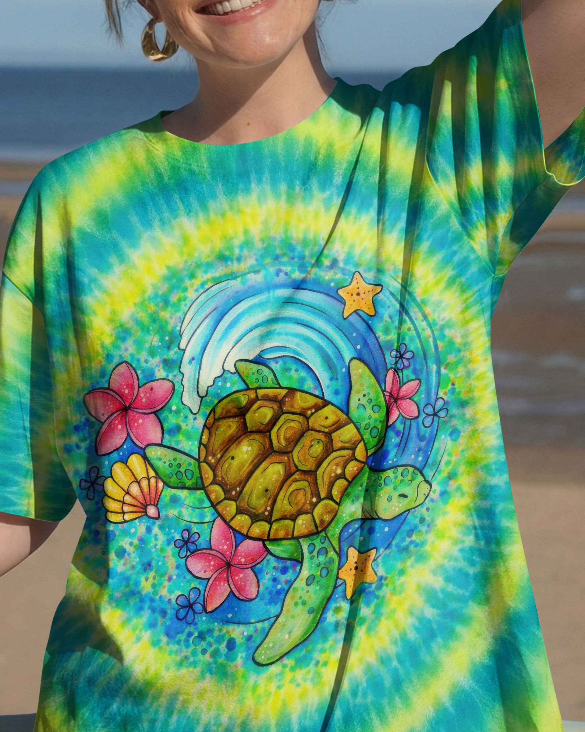 Dive into coastal tranquility with this stunning all-over print shirt featuring a vibrant sea turtle gliding through gentle ocean waves. Surrounded by colorful flowers and playful bubbles, the design captures the peaceful, uplifting energy of the seaside—a perfect reminder that saltwater heals everything. Crafted from a premium cotton/polyester and spandex blend, each panel is individually printed and sewn for flawless, high-definition graphics that showcase intricate details and vivid colors from every angle. Ideal for ocean lovers seeking wearable art that celebrates the restorative power of the sea.