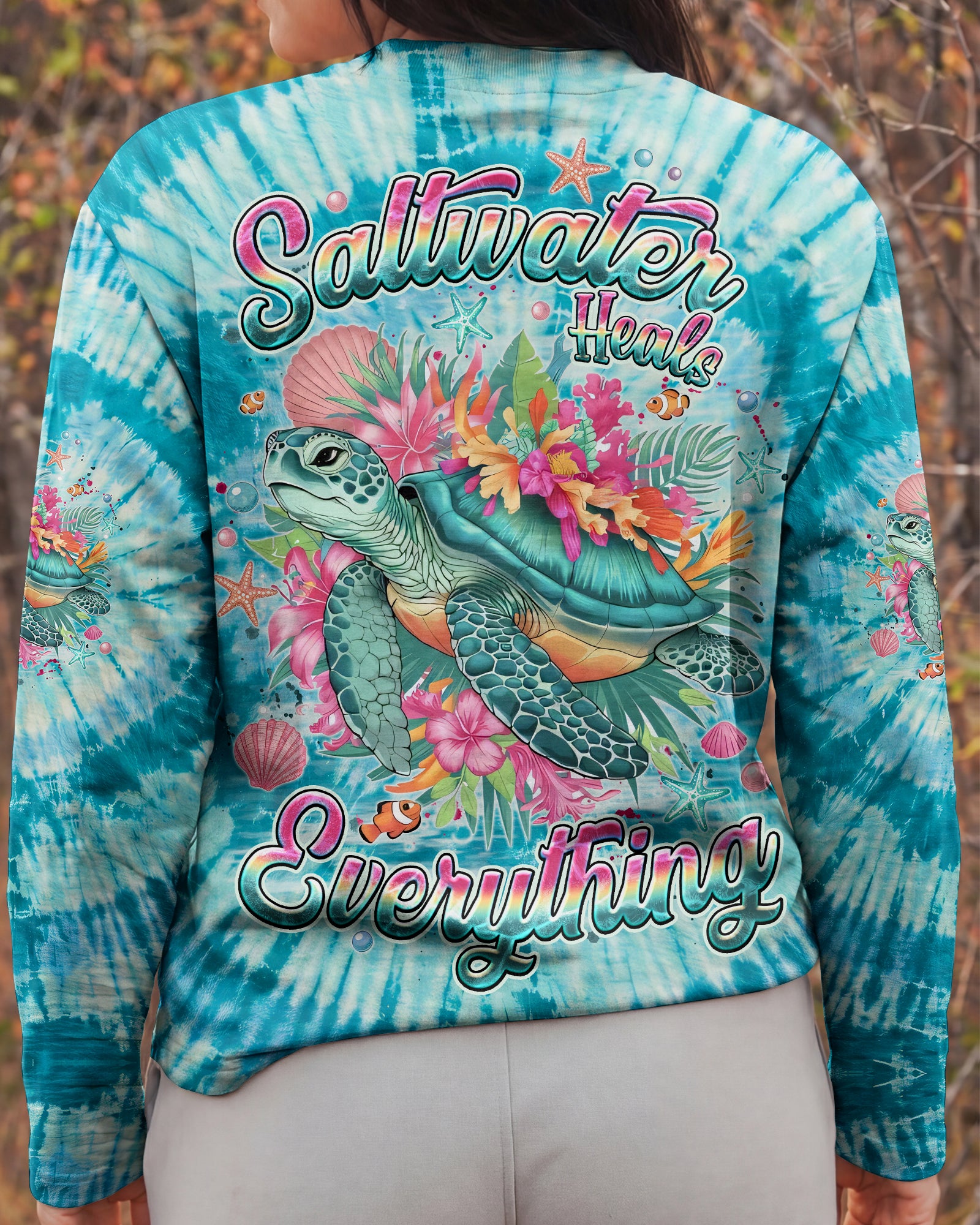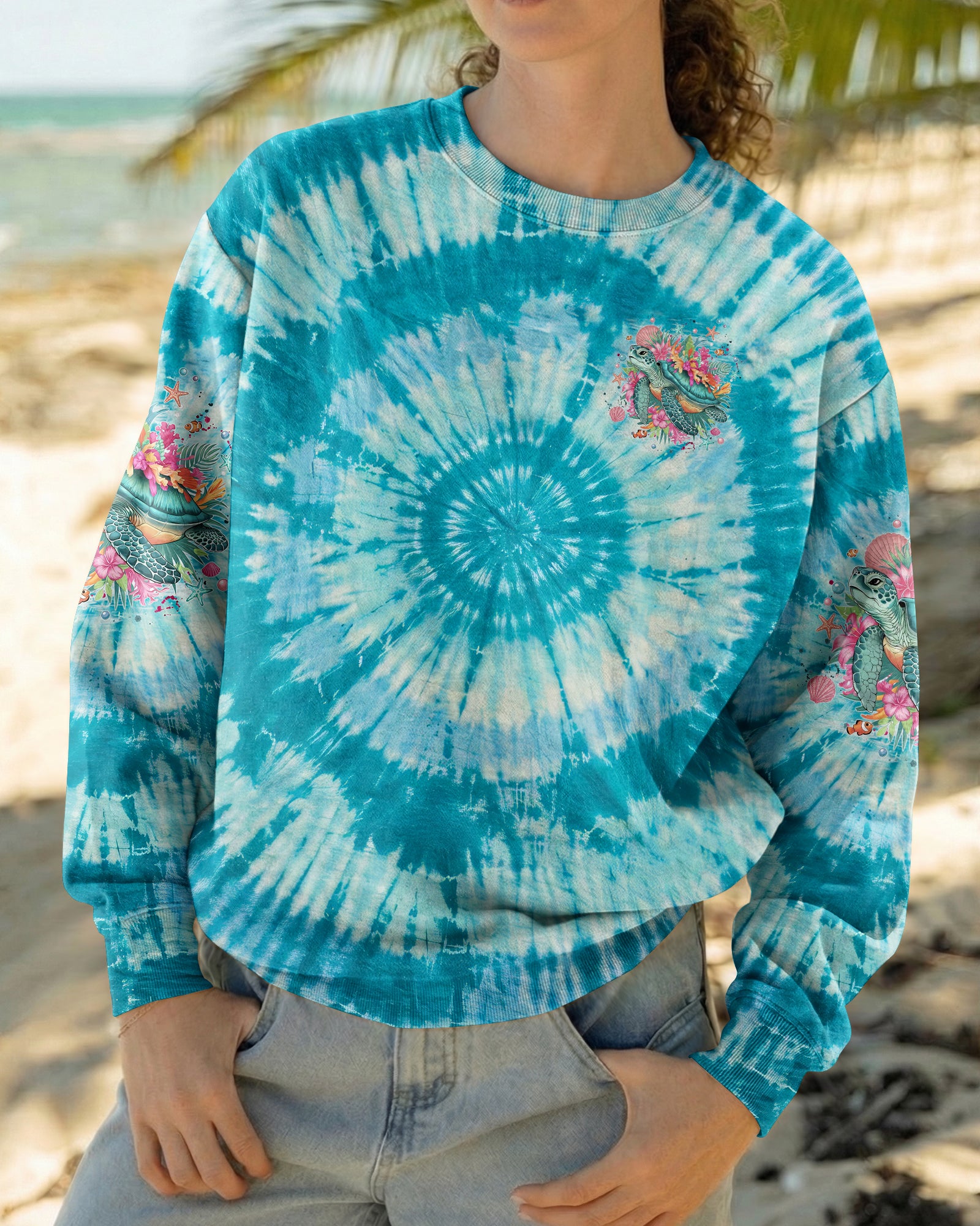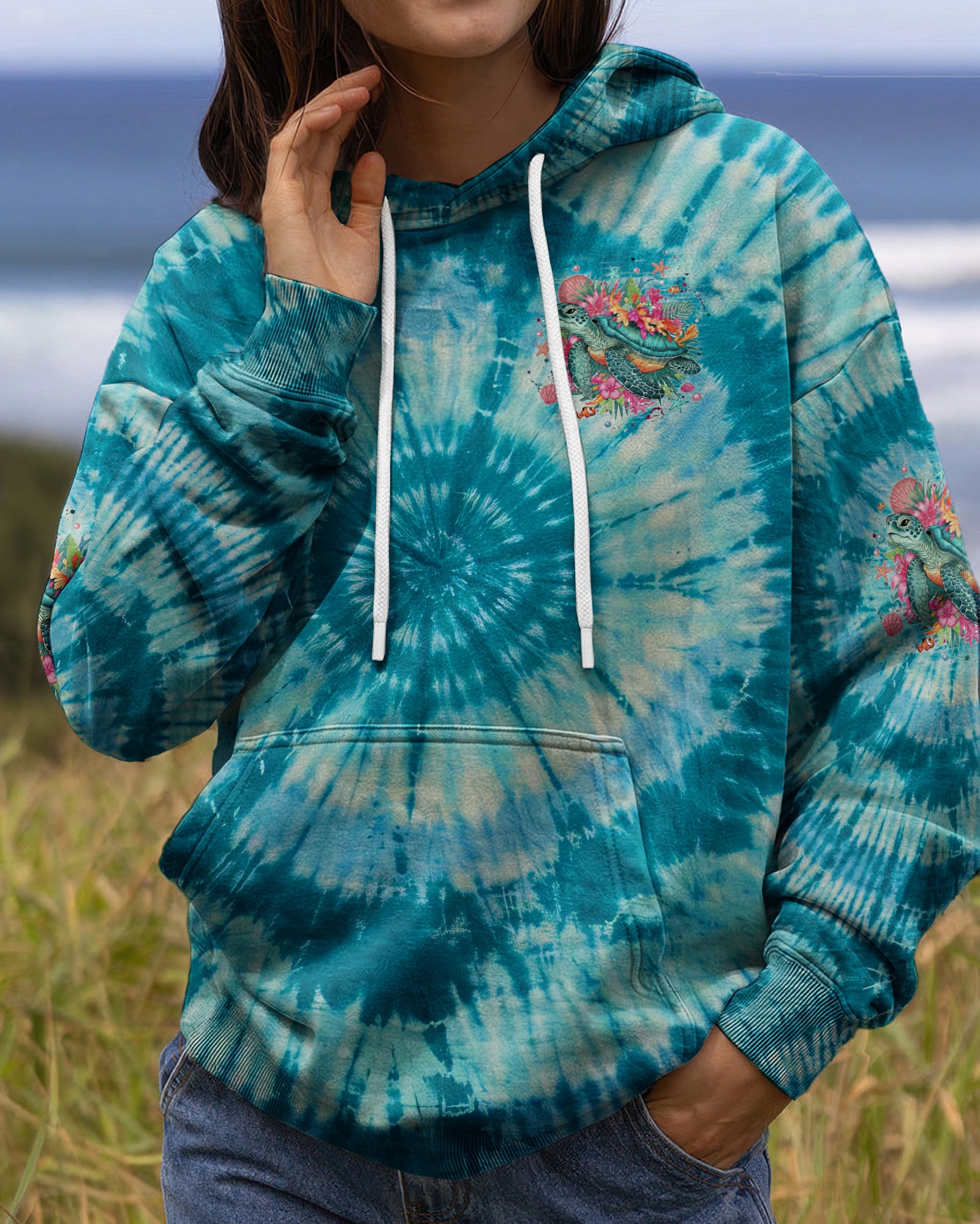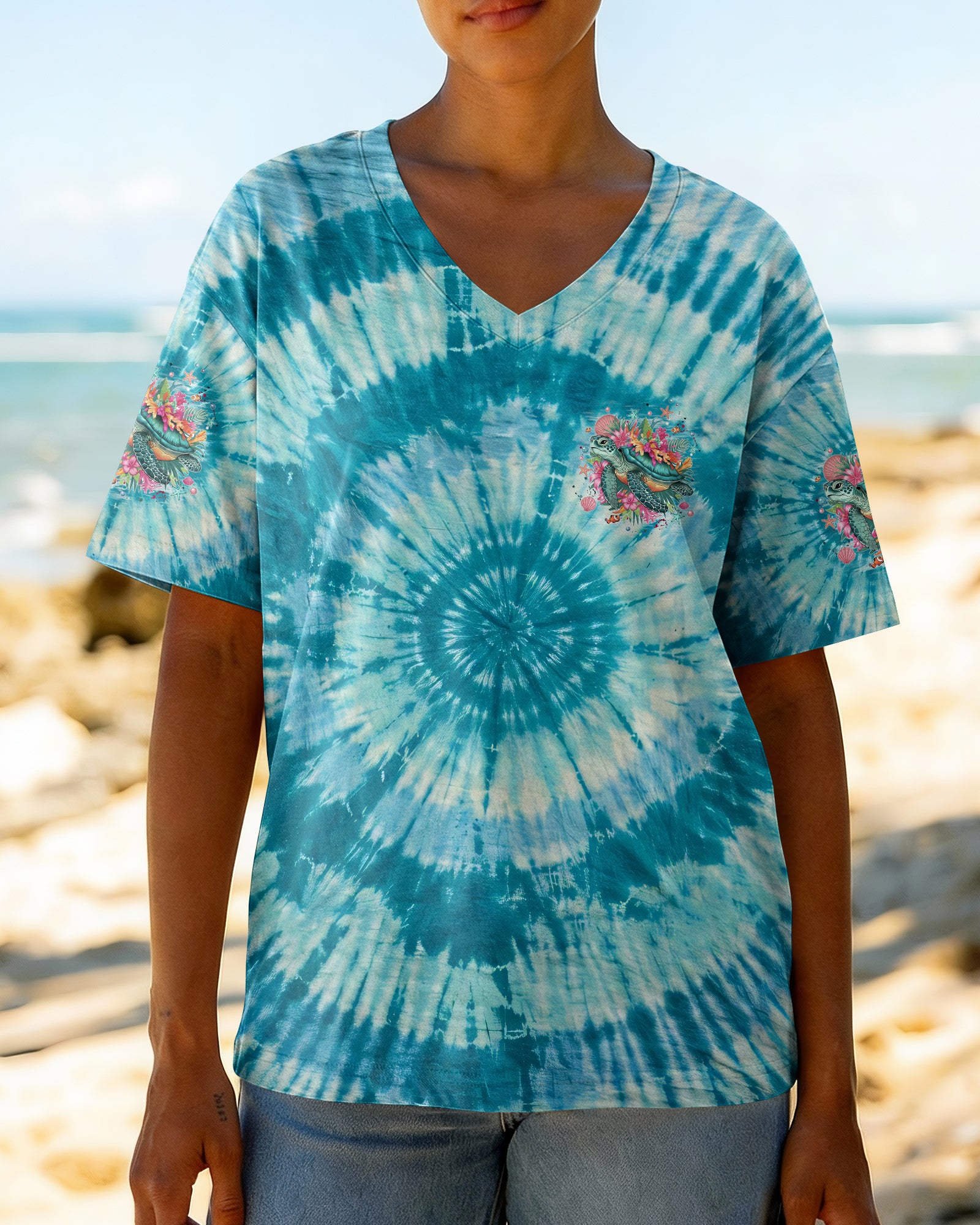 A serene escape wrapped around you—this all-over print shirt brings the healing power of the ocean to life. Aqua blue and teal tones create a calming backdrop where a graceful sea turtle glides among blooming flowers, symbolizing patience, wisdom, and gentle renewal. The cool palette evokes tranquility and depth, while soft florals remind us that growth continues even in quiet moments. Crafted from a premium cotton/polyester and spandex blend, this shirt combines comfort with durability. Advanced dye-sublimation printing delivers vibrant, high-definition color across every panel—each individually printed, cut, and sewn for a flawless finish. The result is wearable art that draws admiration wherever you go, with delicate color combinations and perfect edges that feel as refined as they look. Let saltwater healing wash away stress and renew your spirit with every wear. Balance and wholeness, one shirt at a time. 🌊🐢🌸