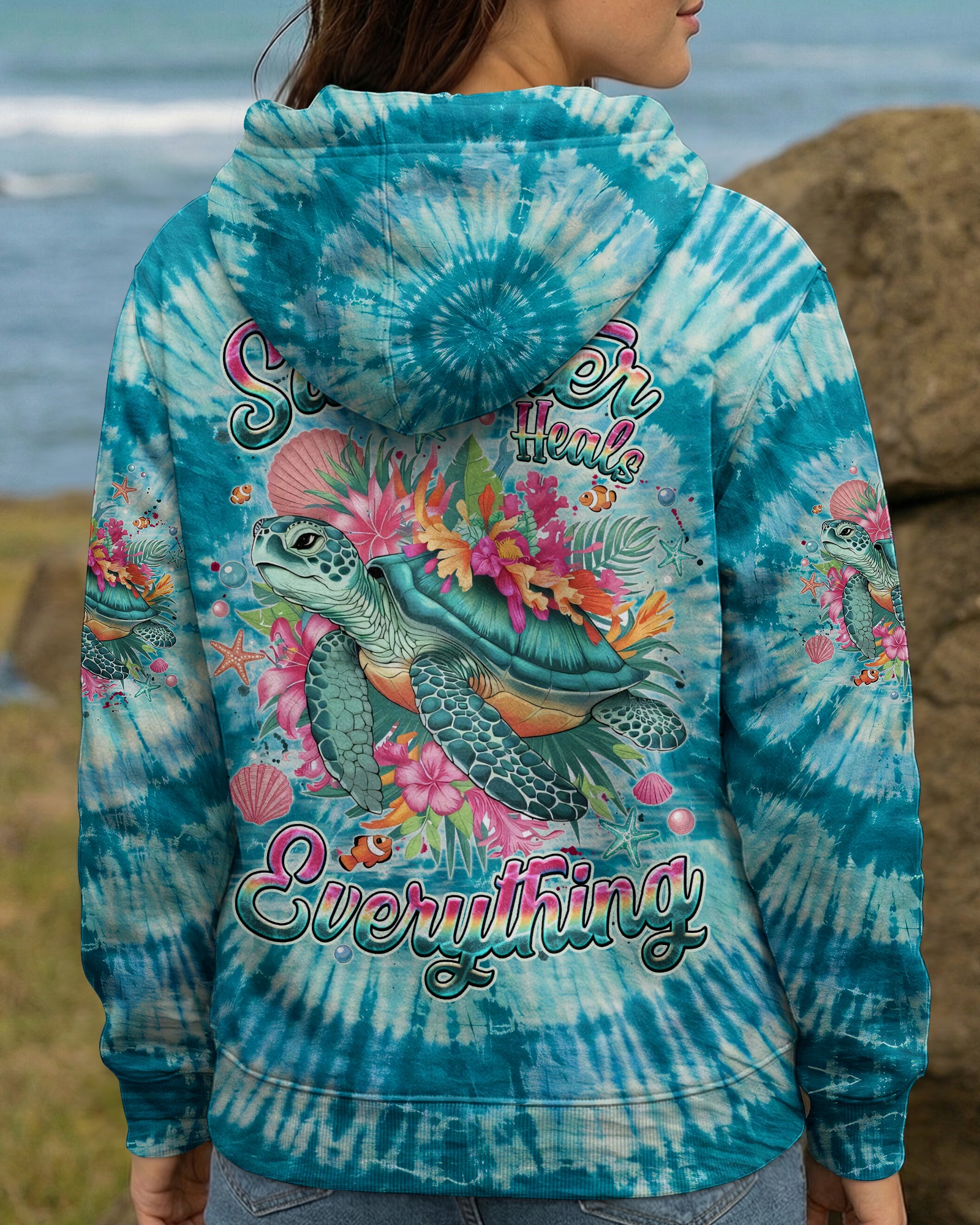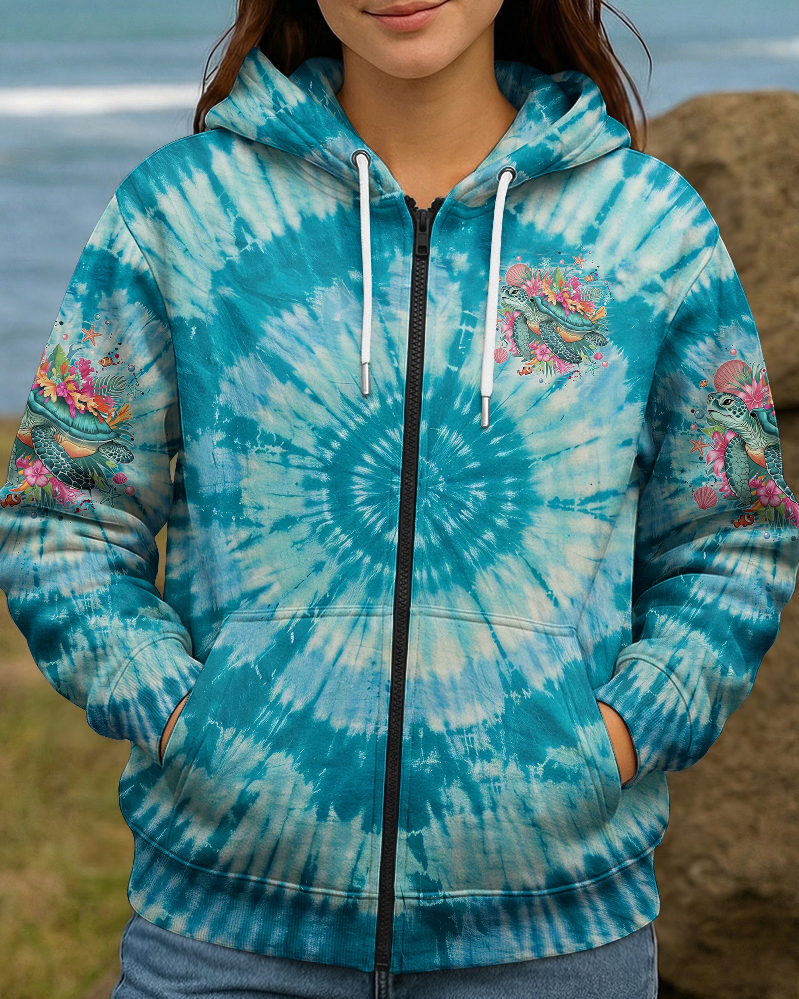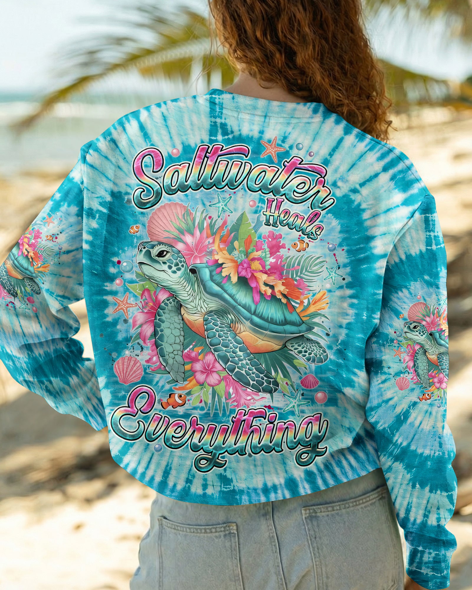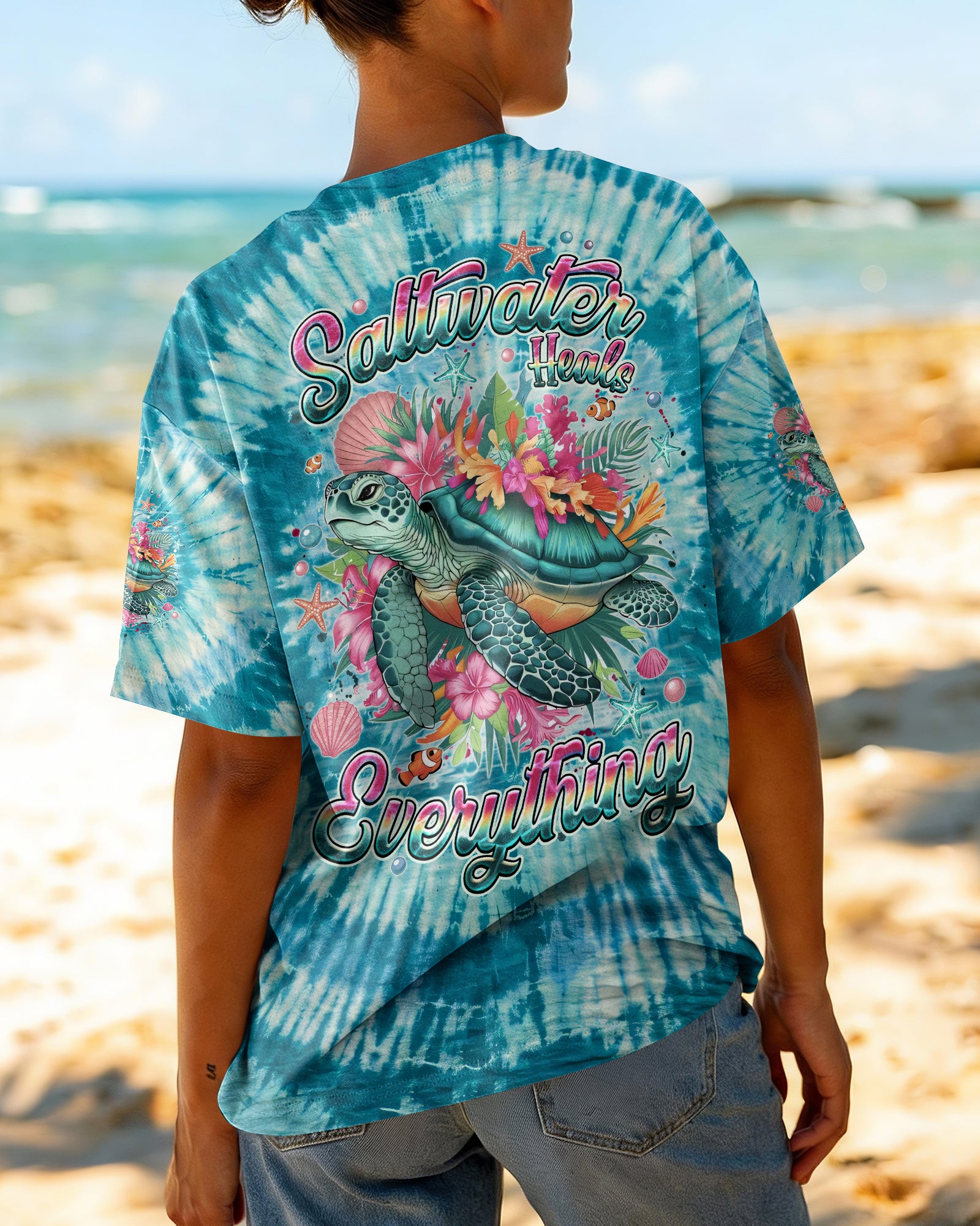 A serene escape wrapped around you—this all-over print shirt brings the healing power of the ocean to life. Aqua blue and teal tones create a calming backdrop where a graceful sea turtle glides among blooming flowers, symbolizing patience, wisdom, and gentle renewal. The cool palette evokes tranquility and depth, while soft florals remind us that growth continues even in quiet moments. Crafted from a premium cotton/polyester and spandex blend, this shirt combines comfort with durability. Advanced dye-sublimation printing delivers vibrant, high-definition color across every panel—each individually printed, cut, and sewn for a flawless finish. The result is wearable art that draws admiration wherever you go, with delicate color combinations and perfect edges that feel as refined as they look. Let saltwater healing wash away stress and renew your spirit with every wear. Balance and wholeness, one shirt at a time. 🌊🐢🌸