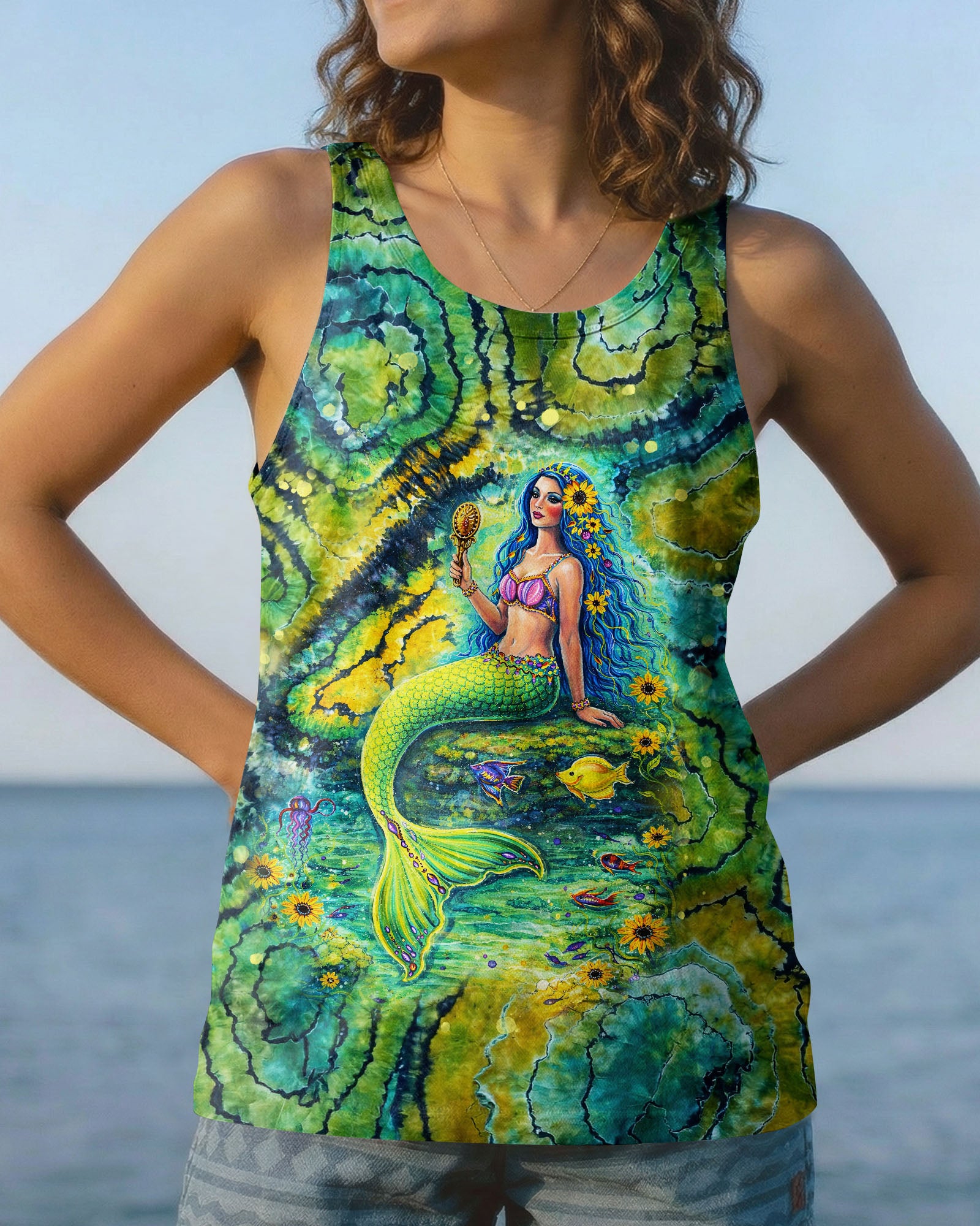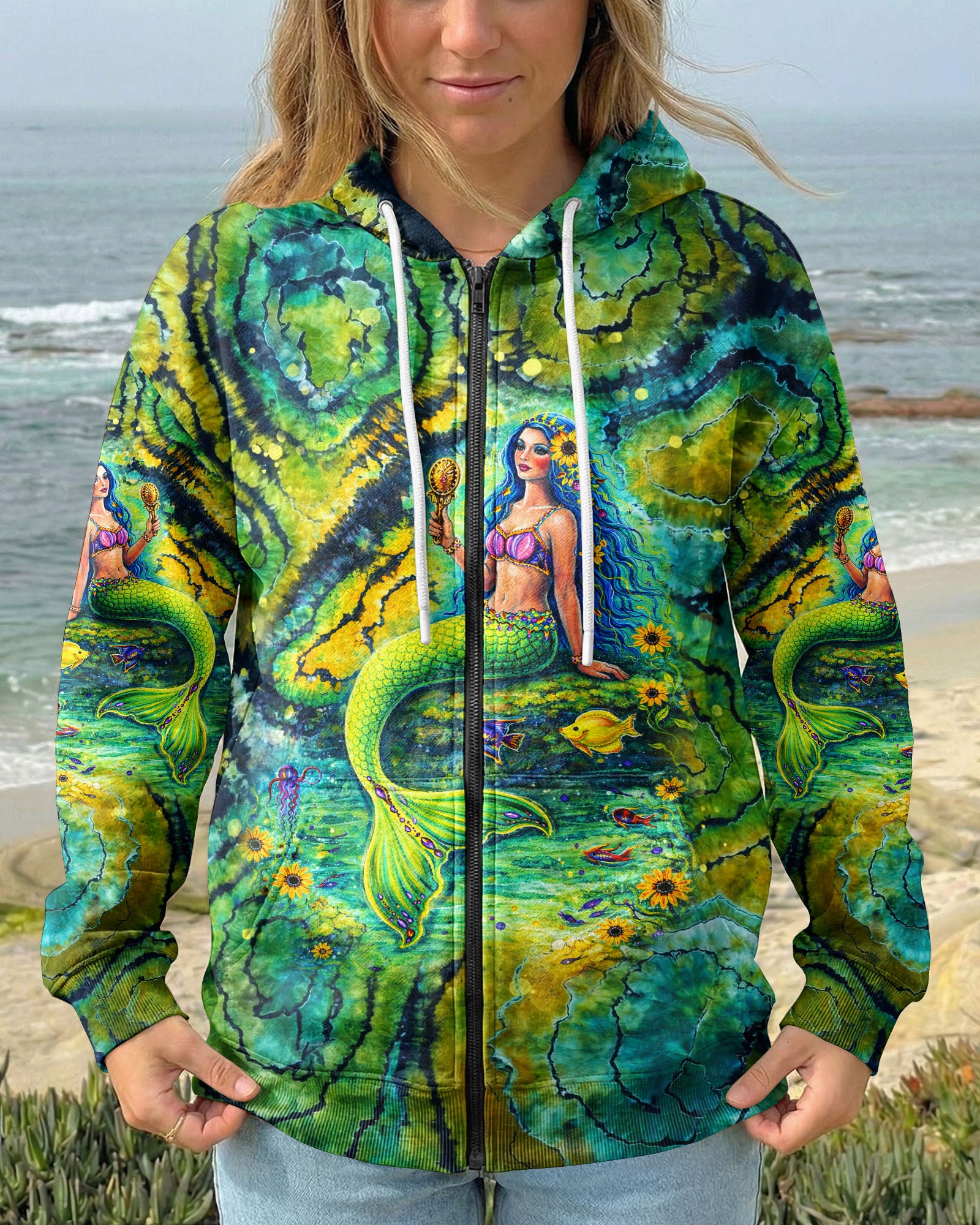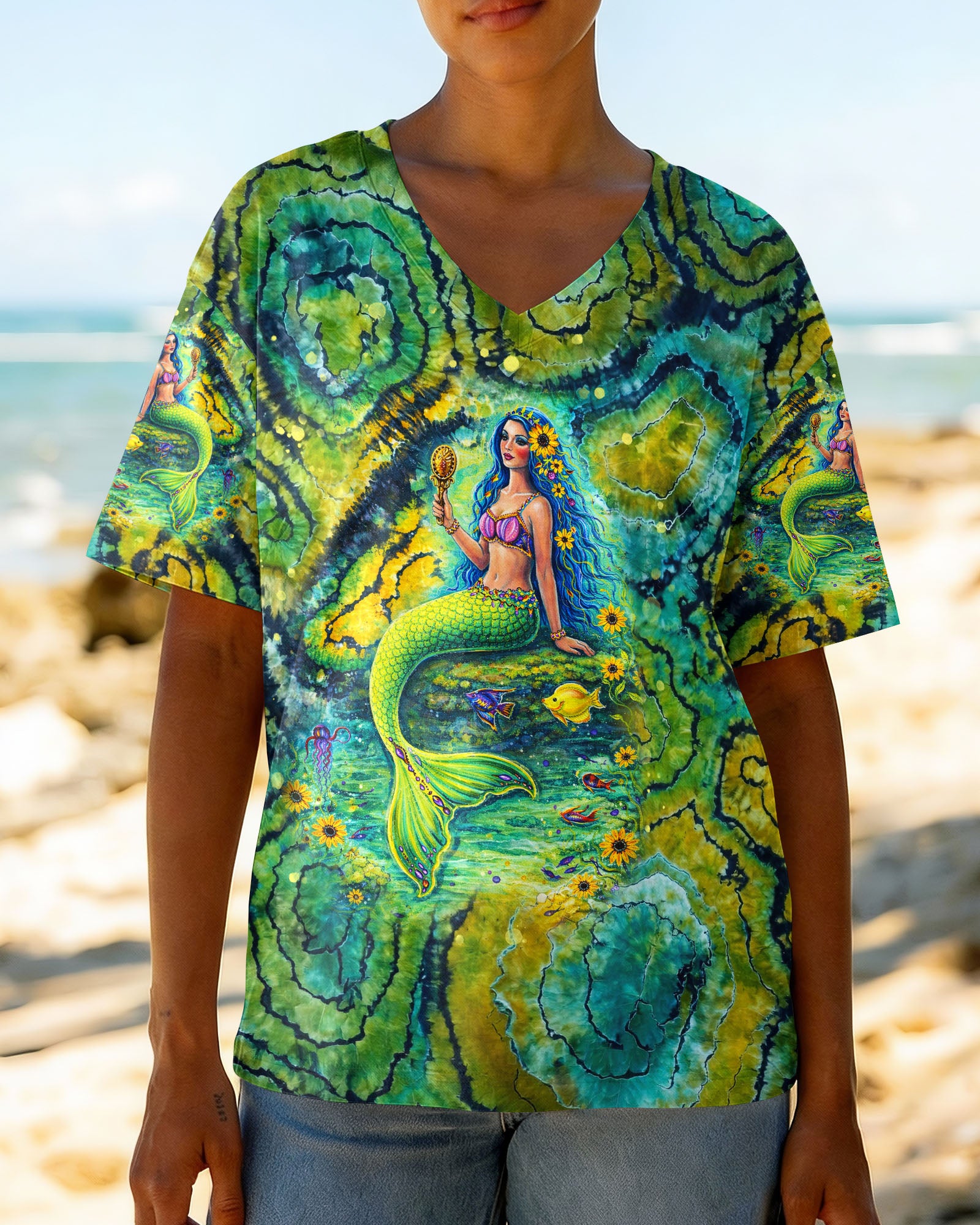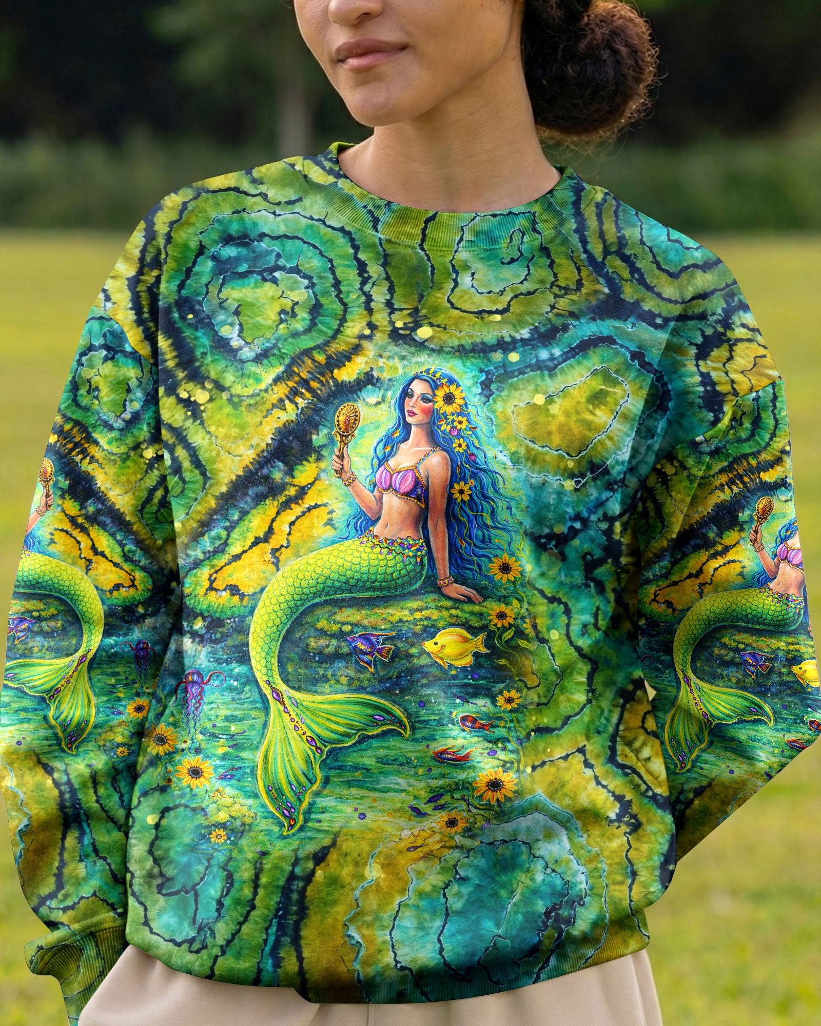 SHE IS A MERMAID SWIRL ALL OVER PRINT - TLNT0904262 Dive into a dreamy underwater world with this enchanting all-over print shirt. A whimsical mermaid rests on rocky shores, surrounded by blooming sea flowers and playful fish rendered in soft watercolor tones. The magical, flowing design captures the essence of a free spirit who belongs everywhere—carrying ocean energy beyond the waves. A poetic reminder that your world is as vast and beautiful as you dare to imagine. Crafted from a premium cotton/polyester and spandex blend, this shirt combines comfort with durability. Each panel is individually printed, cut, and sewn using advanced dye-sublimation 3D printing technology, ensuring flawless graphics with no imperfections. High-definition printing brings the delicate color combinations and intricate patterns to life, making this wearable art stand out wherever you go.