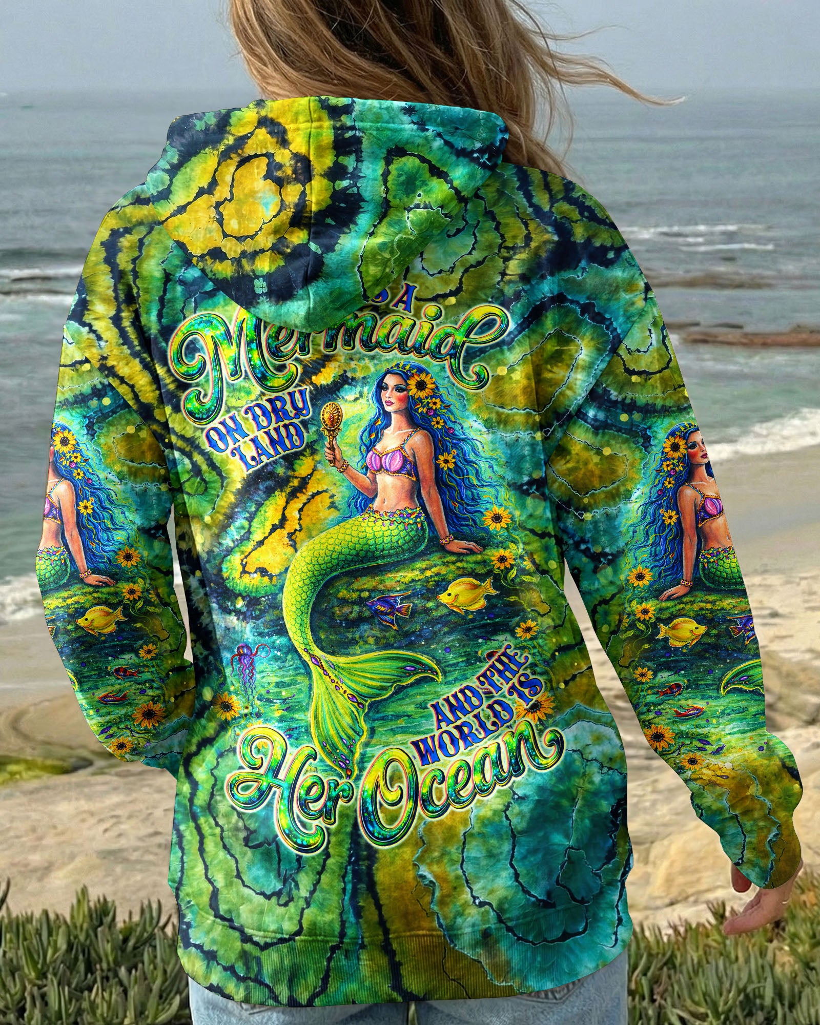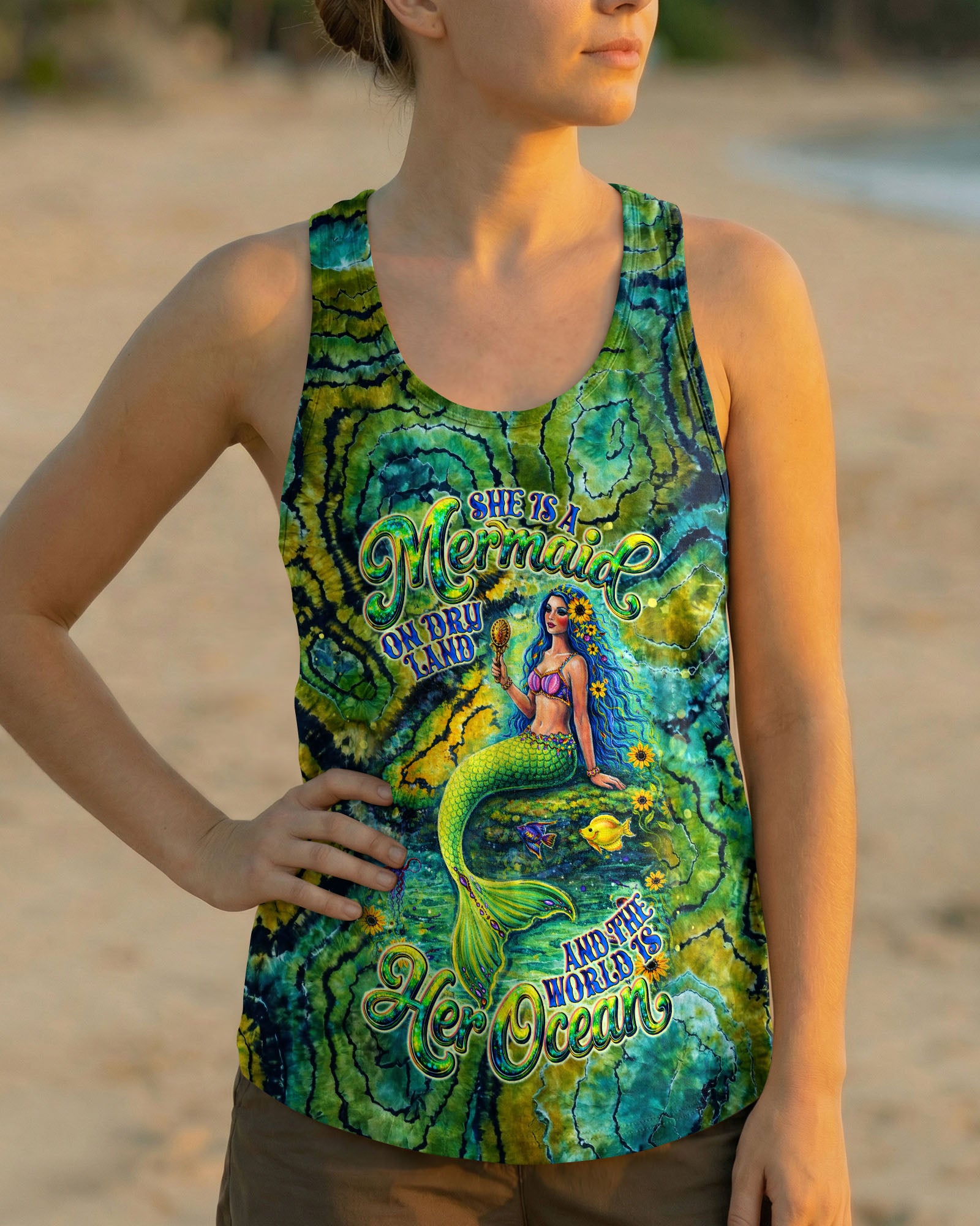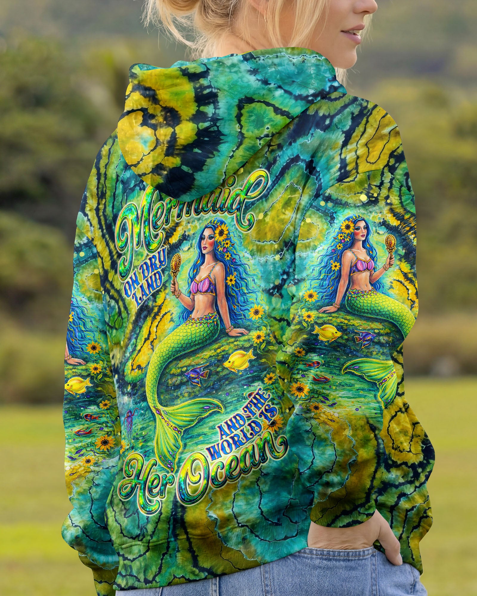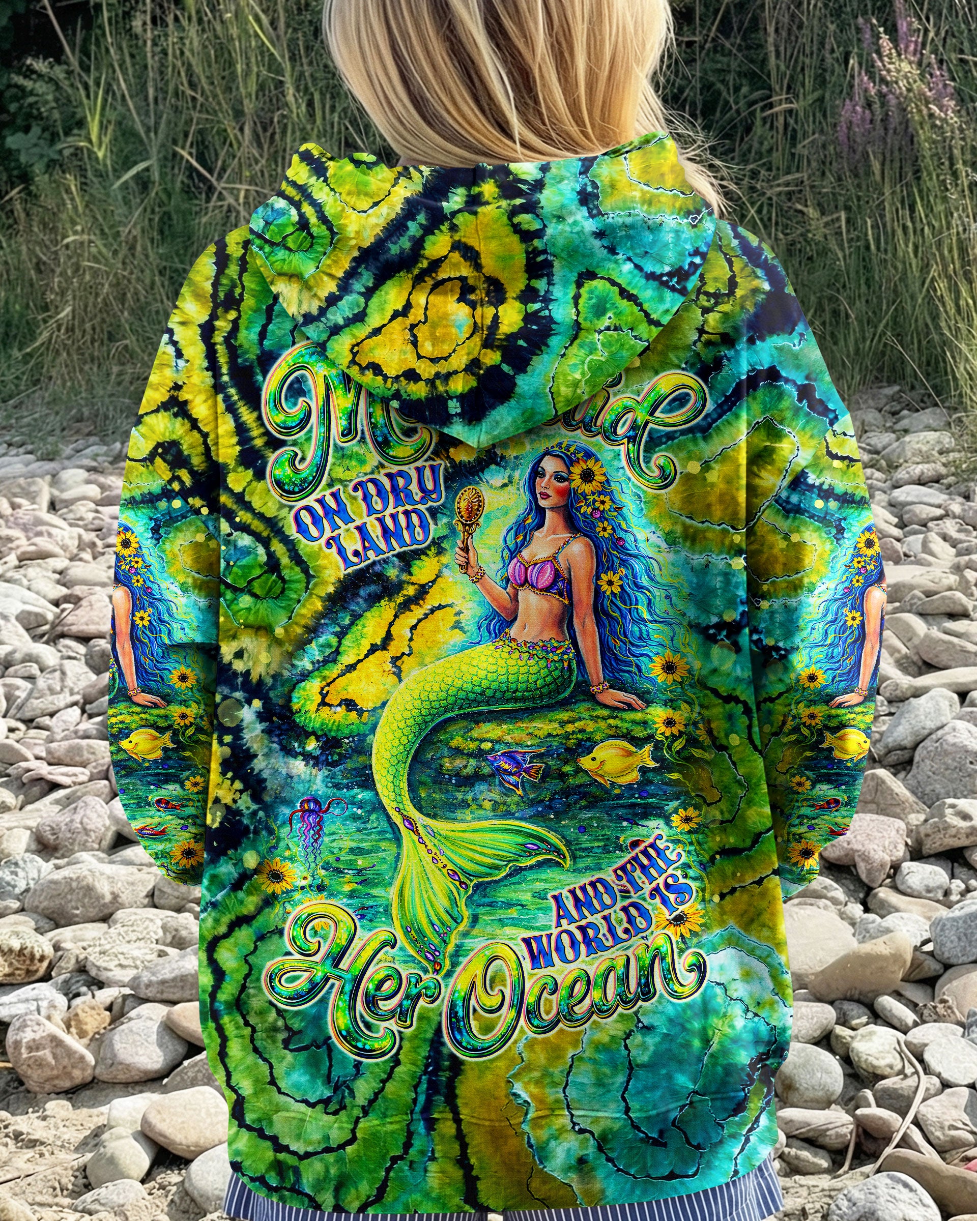 SHE IS A MERMAID SWIRL ALL OVER PRINT - TLNT0904262 Dive into a dreamy underwater world with this enchanting all-over print shirt. A whimsical mermaid rests on rocky shores, surrounded by blooming sea flowers and playful fish rendered in soft watercolor tones. The magical, flowing design captures the essence of a free spirit who belongs everywhere—carrying ocean energy beyond the waves. A poetic reminder that your world is as vast and beautiful as you dare to imagine. Crafted from a premium cotton/polyester and spandex blend, this shirt combines comfort with durability. Each panel is individually printed, cut, and sewn using advanced dye-sublimation 3D printing technology, ensuring flawless graphics with no imperfections. High-definition printing brings the delicate color combinations and intricate patterns to life, making this wearable art stand out wherever you go.