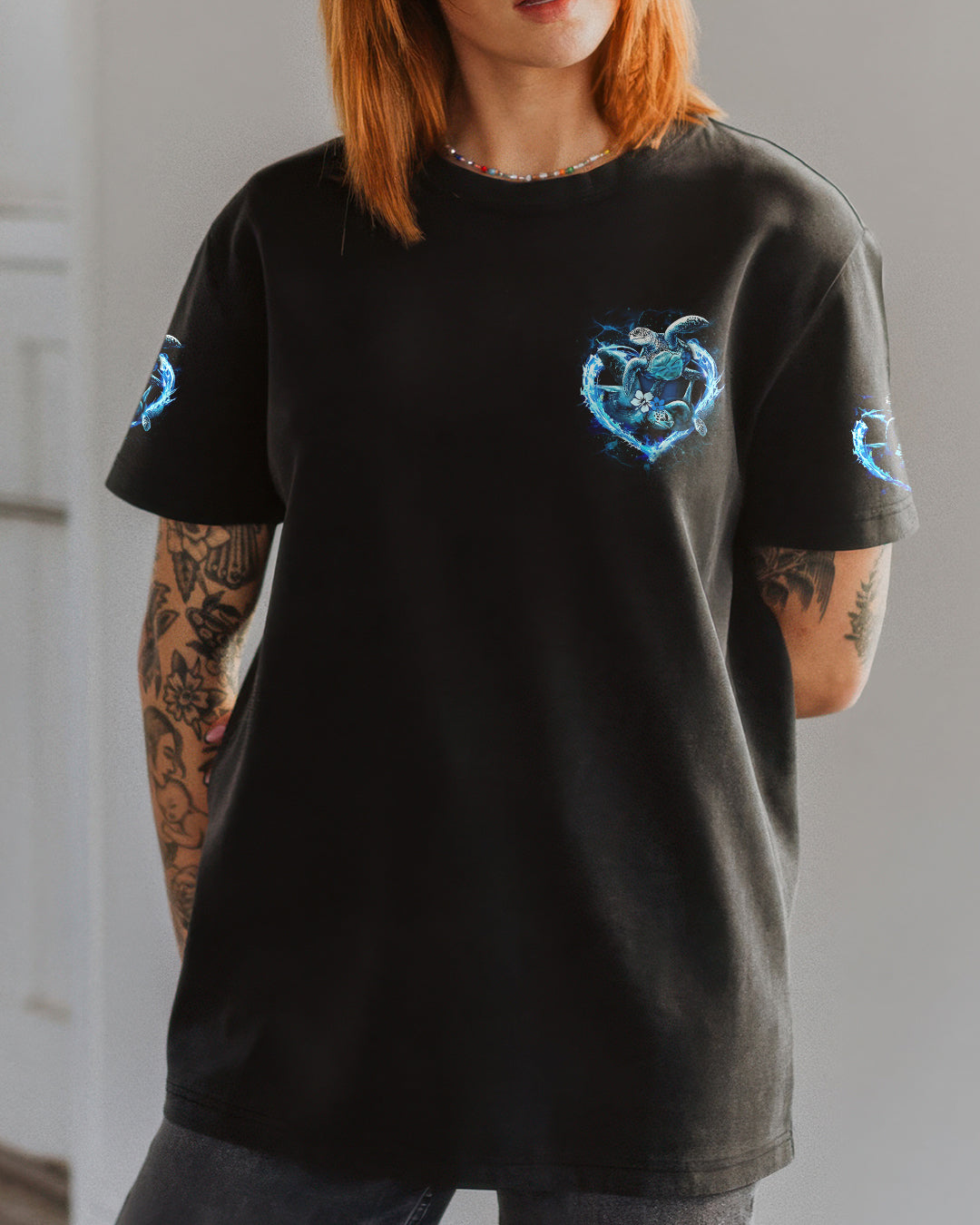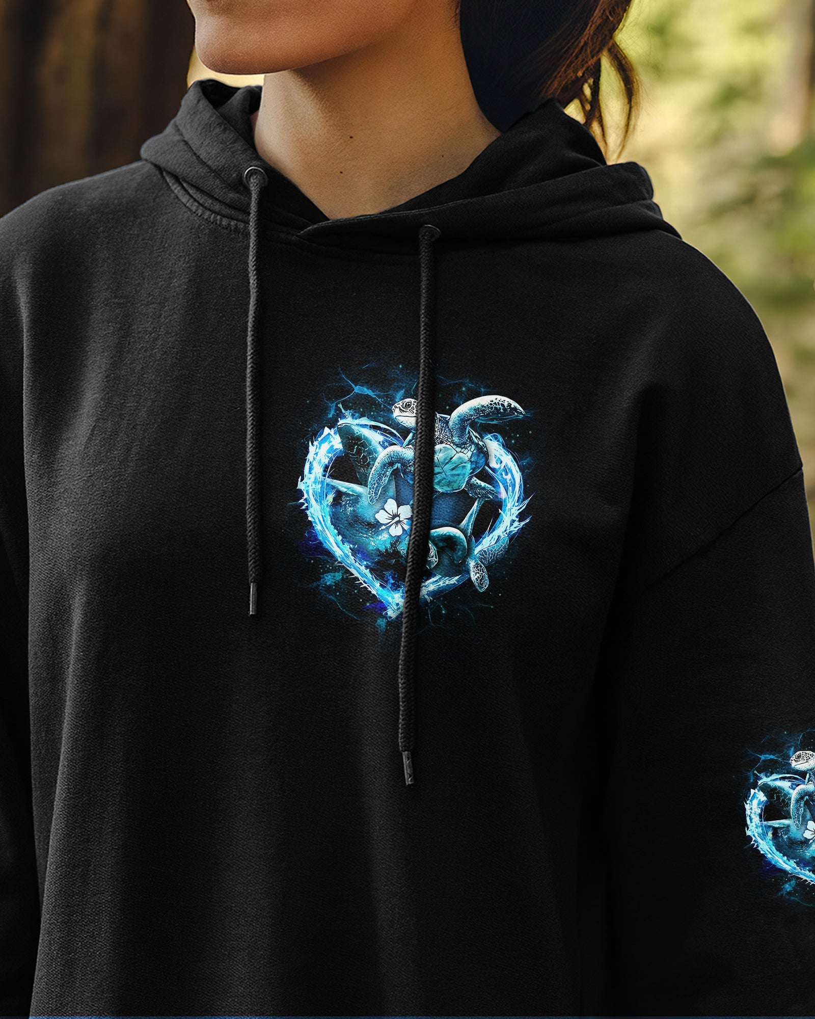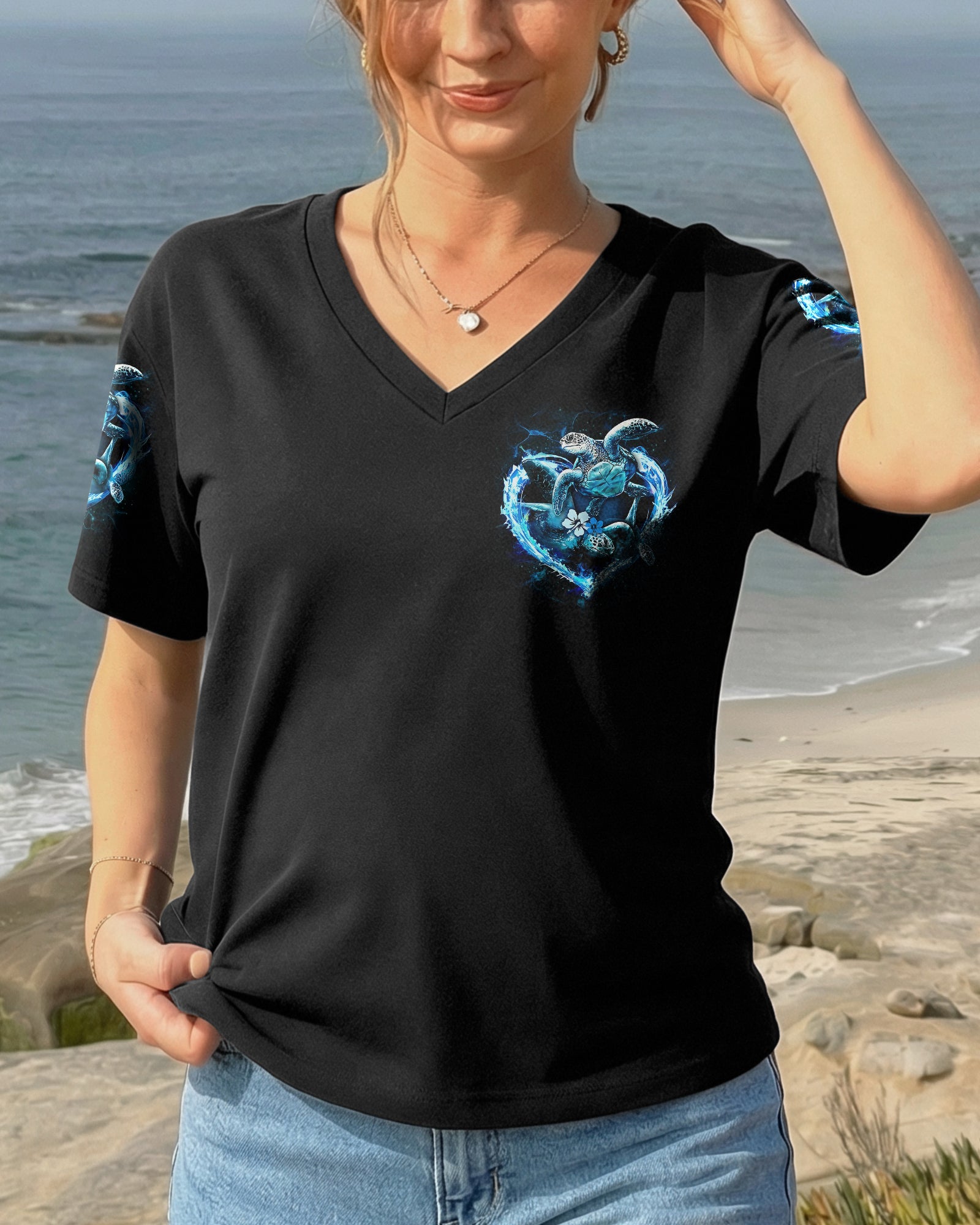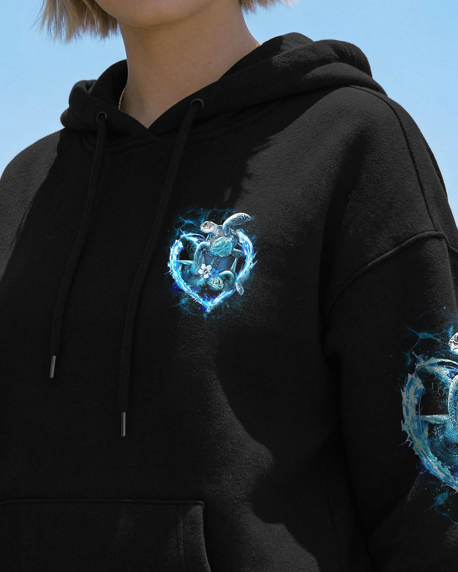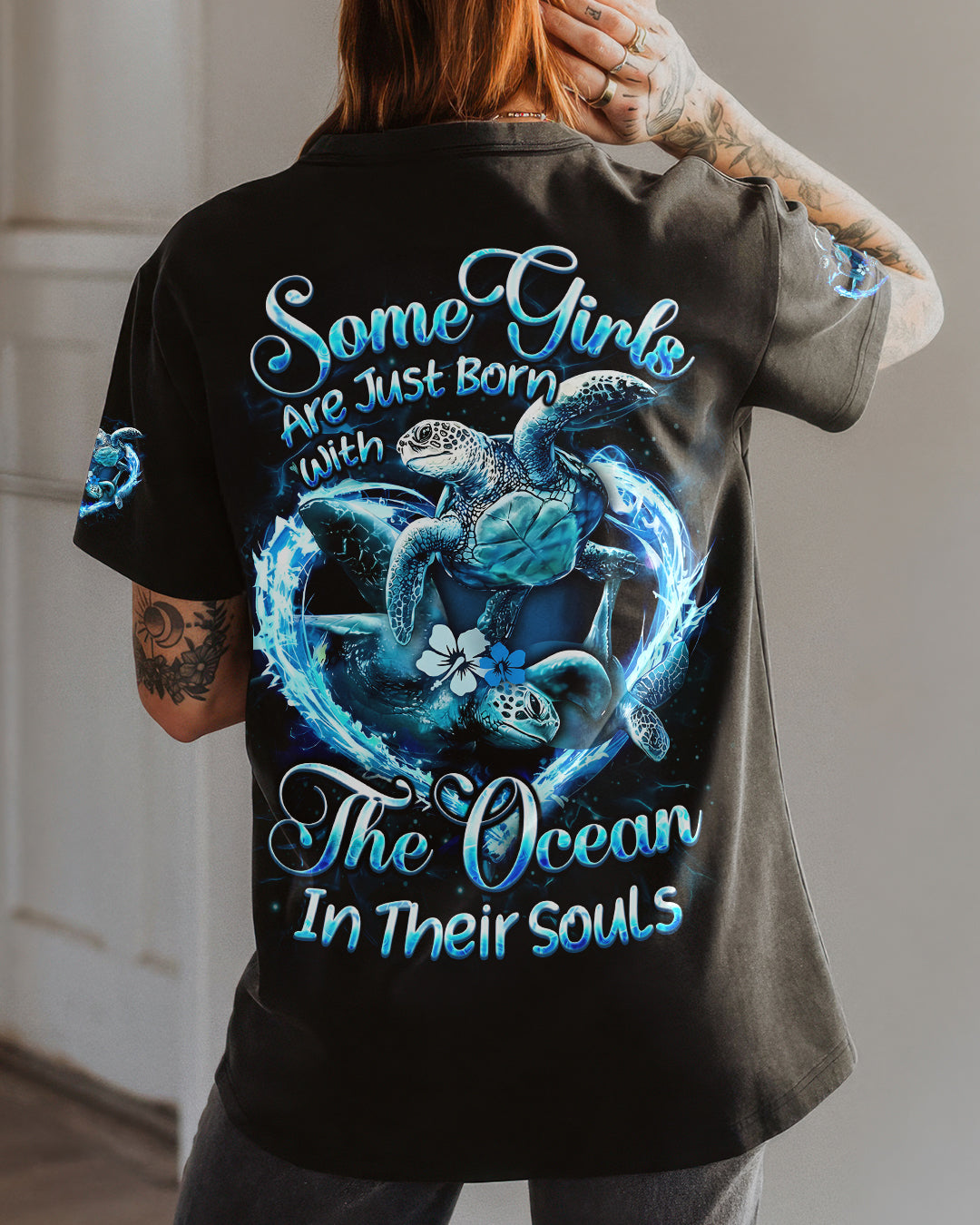 Embrace the spirit of the ocean with this all-over print design celebrating those who find their truest selves by the sea. Featuring graceful sea turtles, this piece honors patience, wisdom, and an intuitive connection to nature's rhythms. The design captures the duality of ocean souls—serene on the surface yet profoundly powerful within. Perfect for anyone whose heart belongs to the waves and whose spirit resonates with the endless blue. A wearable tribute to those born with the ocean in their soul.