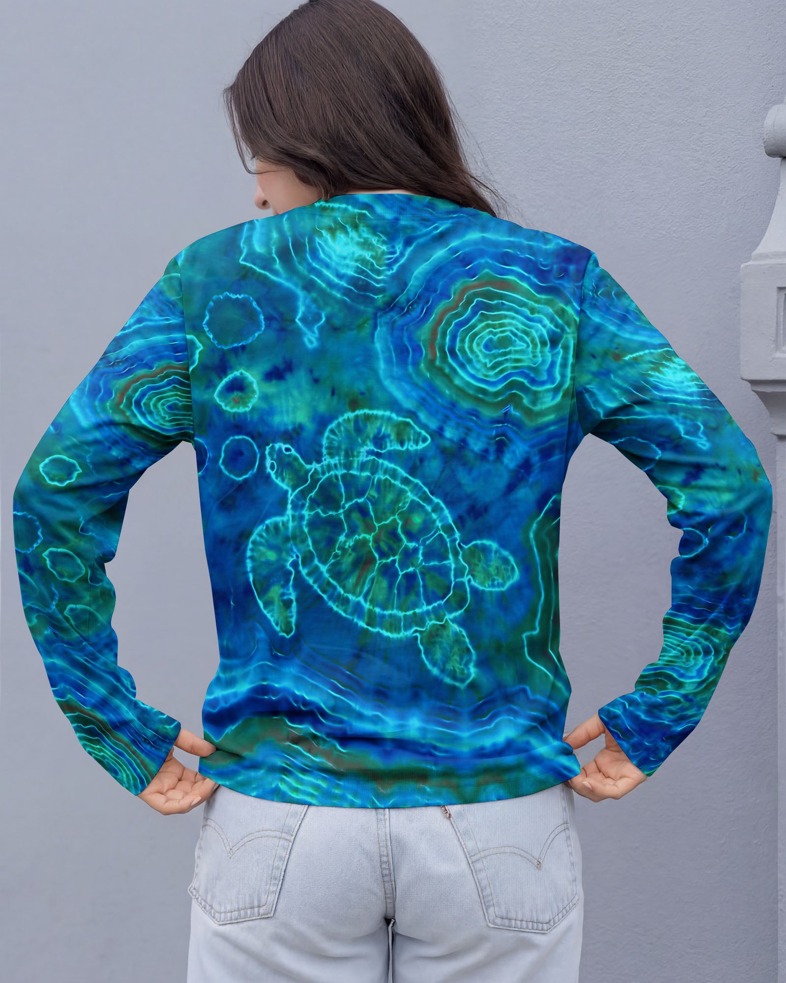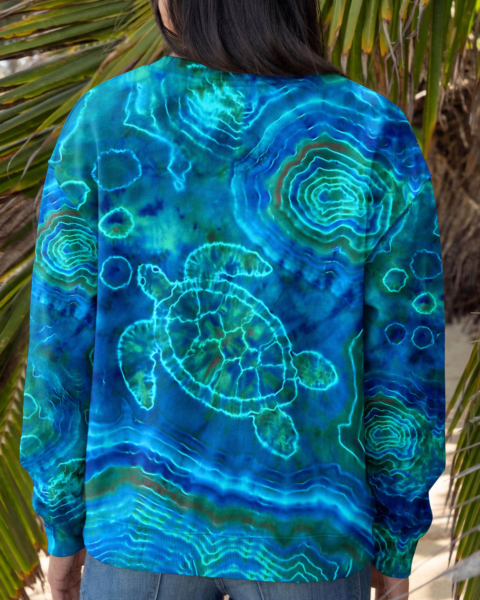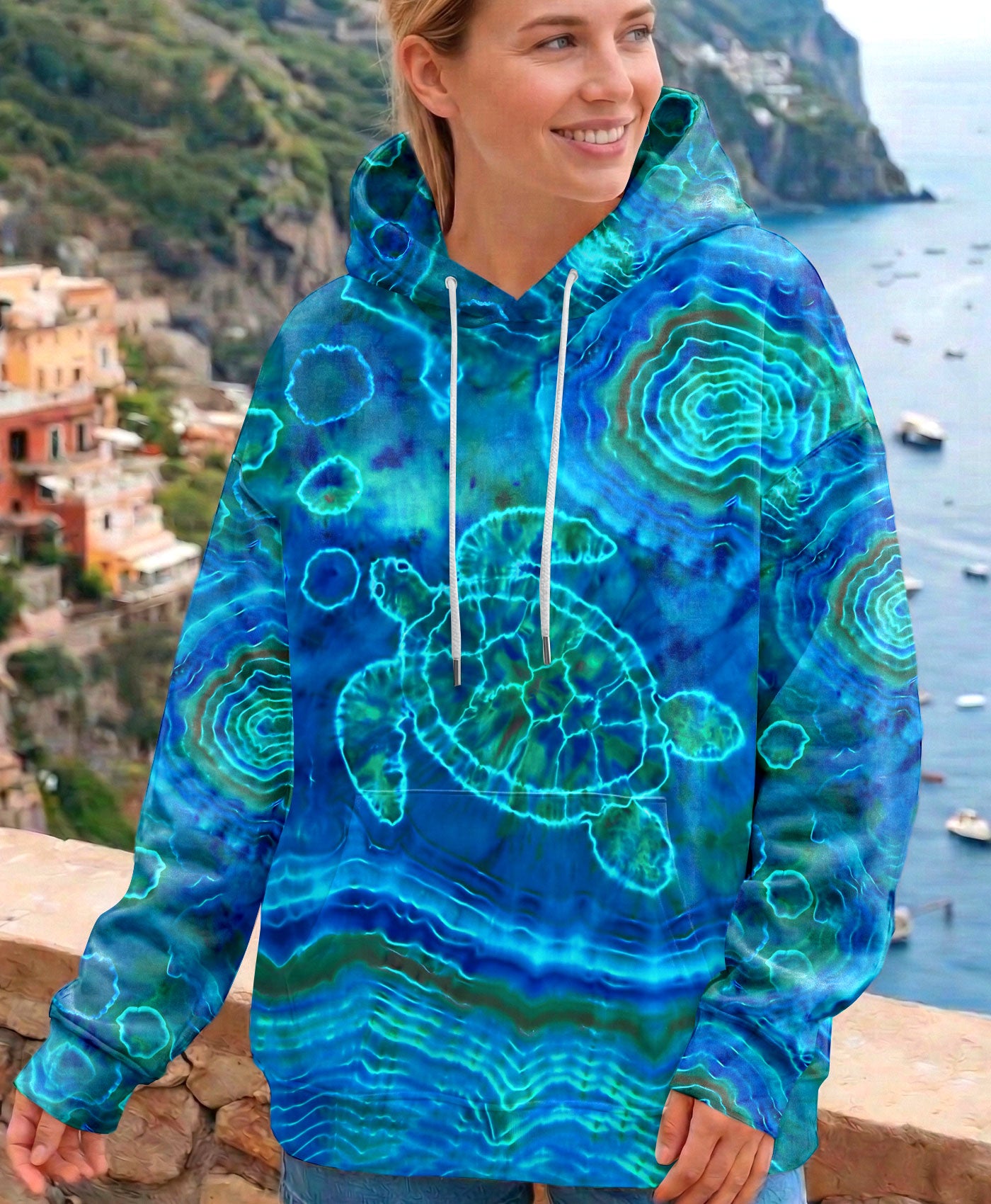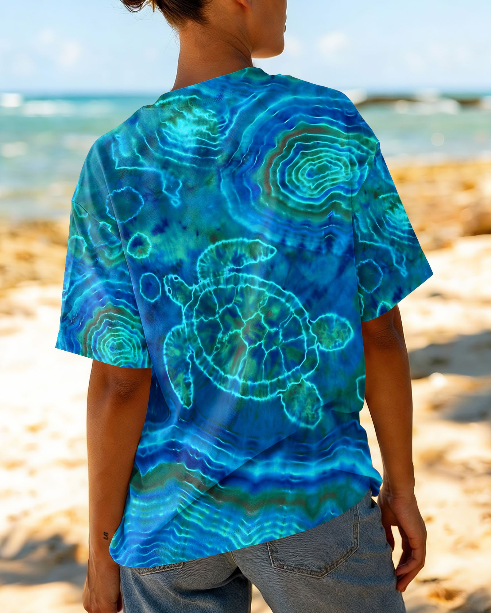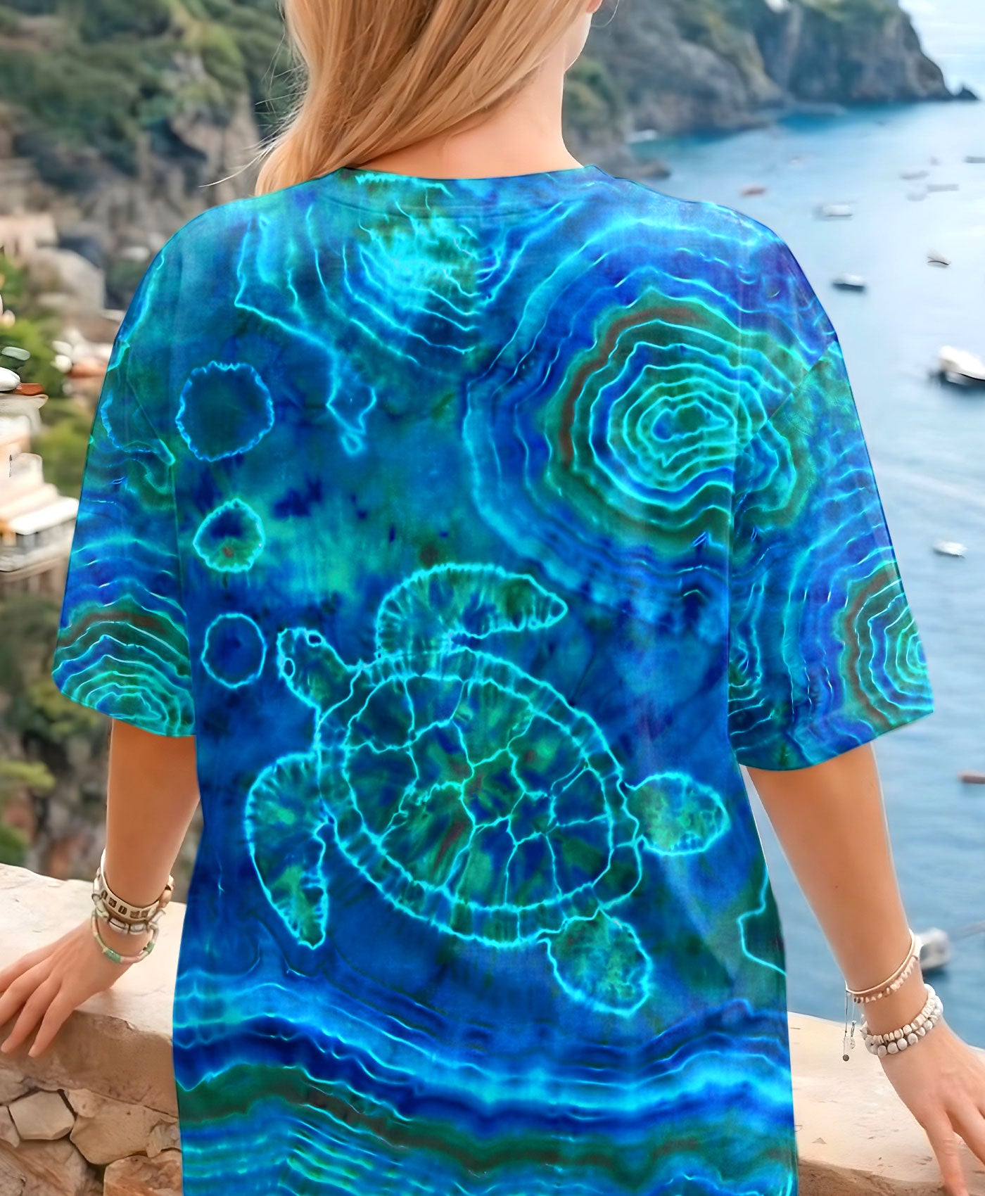 A graceful sea turtle glides through artistic waves, bringing a refreshing ocean vibe to life. The flowing design captures the calm, cool feeling of being by the beach and surrounded by nature. It represents peace, freedom, and a deep connection to the rhythm of the sea. Perfect for turtle lovers who enjoy relaxing coastal energy and vibrant aquatic style.