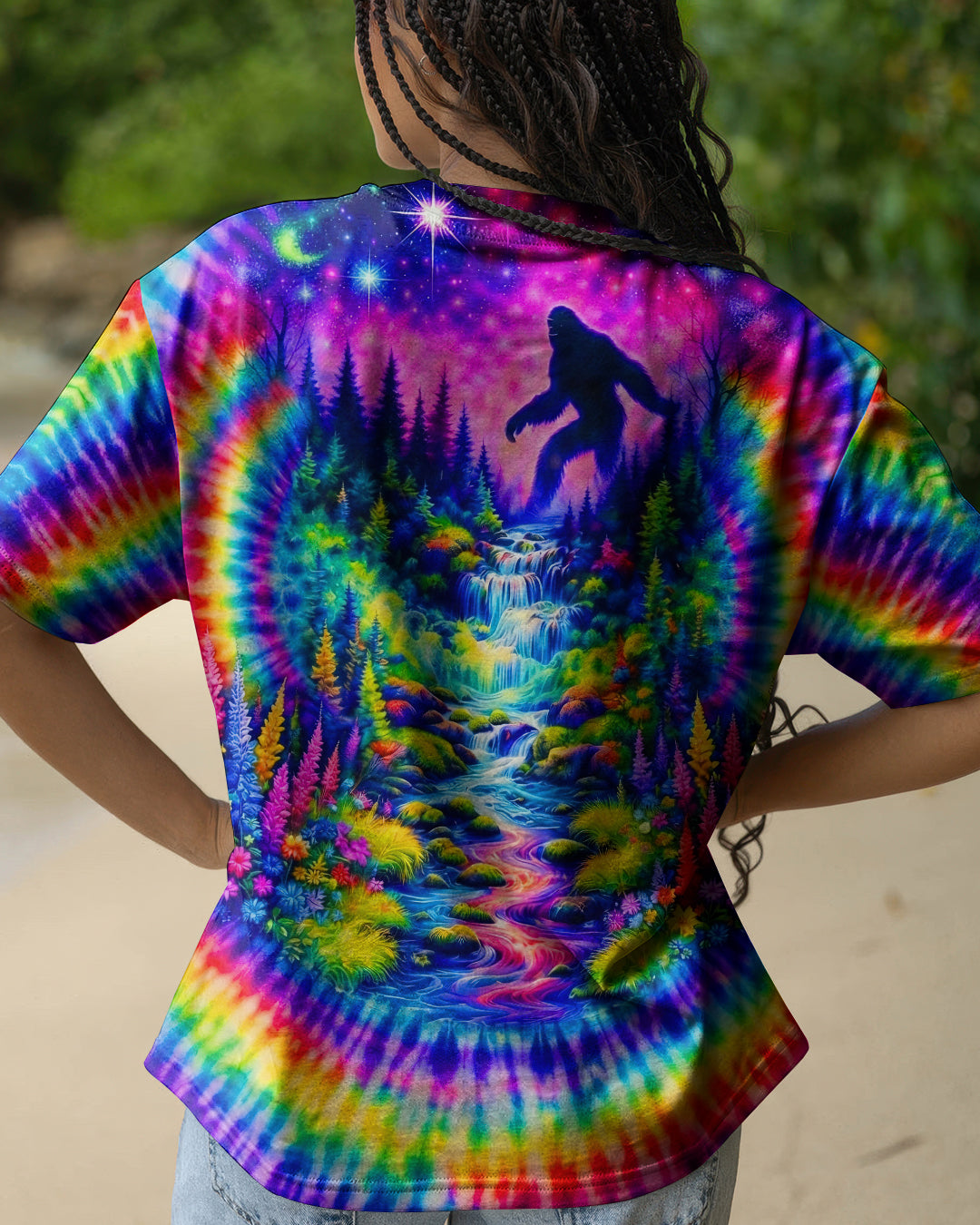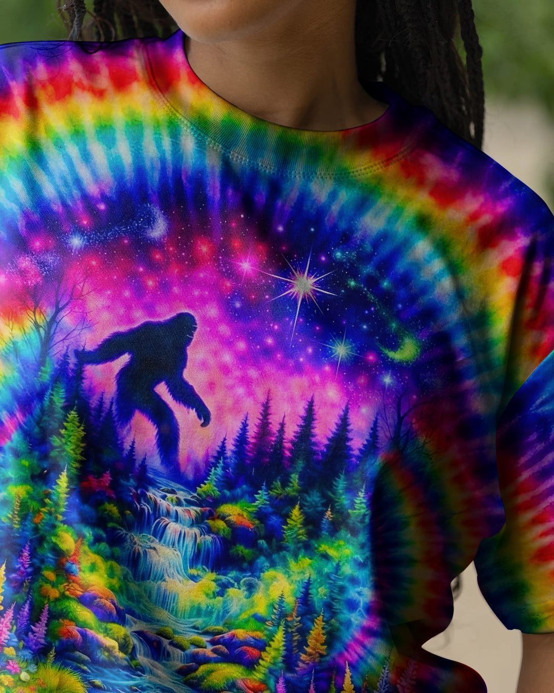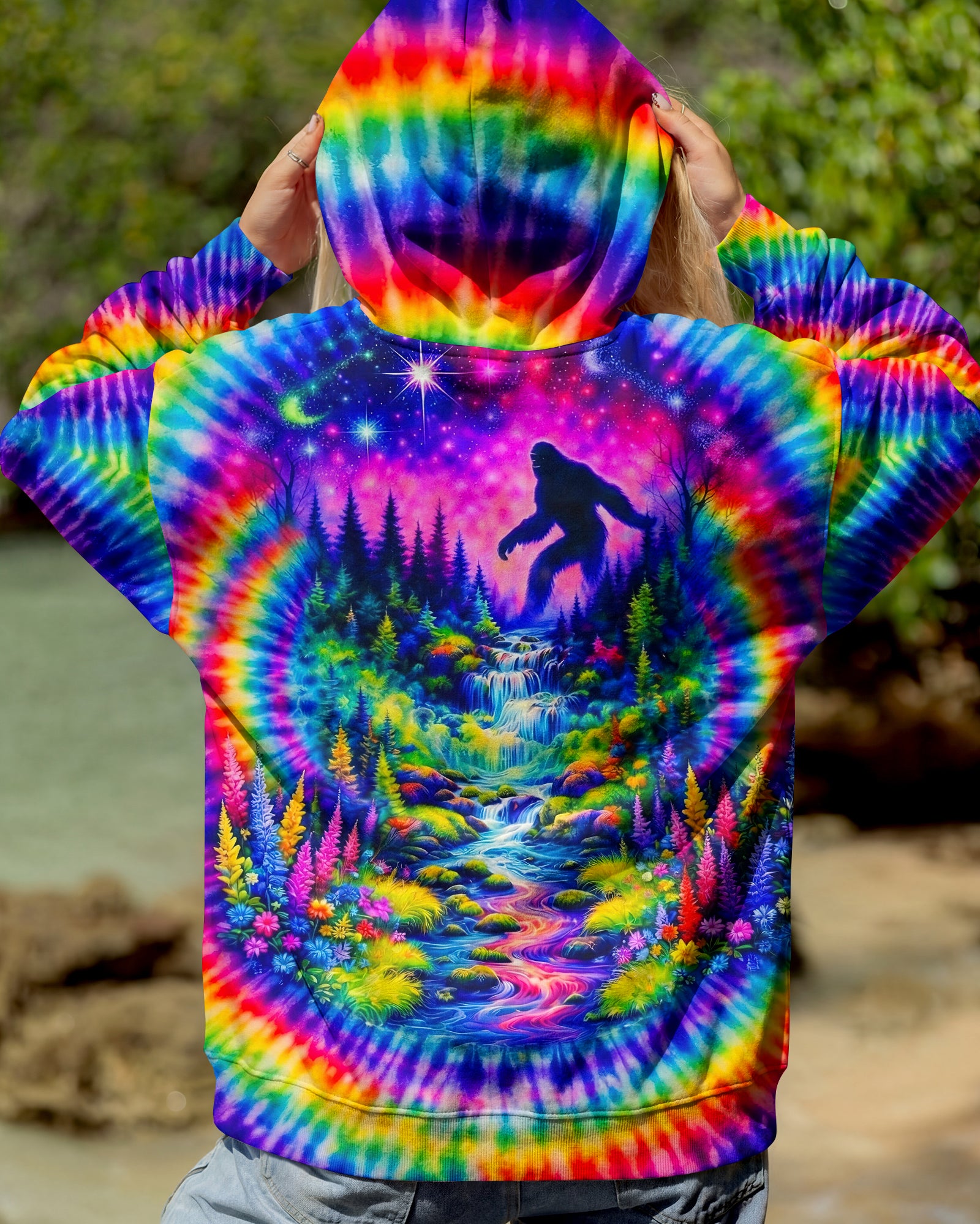 Venture into the wild with this captivating all-over print design featuring Bigfoot amid an enchanted forest landscape. Vibrant hues and mesmerizing swirls bring the legendary creature to life, celebrating the untamed beauty of nature and the spirit of exploration. This piece speaks to wanderers and adventurers—those drawn to mystery, curiosity, and the open path less traveled. Ideal for anyone who feels most alive where legends and wilderness converge, this design merges mythical wonder with artistic expression, making it a statement piece for free spirits who embrace the call of the unknown.
