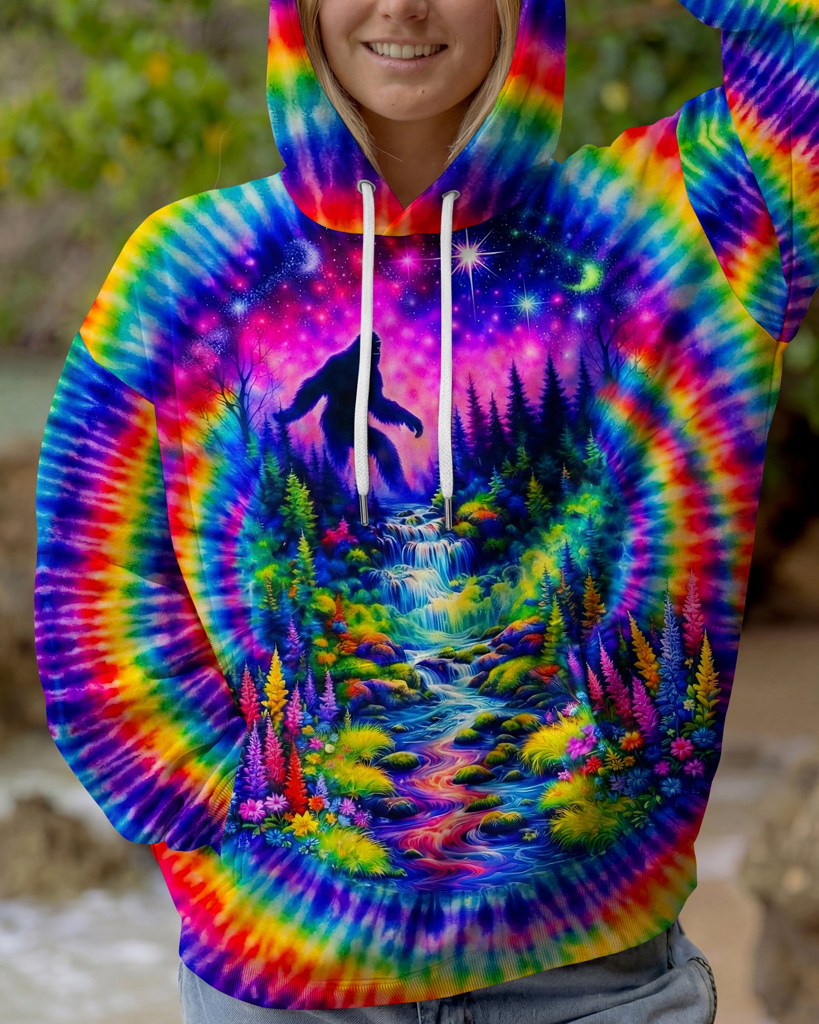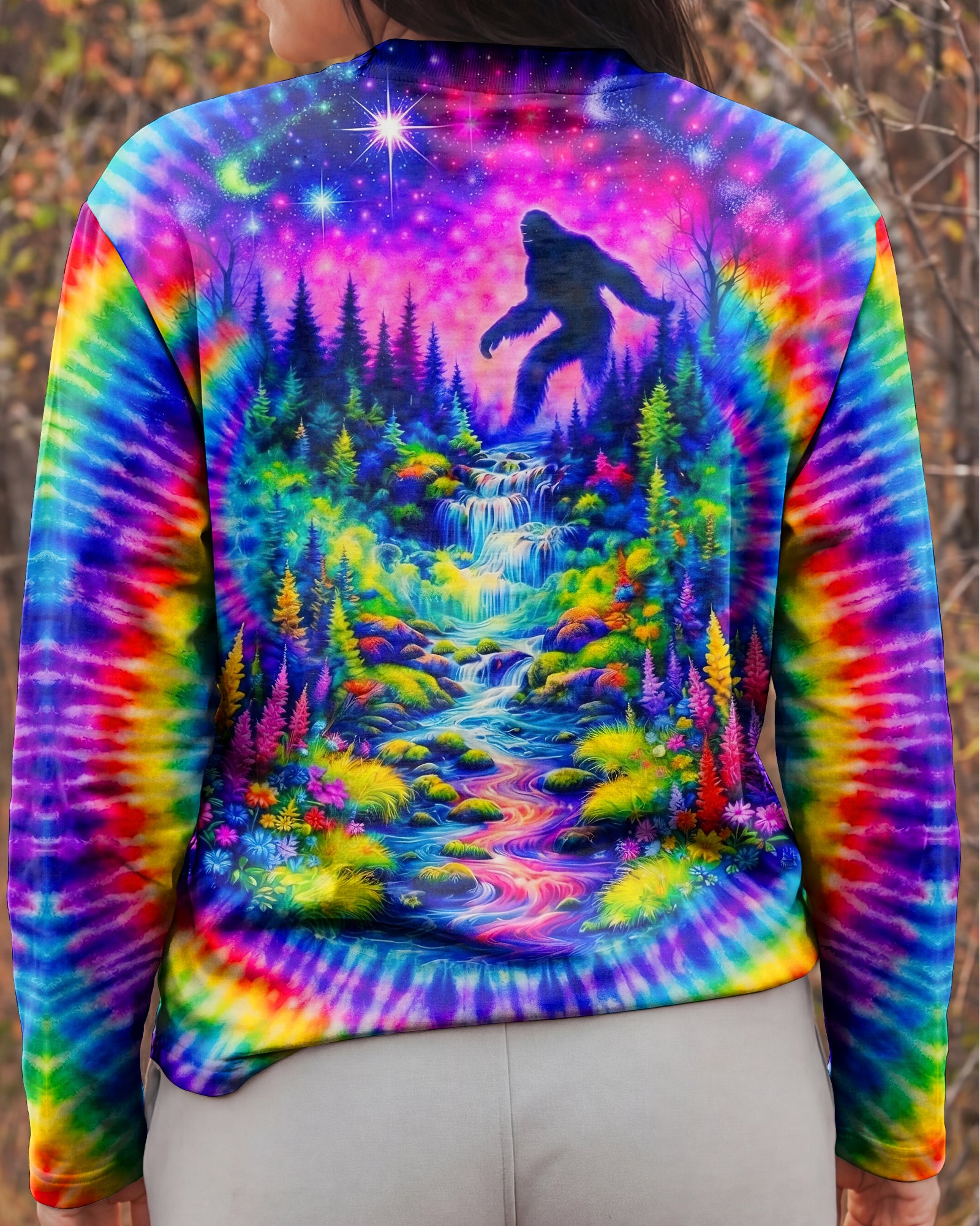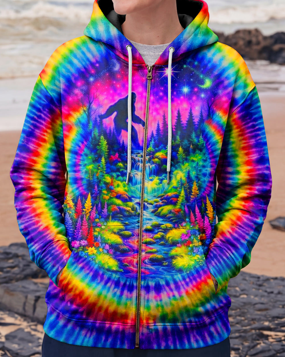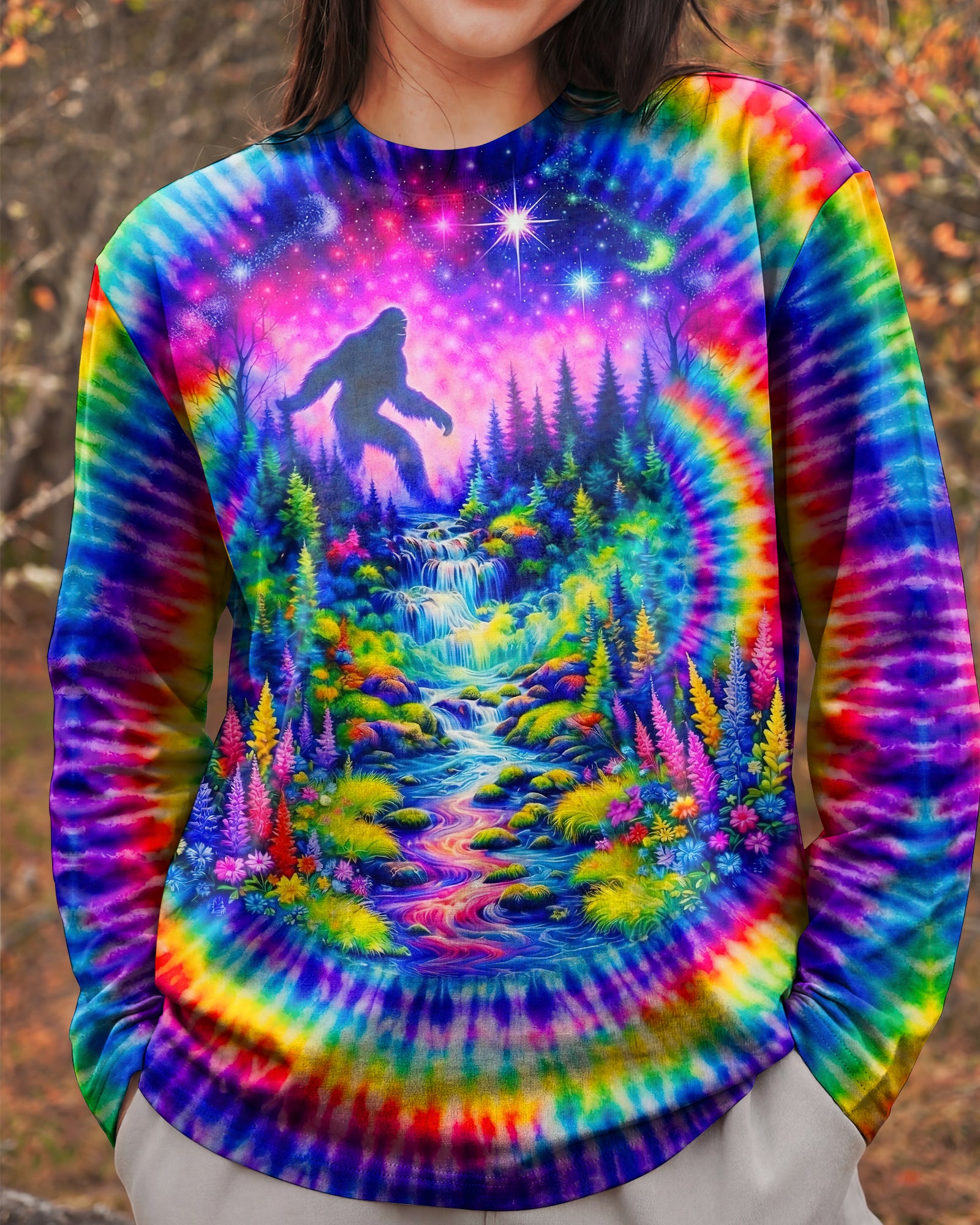 Venture into the wild with this captivating all-over print design featuring Bigfoot amid an enchanted forest landscape. Vibrant hues and mesmerizing swirls bring the legendary creature to life, celebrating the untamed beauty of nature and the spirit of exploration. This piece speaks to wanderers and adventurers—those drawn to mystery, curiosity, and the open path less traveled. Ideal for anyone who feels most alive where legends and wilderness converge, this design merges mythical wonder with artistic expression, making it a statement piece for free spirits who embrace the call of the unknown.