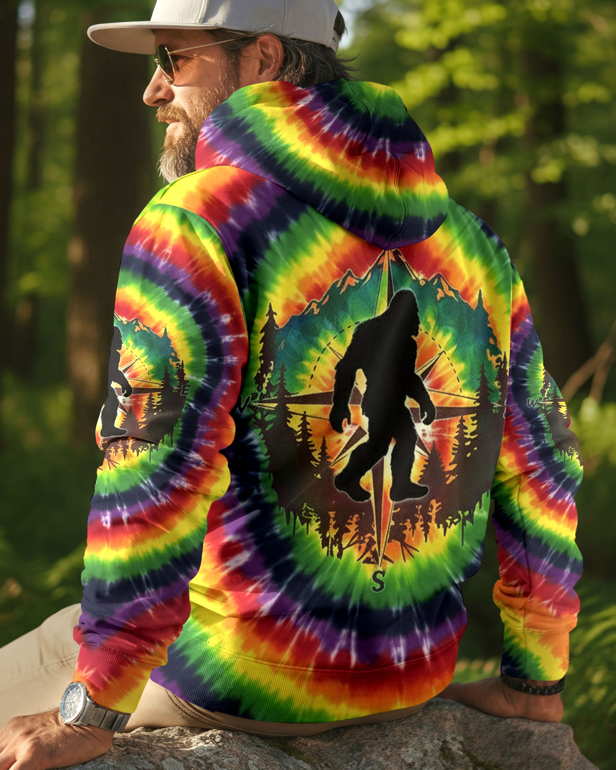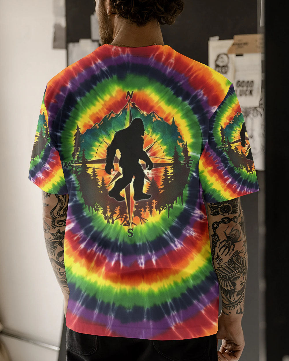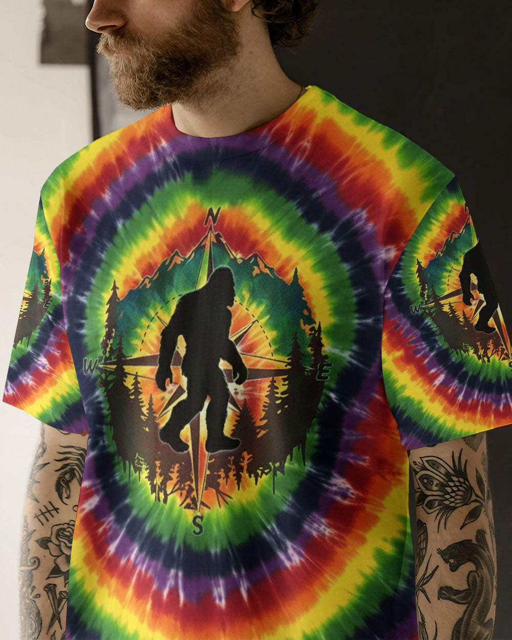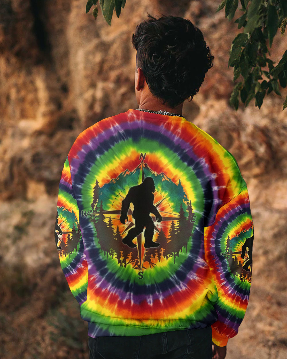 Unleash your adventurous spirit with this striking all-over print featuring Bigfoot striding confidently through majestic mountain terrain, guided by intricate compass lines against a vibrant tie-dye backdrop. The design merges mythic wilderness exploration with purposeful navigation, celebrating those who embrace the freedom to wander authentically. This piece resonates with independent explorers and nature seekers who understand that true wandering requires courage, self-trust, and the willingness to forge your own path. Perfect for free spirits who recognize that getting lost and finding yourself are often the same journey—a powerful affirmation that the greatest discoveries happen when you follow your inner compass rather than someone else's map.