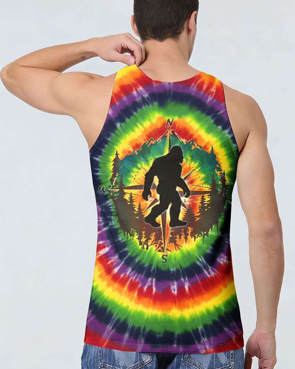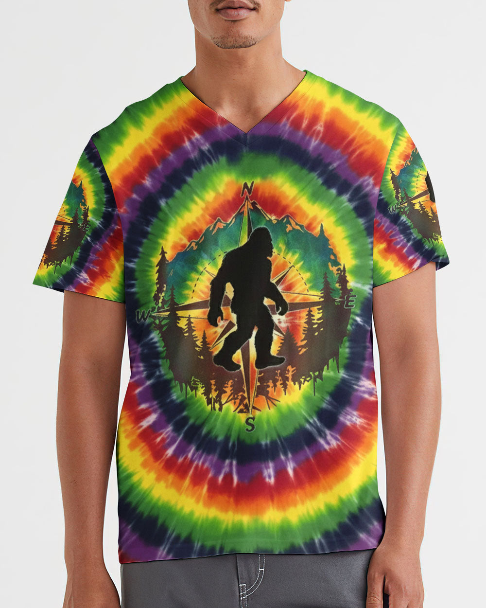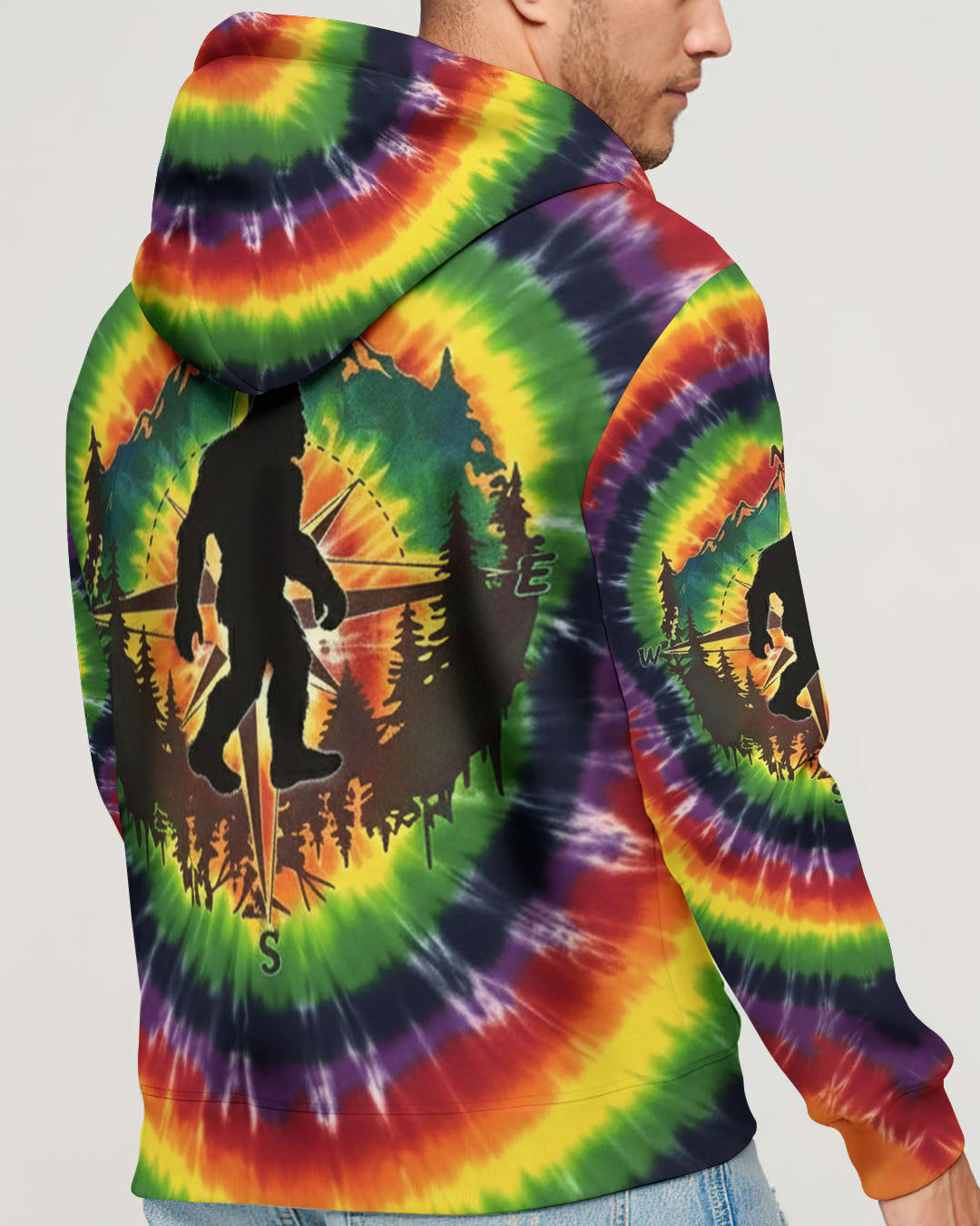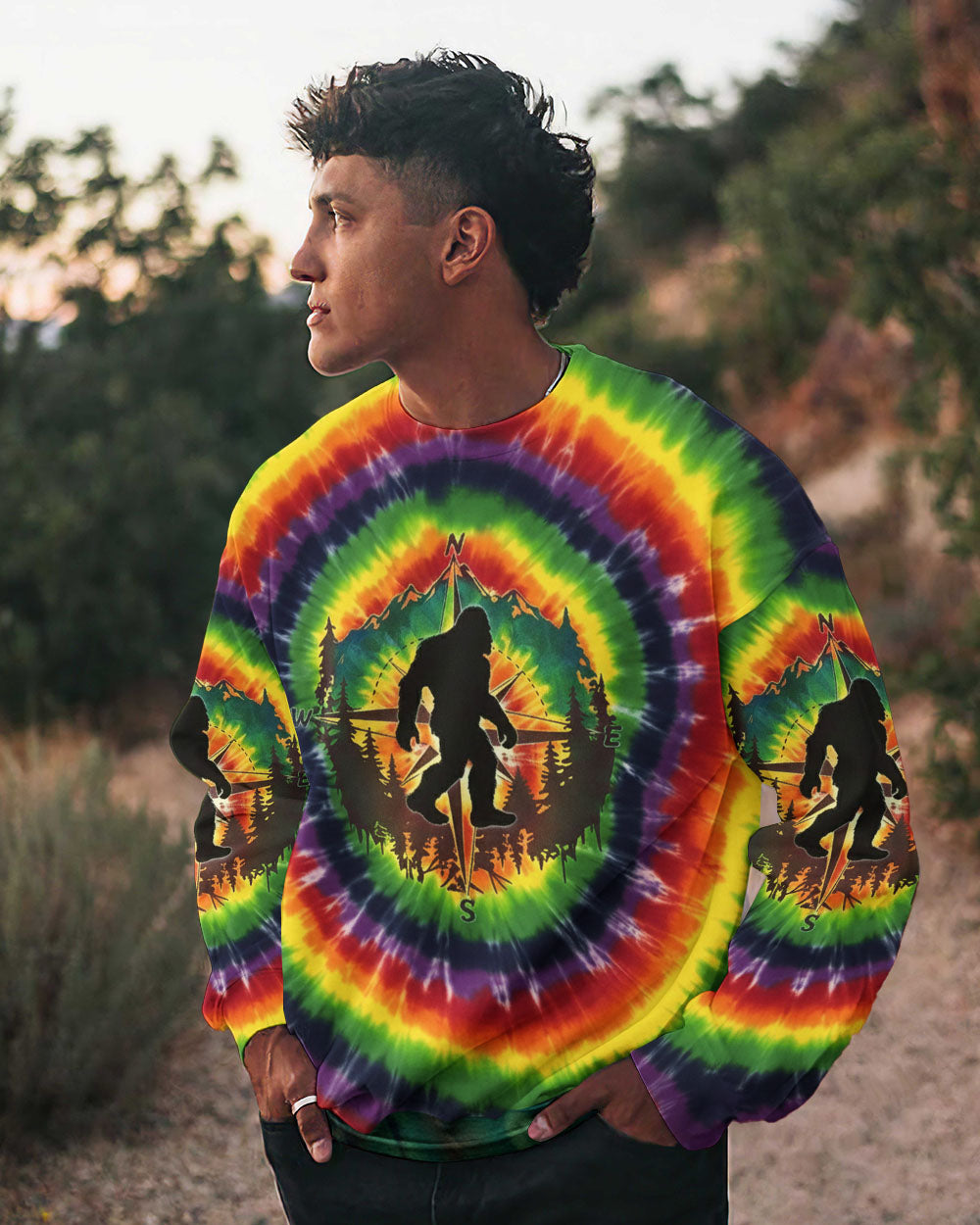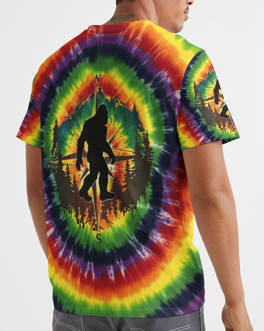 Unleash your adventurous spirit with this striking all-over print featuring Bigfoot striding confidently through majestic mountain terrain, guided by intricate compass lines against a vibrant tie-dye backdrop. The design merges mythic wilderness exploration with purposeful navigation, celebrating those who embrace the freedom to wander authentically. This piece resonates with independent explorers and nature seekers who understand that true wandering requires courage, self-trust, and the willingness to forge your own path. Perfect for free spirits who recognize that getting lost and finding yourself are often the same journey—a powerful affirmation that the greatest discoveries happen when you follow your inner compass rather than someone else's map.