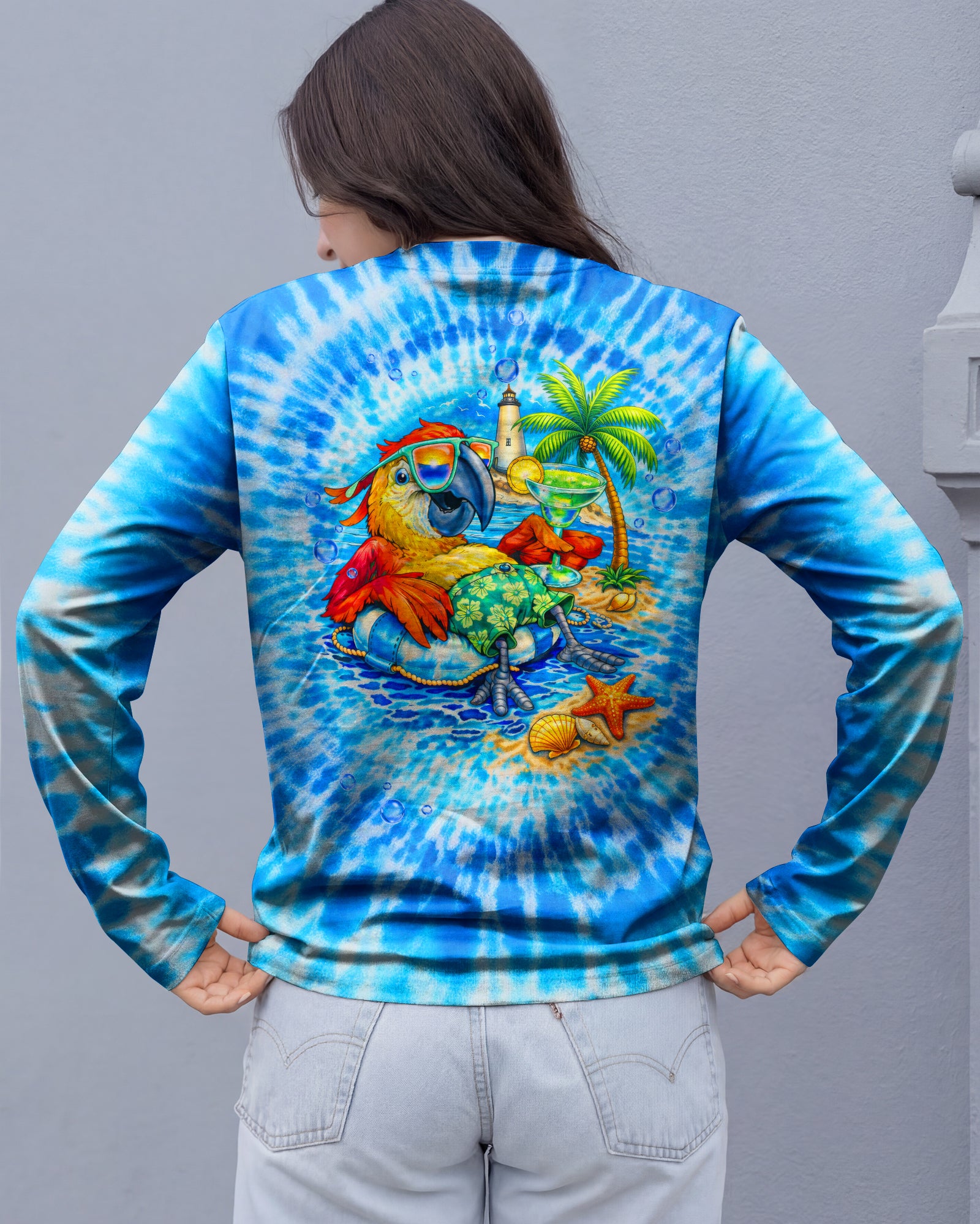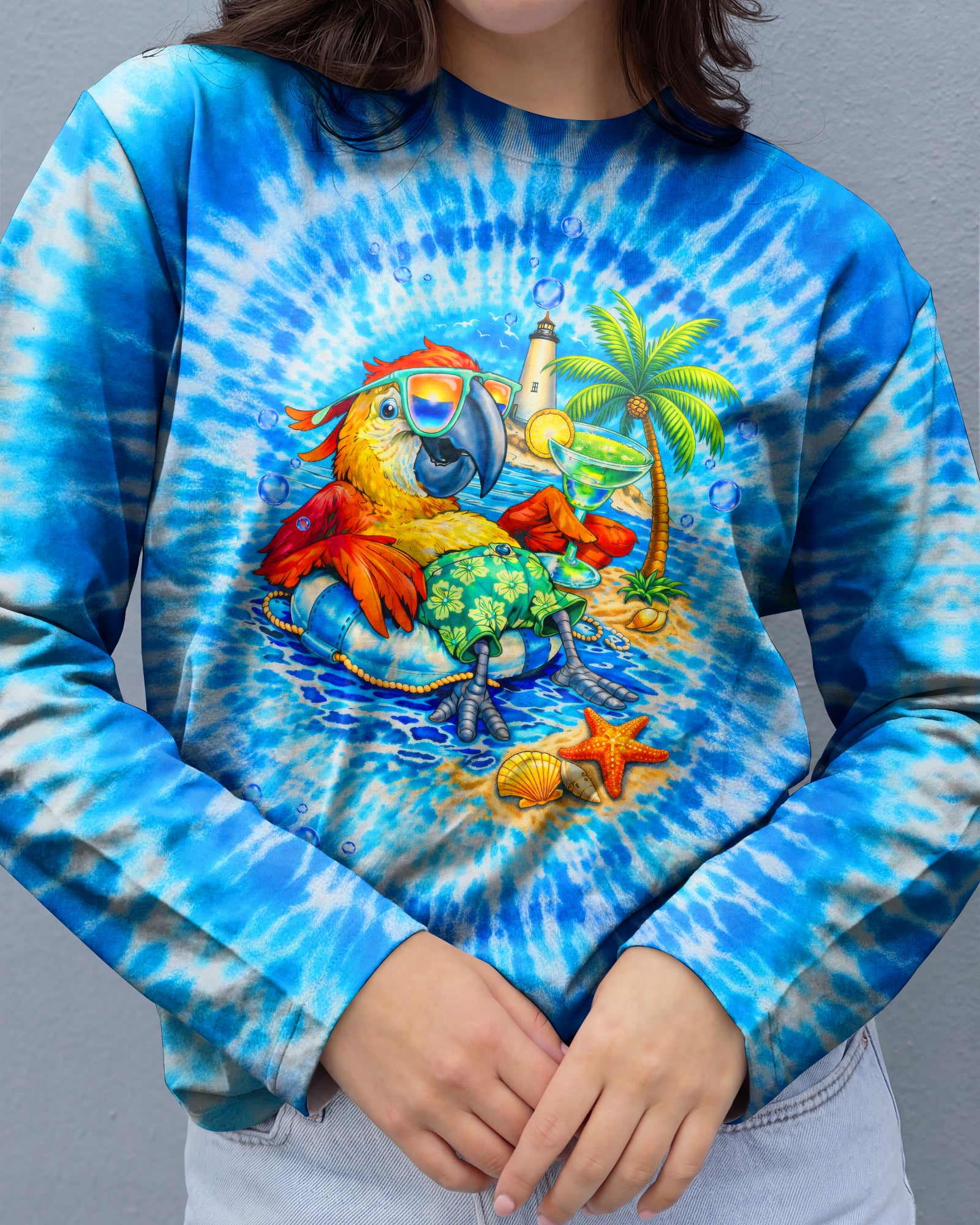 Escape to island time with this vibrant all-over print shirt featuring a carefree parrot lounging on a tropical raft with cocktail in hand. Crafted from a premium cotton/polyester and spandex blend, this tee celebrates the art of slowing down and embracing paradise vibes. Each panel is individually printed, cut, and sewn using advanced dye-sublimation techniques for stunning color depth and crisp detail. Perfect for beach lovers and free spirits who live by relaxed rhythms. High-definition printing ensures this wearable artwork turns heads wherever you go.